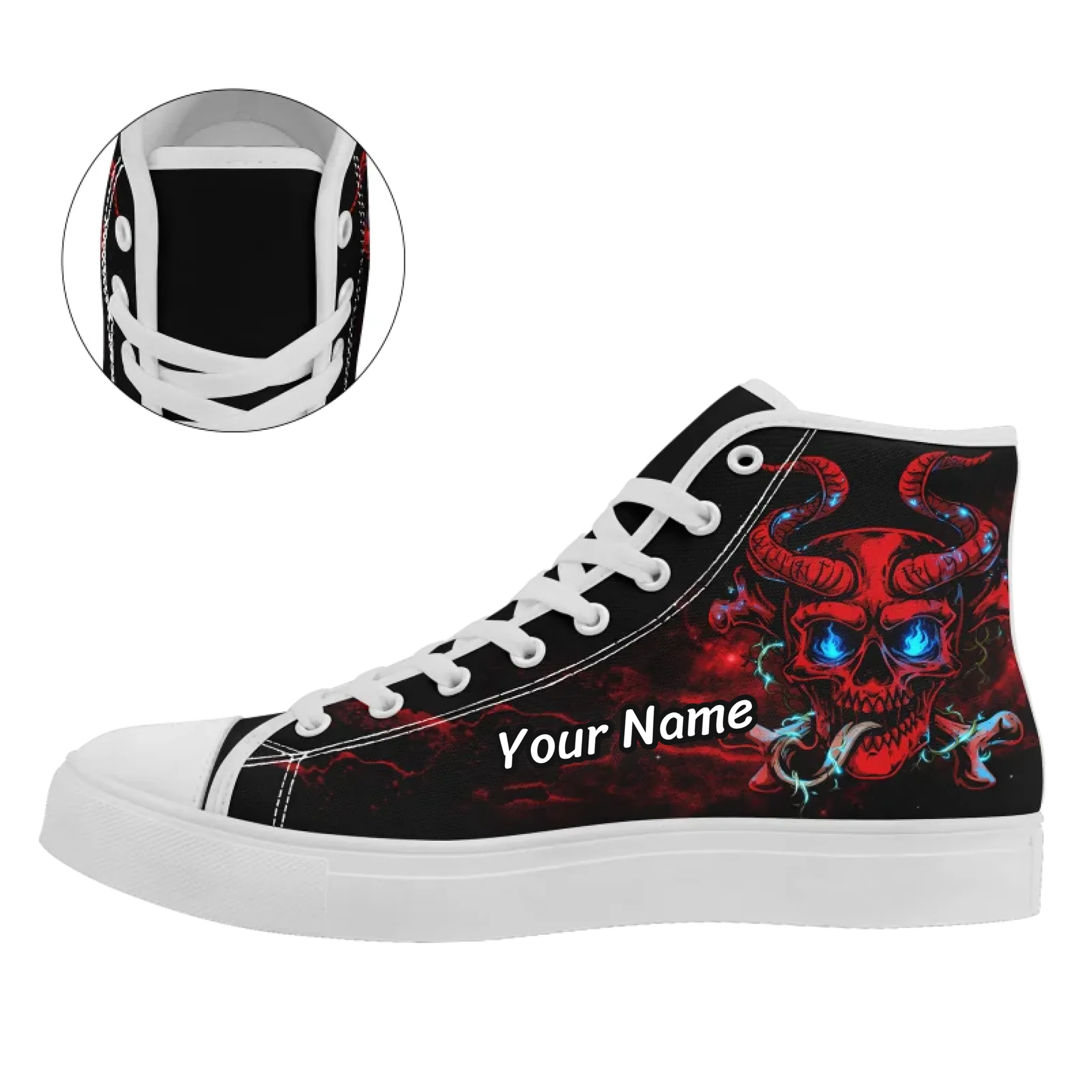 Demonic Skull High-Top Sneakers, Gothic Red Horned Devil Shoes FN024-2500684