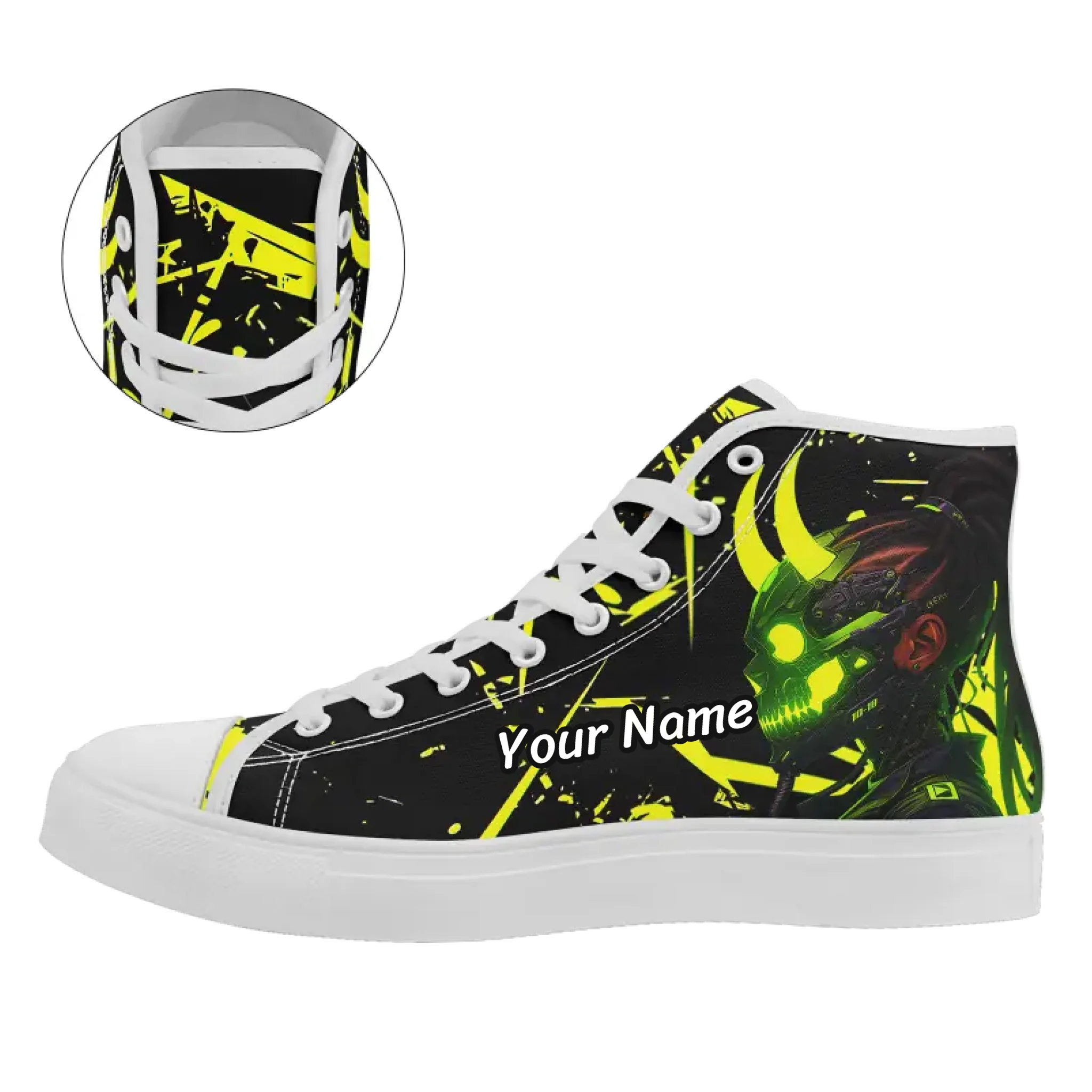 Toponepod Gothic High Top Skull Sneakers | Custom Name, Logo Graffiti Shoes | Alternative Fashion Canvas Shoes For Halloween Cosplay