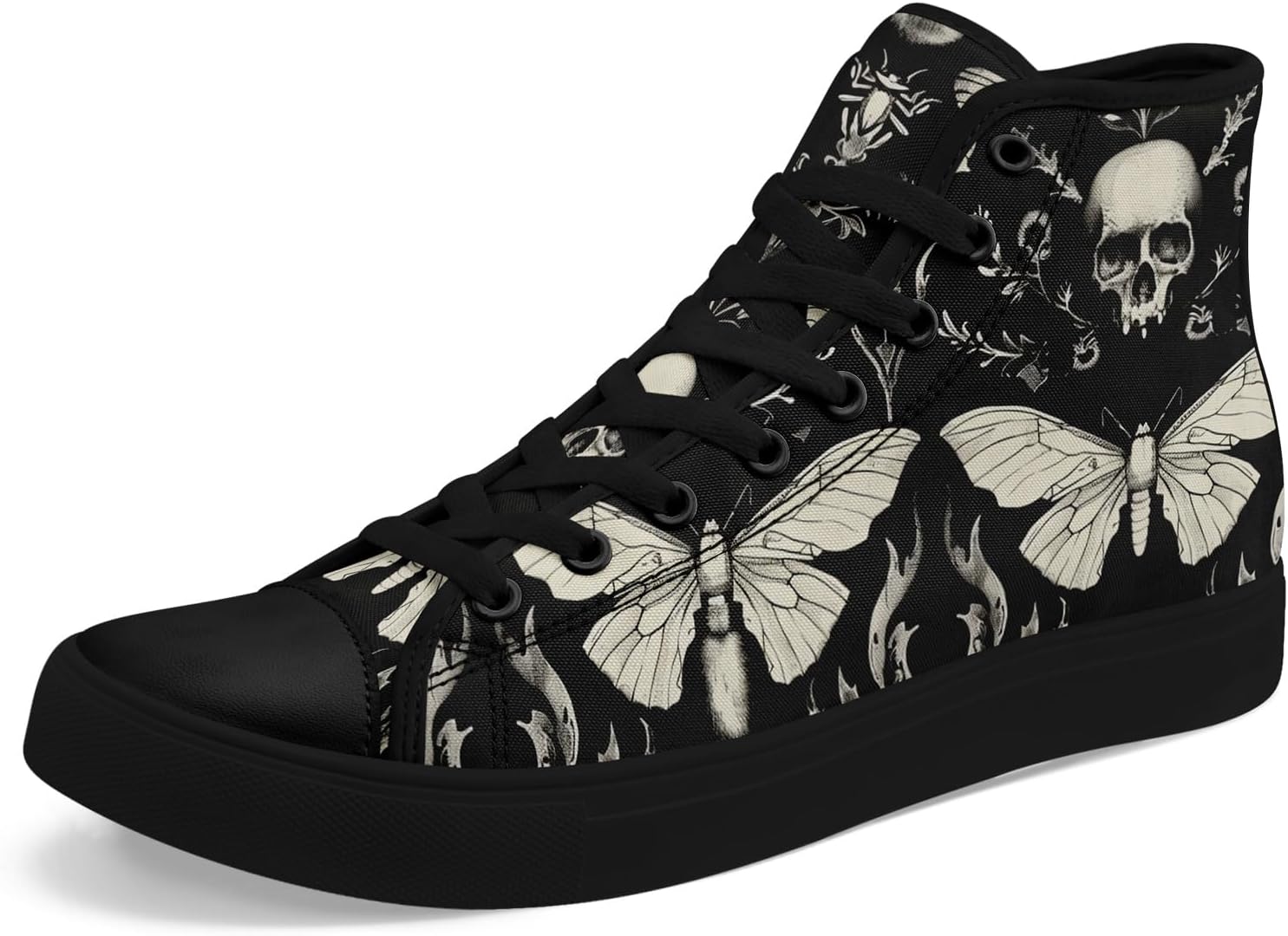 Skull High Top Canvas Sneakers for Men Women, Gothic Floral Print Streetwear Casual Fashion Skate Shoes