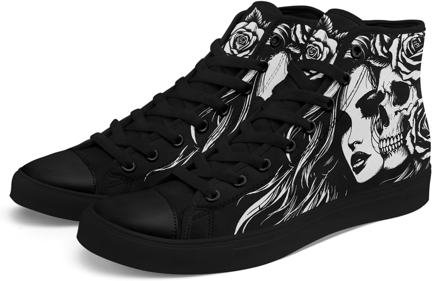 Mens Womens Gothic Skull Rose High Top Canvas Sneakers Punk Rock Floral Cool Casual Shoes Edgy Streetwear Aesthetic
