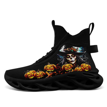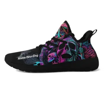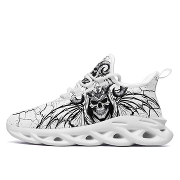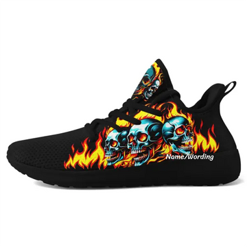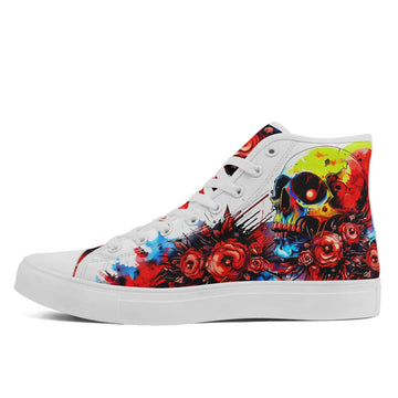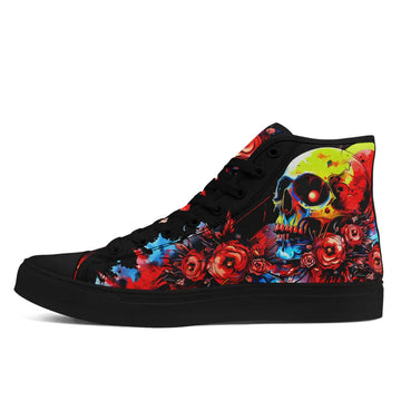 Custom High Top Flaming Demon Skull Sneakers | Fire Skull Art & Gothic Horror Shoes | FN024-24027047