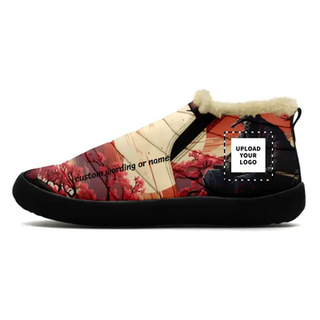 Personalized Gothic Style Warm Sneakers, Custom Skull Fashion Fur Lining Winter Shoes FN072-25023131