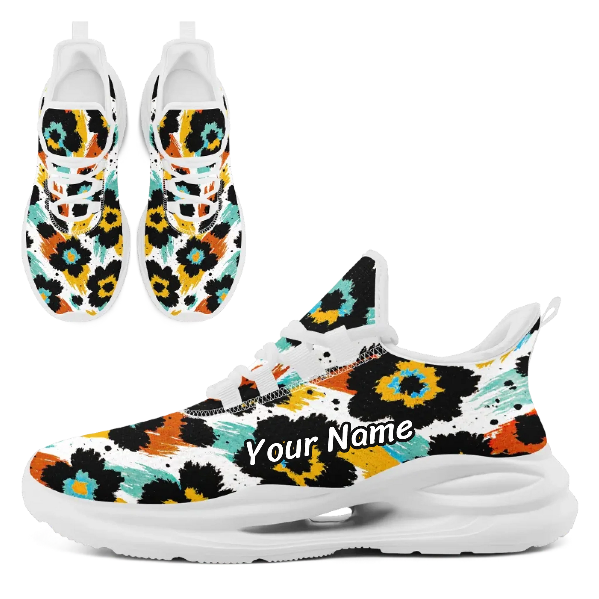 Abstract Leopard Print Athletic Sneakers, Colorful Artistic Brushstroke Fashion Trainers FN079-25027157