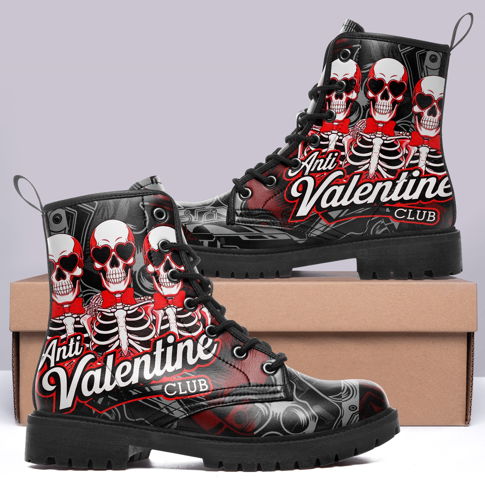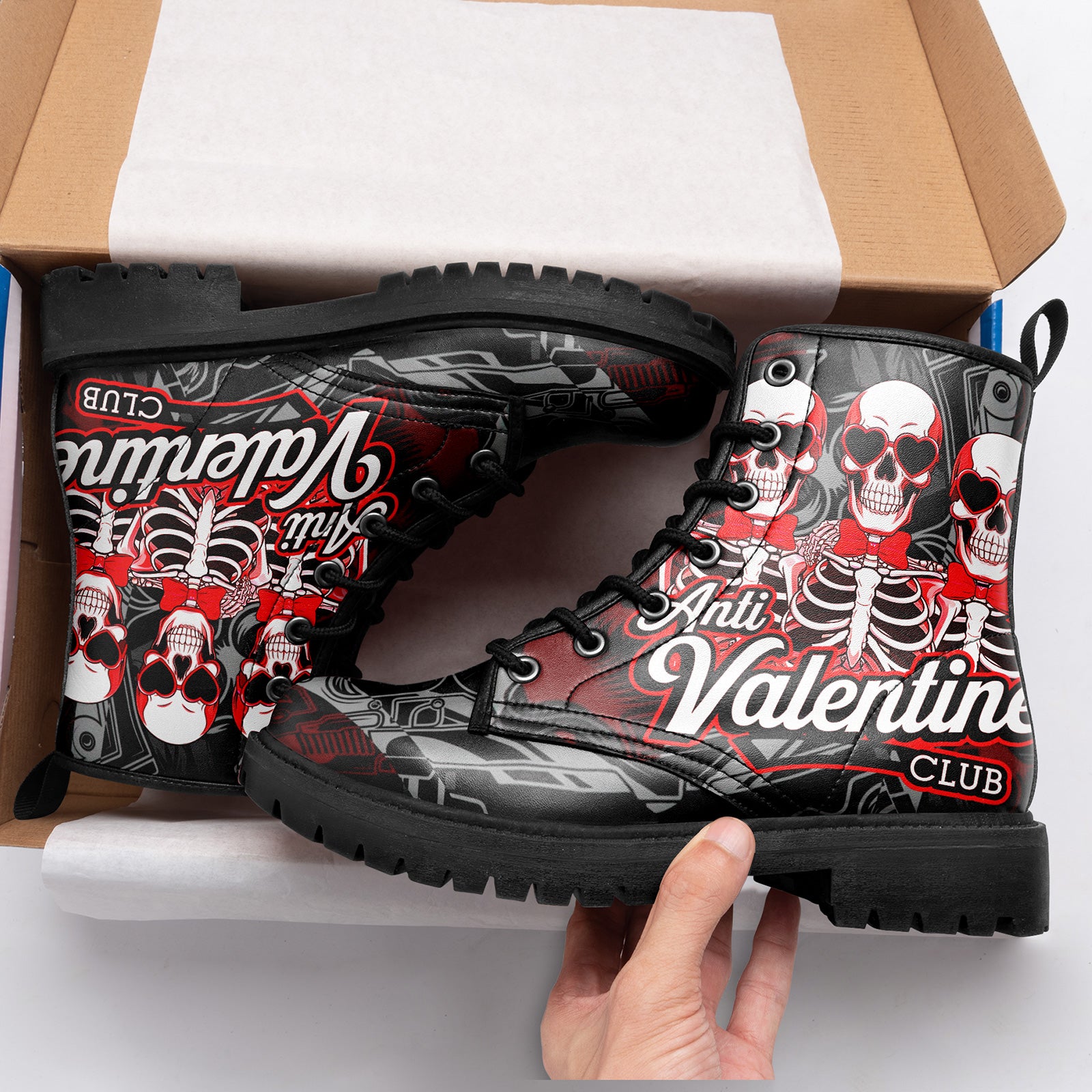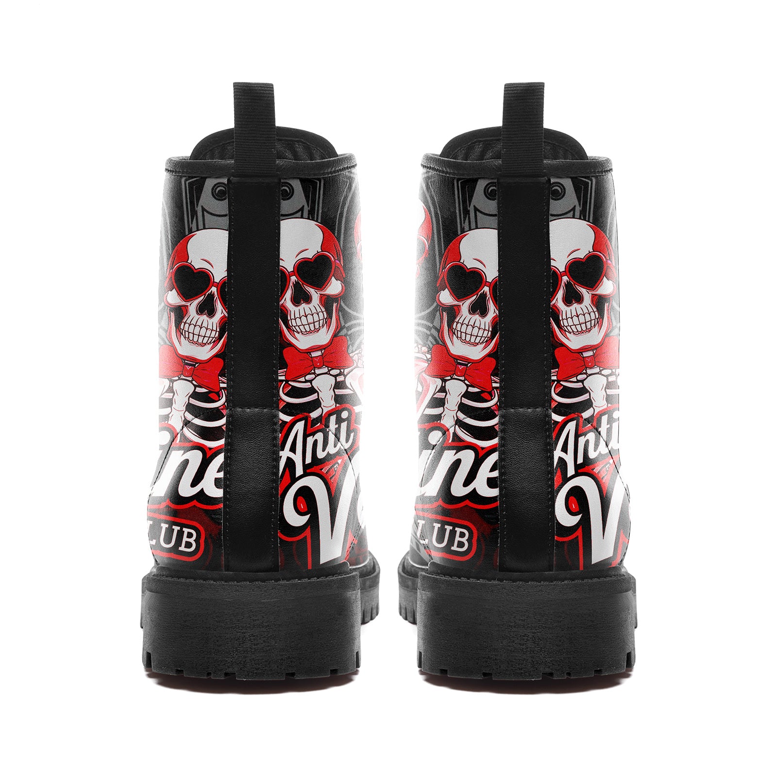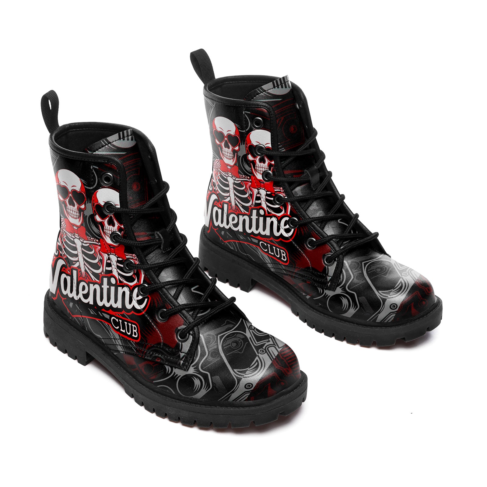 Anti Valentine Club Skeleton Combat Boots - Heart Sunglasses Skull Shoes BOOTS-24023007-3
