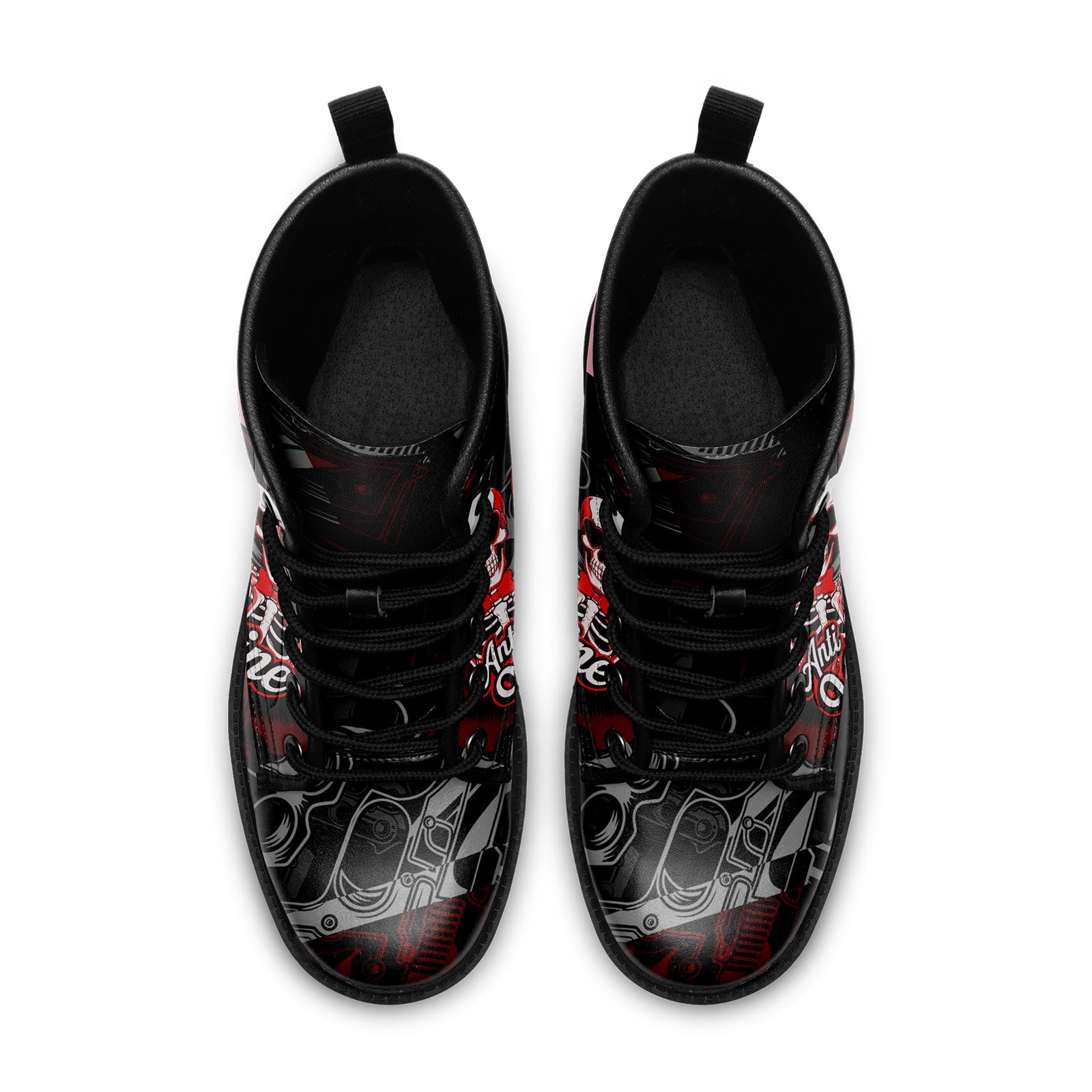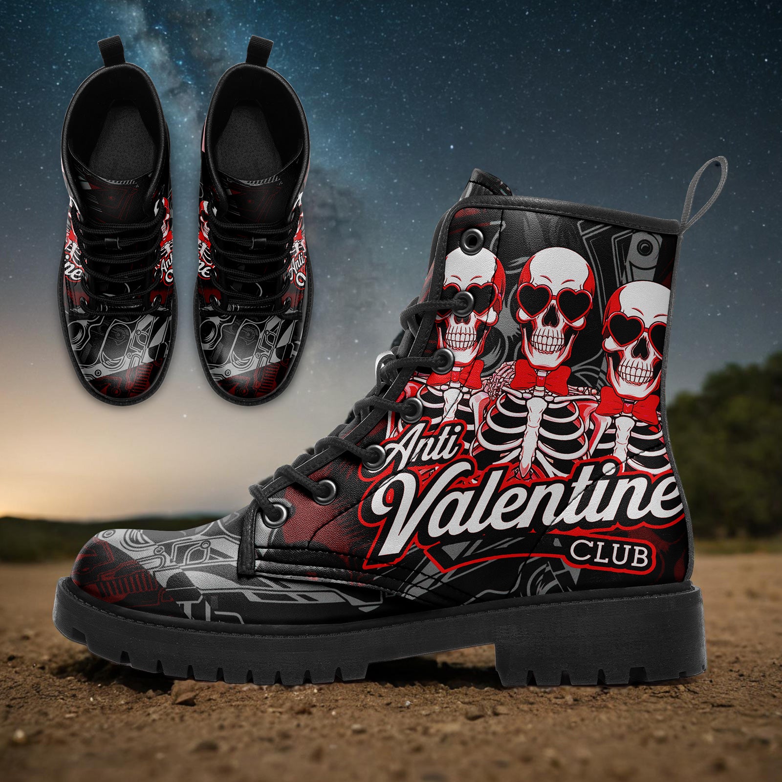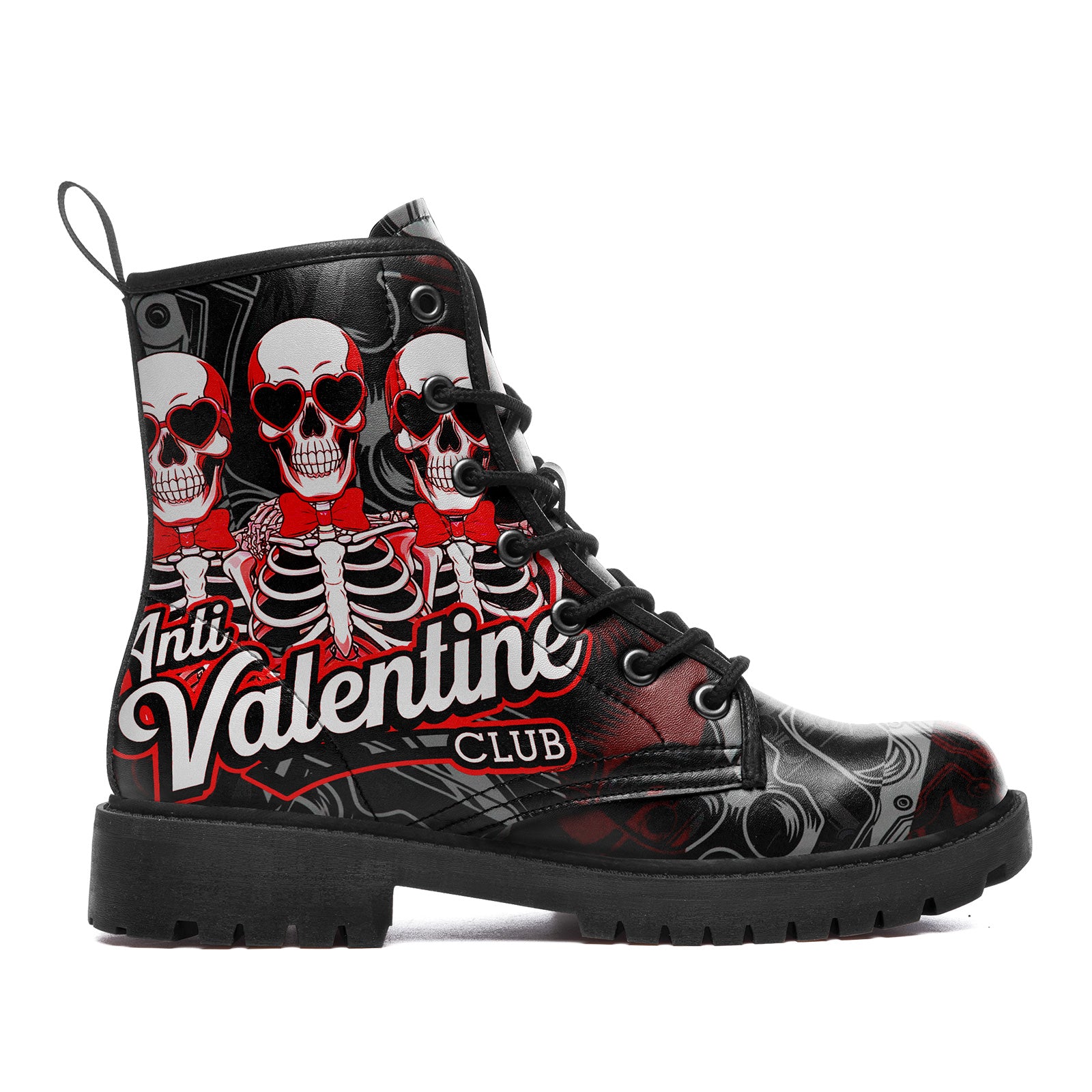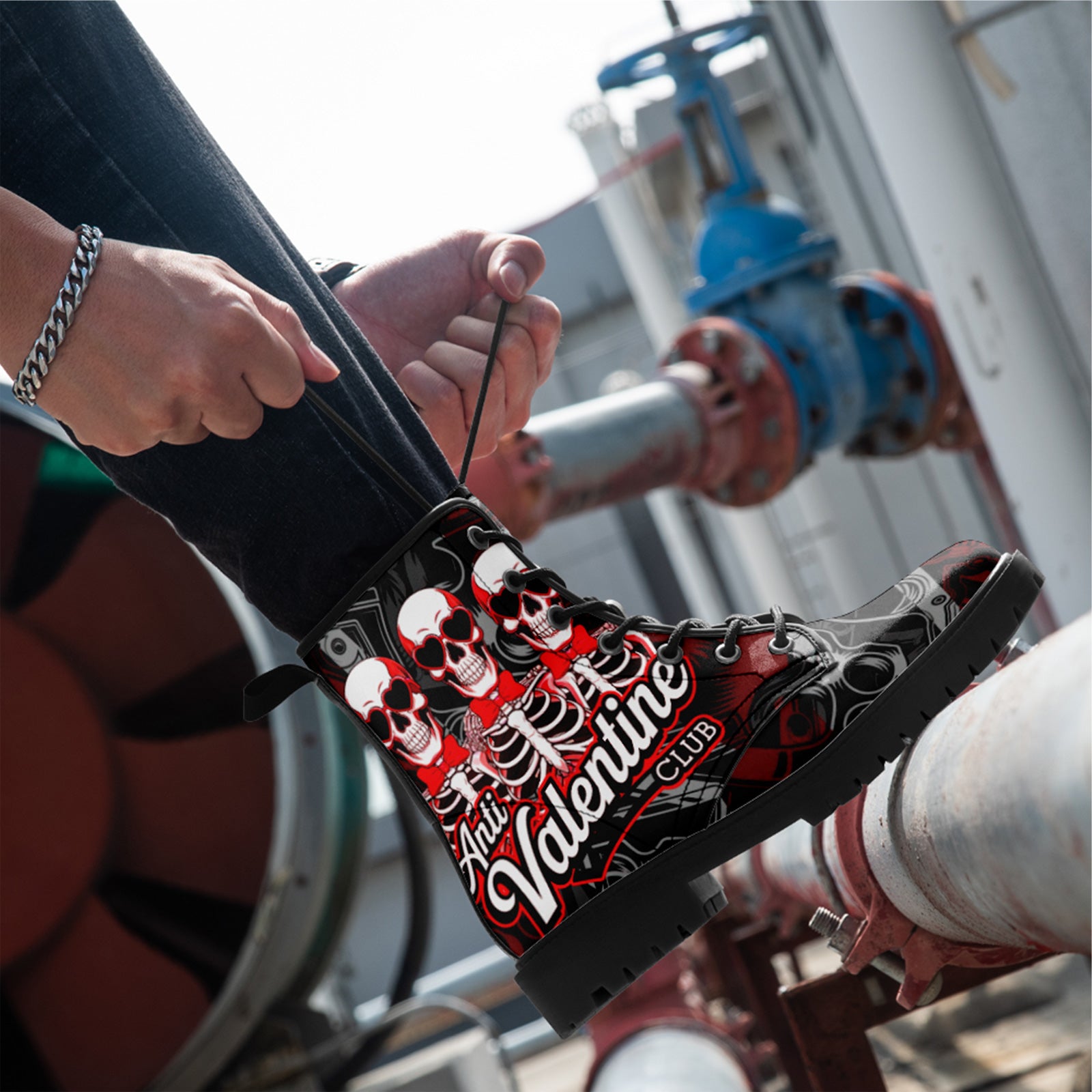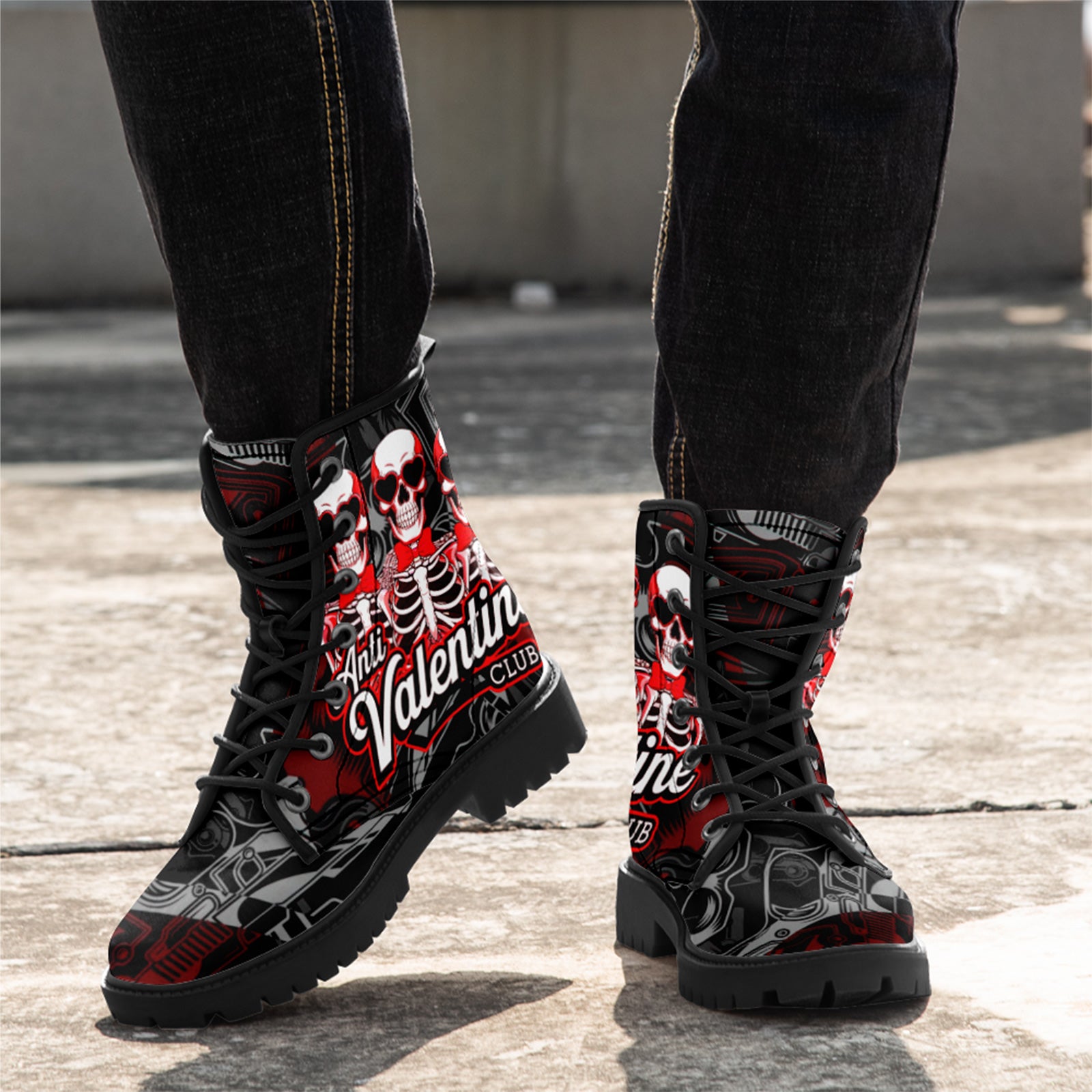 Anti Valentine Club Skeleton Combat Boots - Heart Sunglasses Skull Shoes BOOTS-24023007-3
