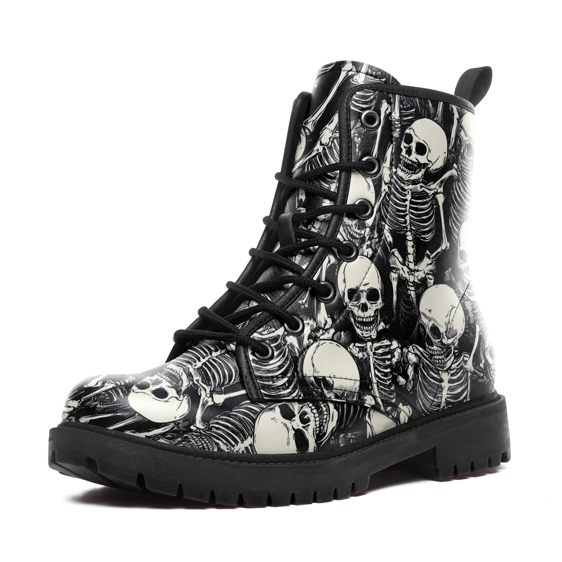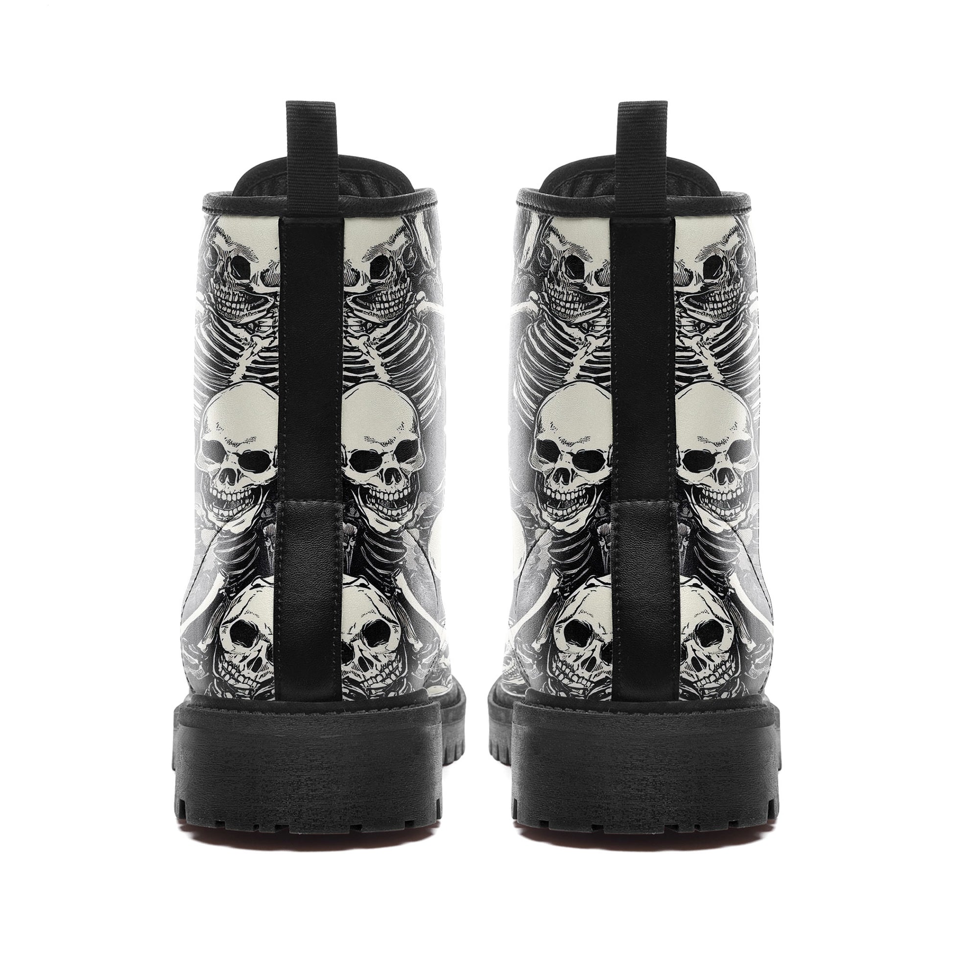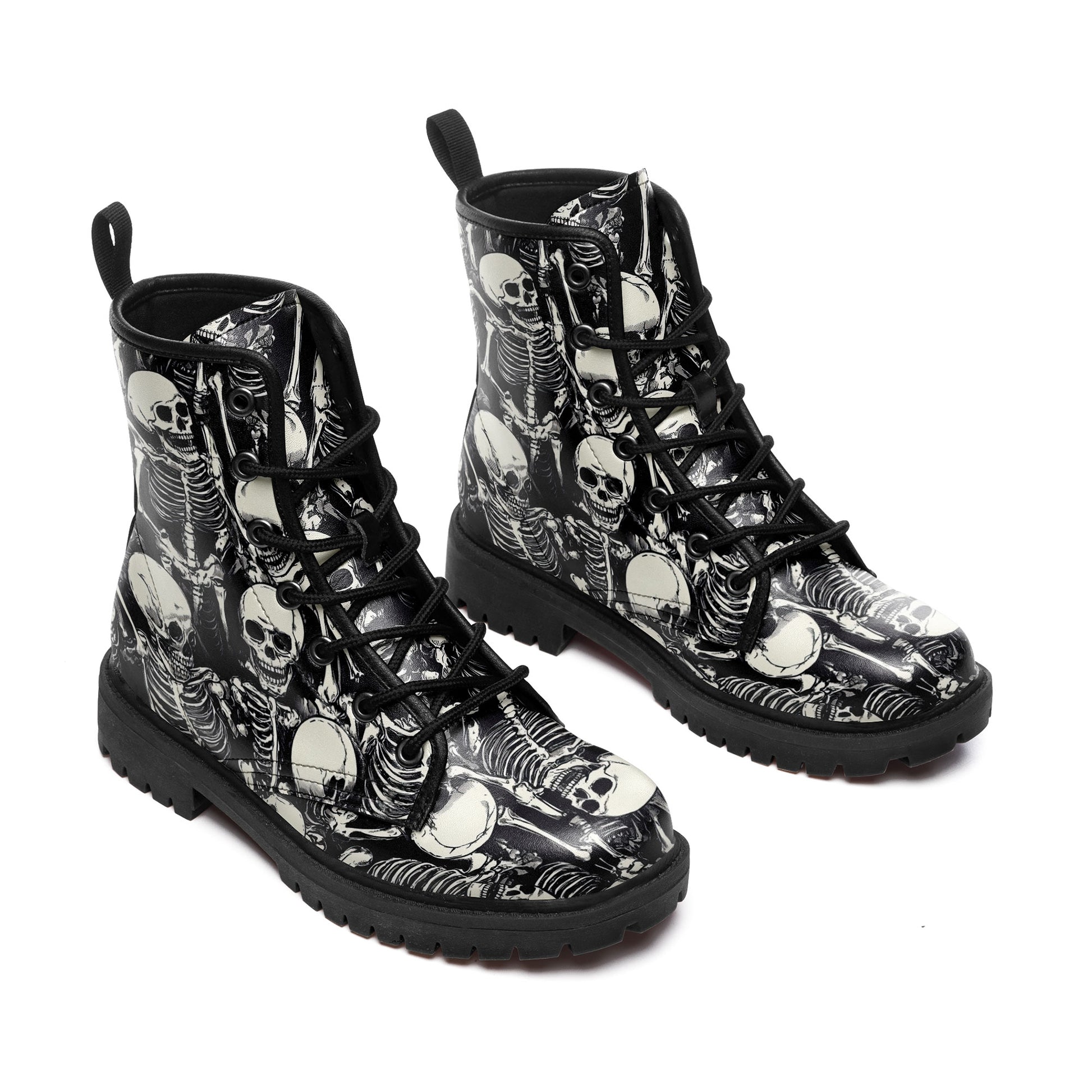 Black & White Skeleton Pile Combat Boots - All-Over Skull Pattern Footwear BOOTS-25025054-3