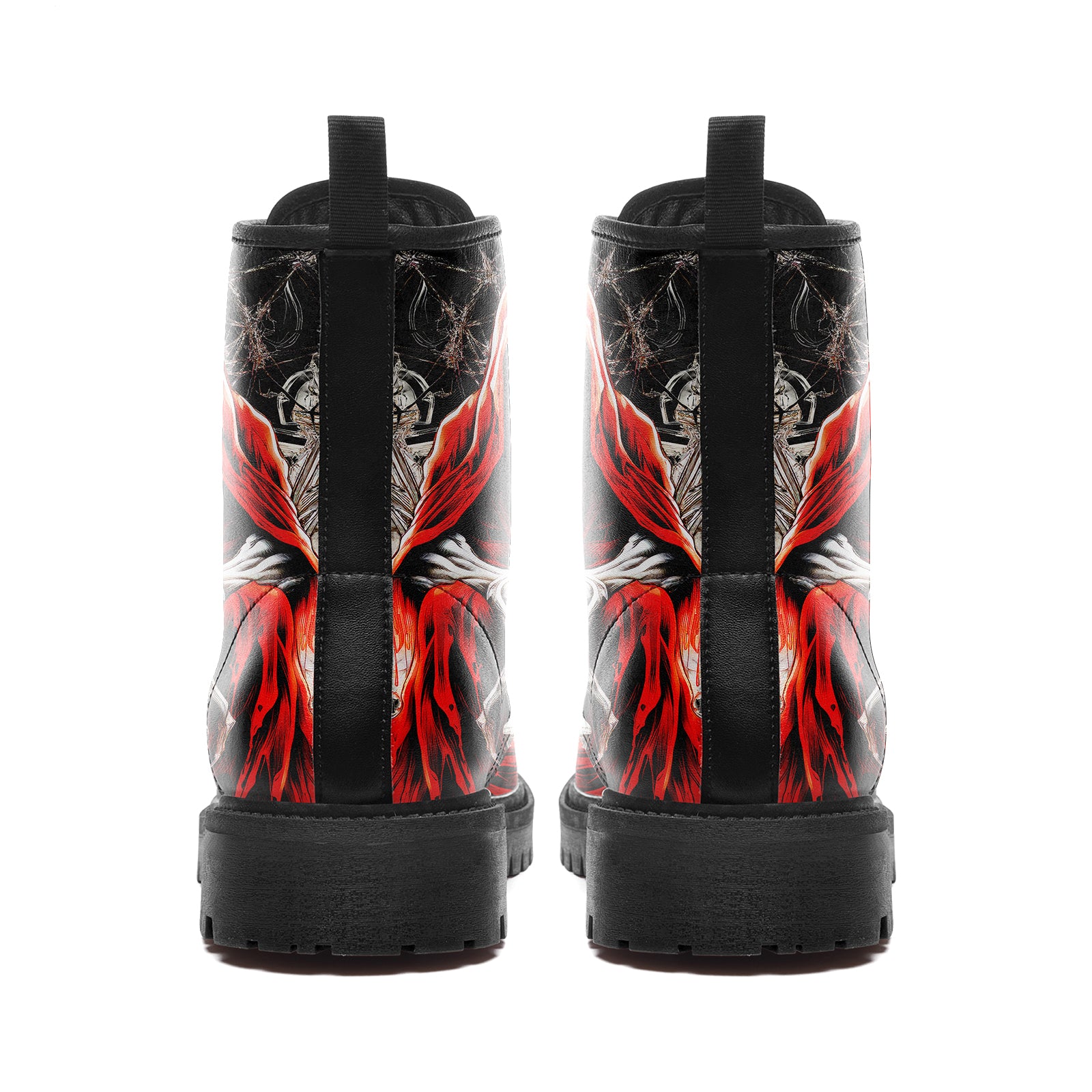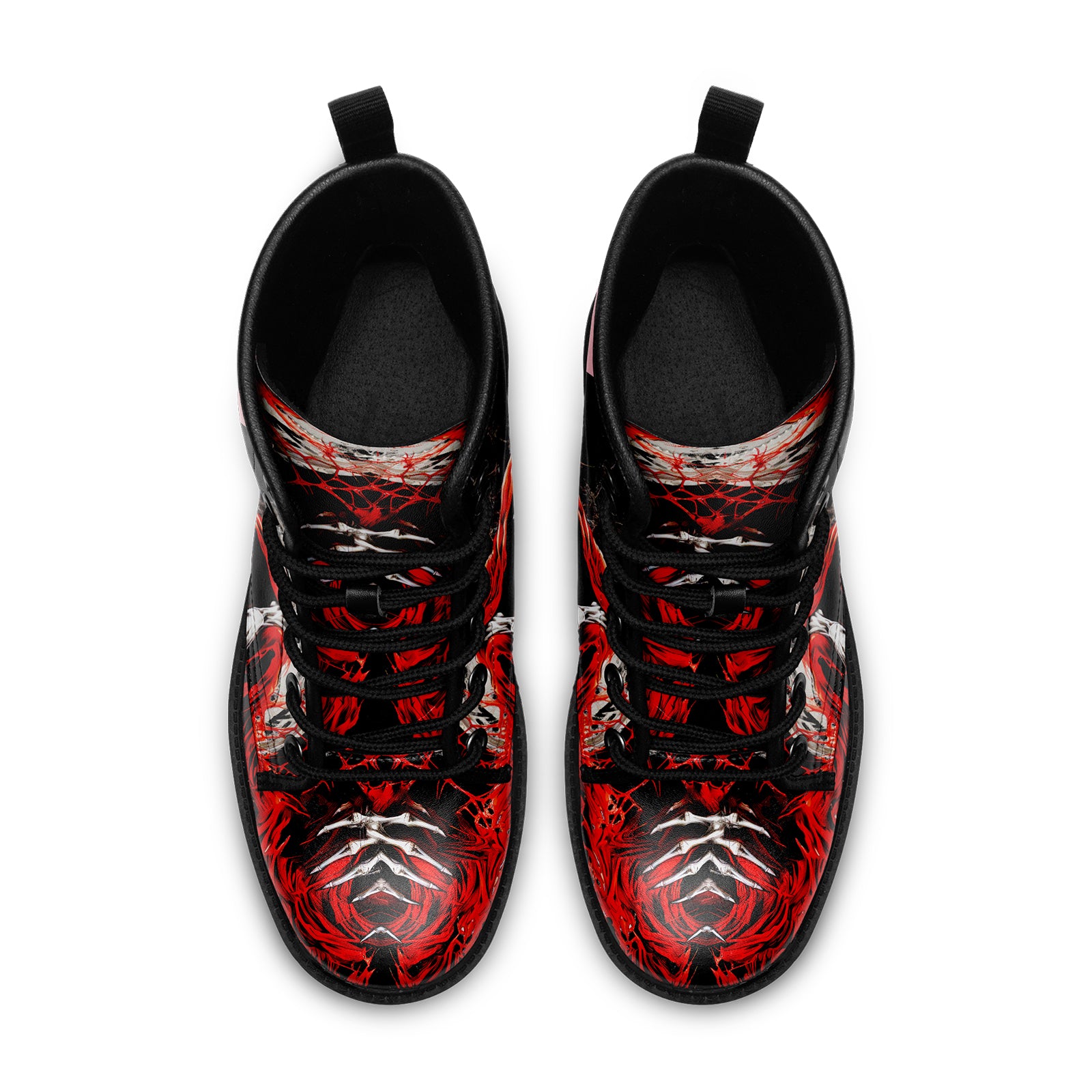 Crimson Grim Reaper Skeleton Combat Boots - Red Robe Death Metal Shoes BOOTS-24023002-3