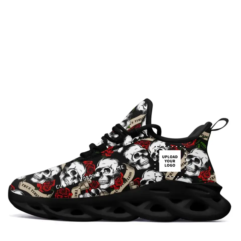 Toponepod Skull Sneakers | Custom Name logo Print Alternative Fashion Shoes For Halloween Gift | MS-2016-2302-Black