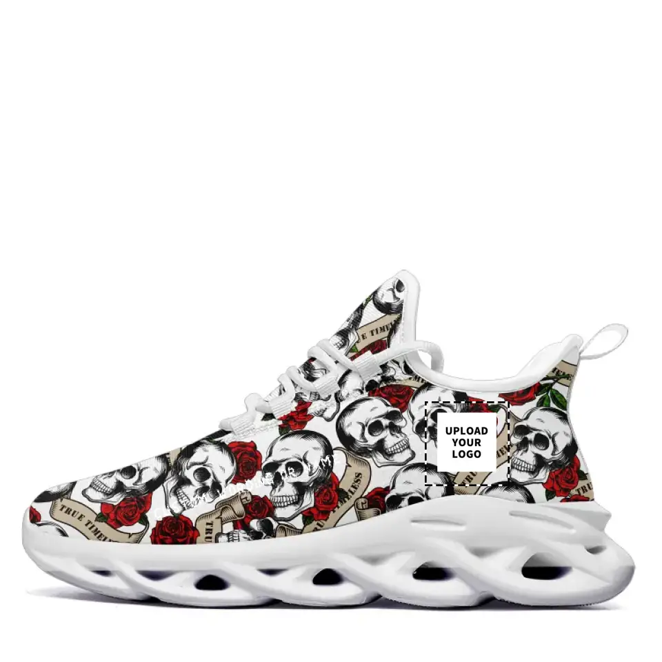 Toponepod Skull Sneakers | Custom Name logo Print Alternative Fashion Shoes For Halloween Gift | MS-2016-2302-White