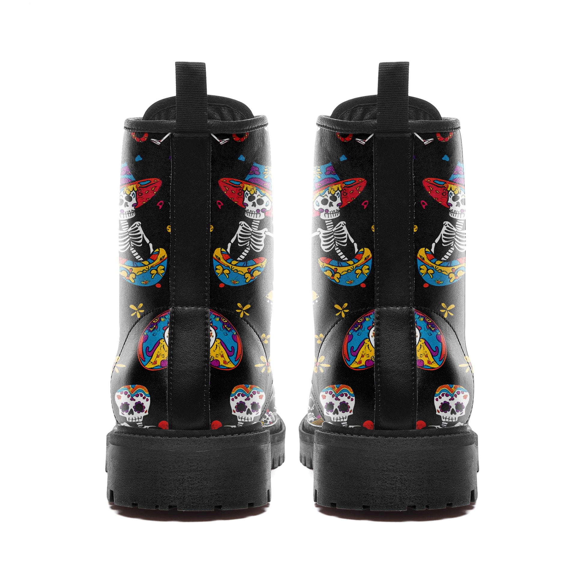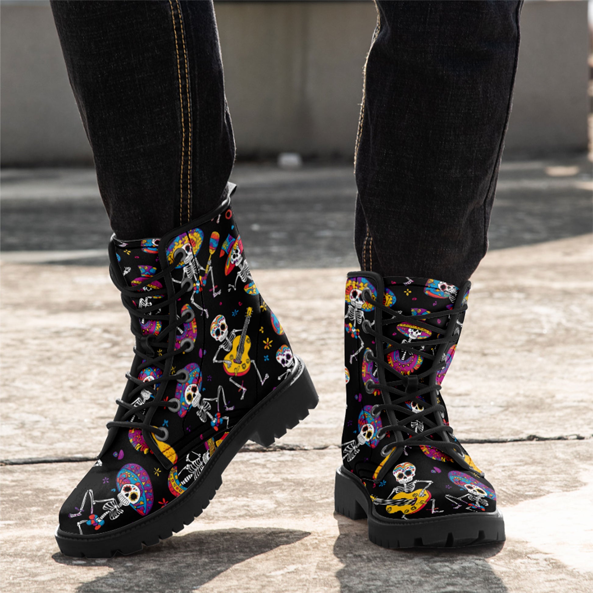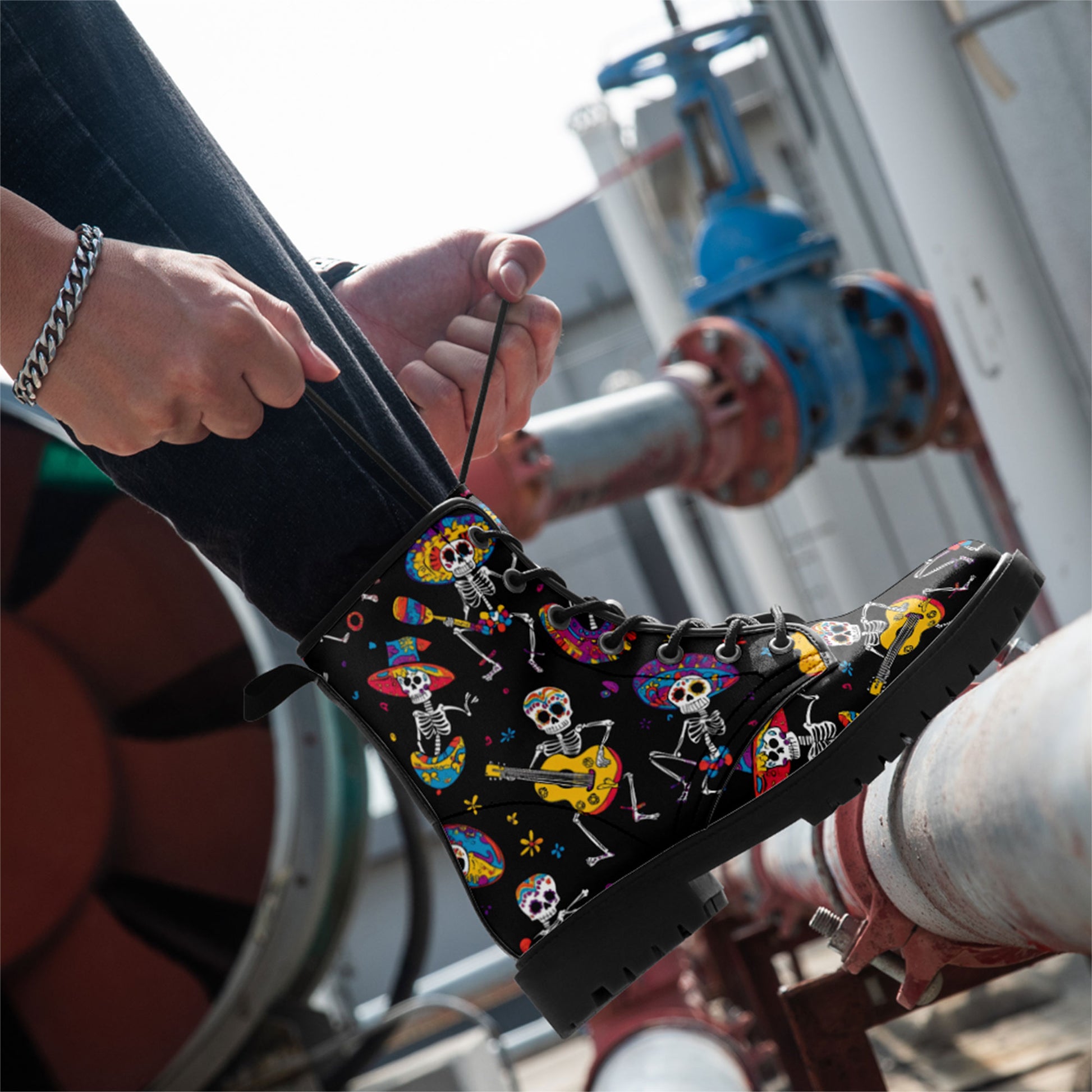 Dancing Skeleton Mariachi Band Combat Boots - Mexican Fiesta Music Shoes 058-6-25009040-4
