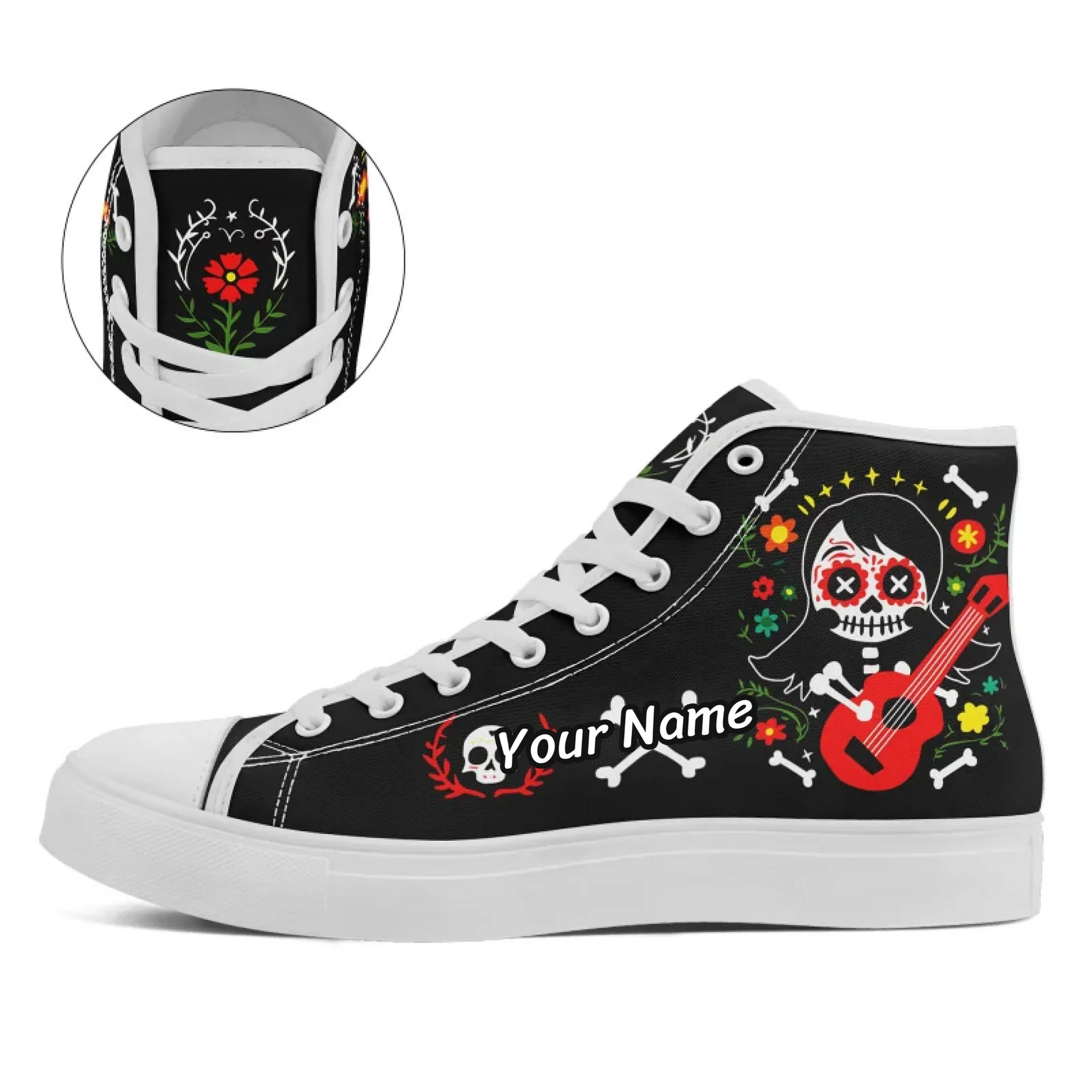 Celebrate life with these vibrant and festive Day of the Dead high-top sneakers!