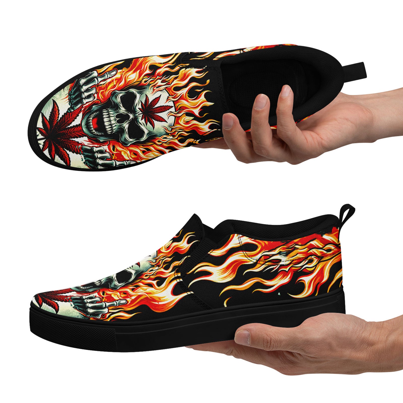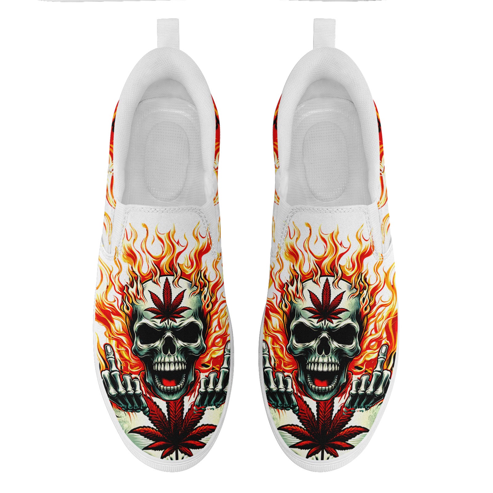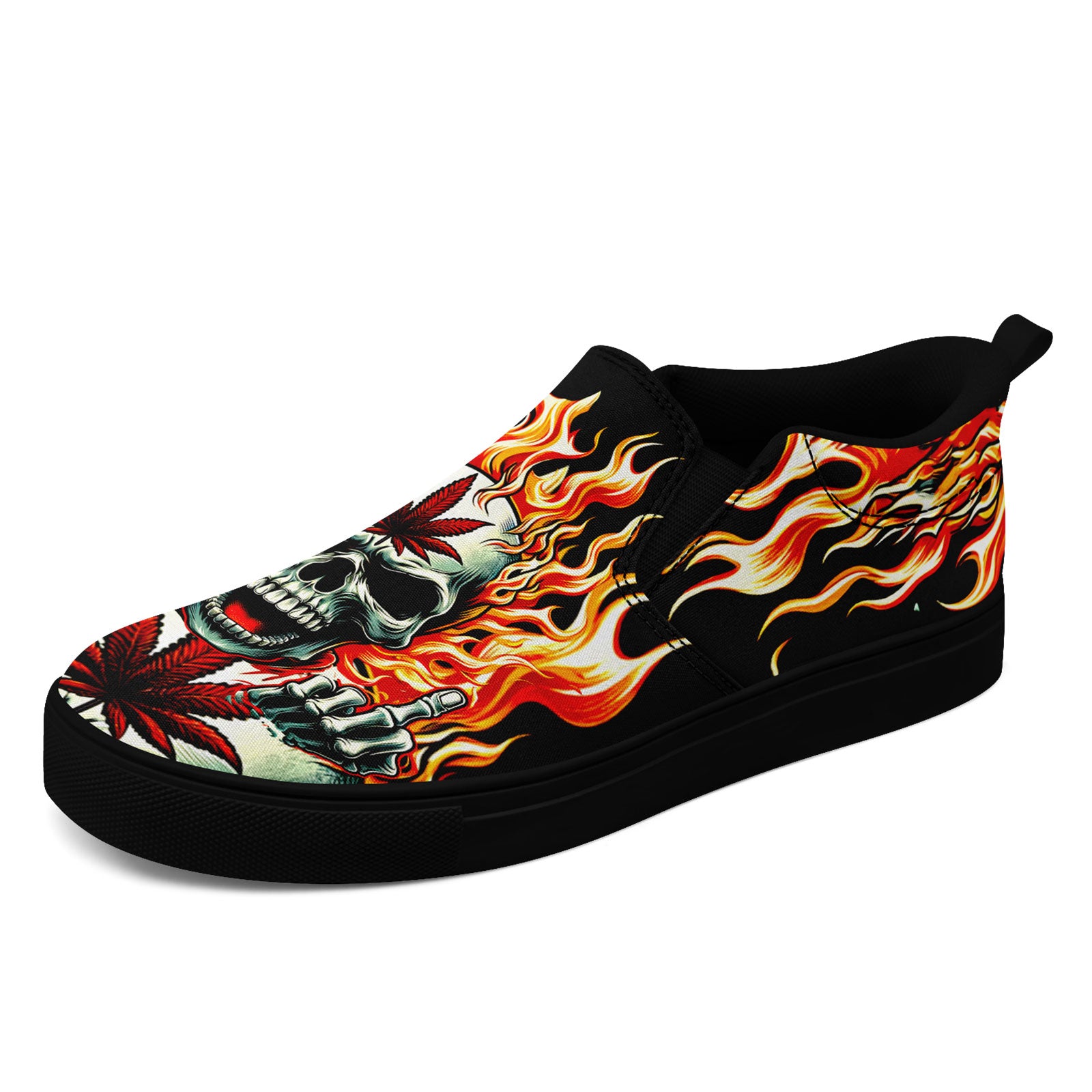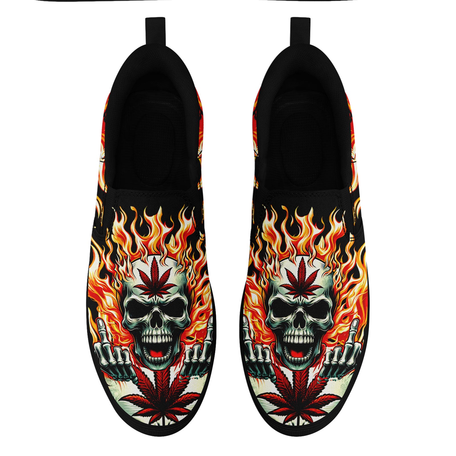 Flaming Skull Weed Leaf Slip-On Shoes | Cannabis Fire Skull Gothic Print Sneakers| FN071-25023025-6