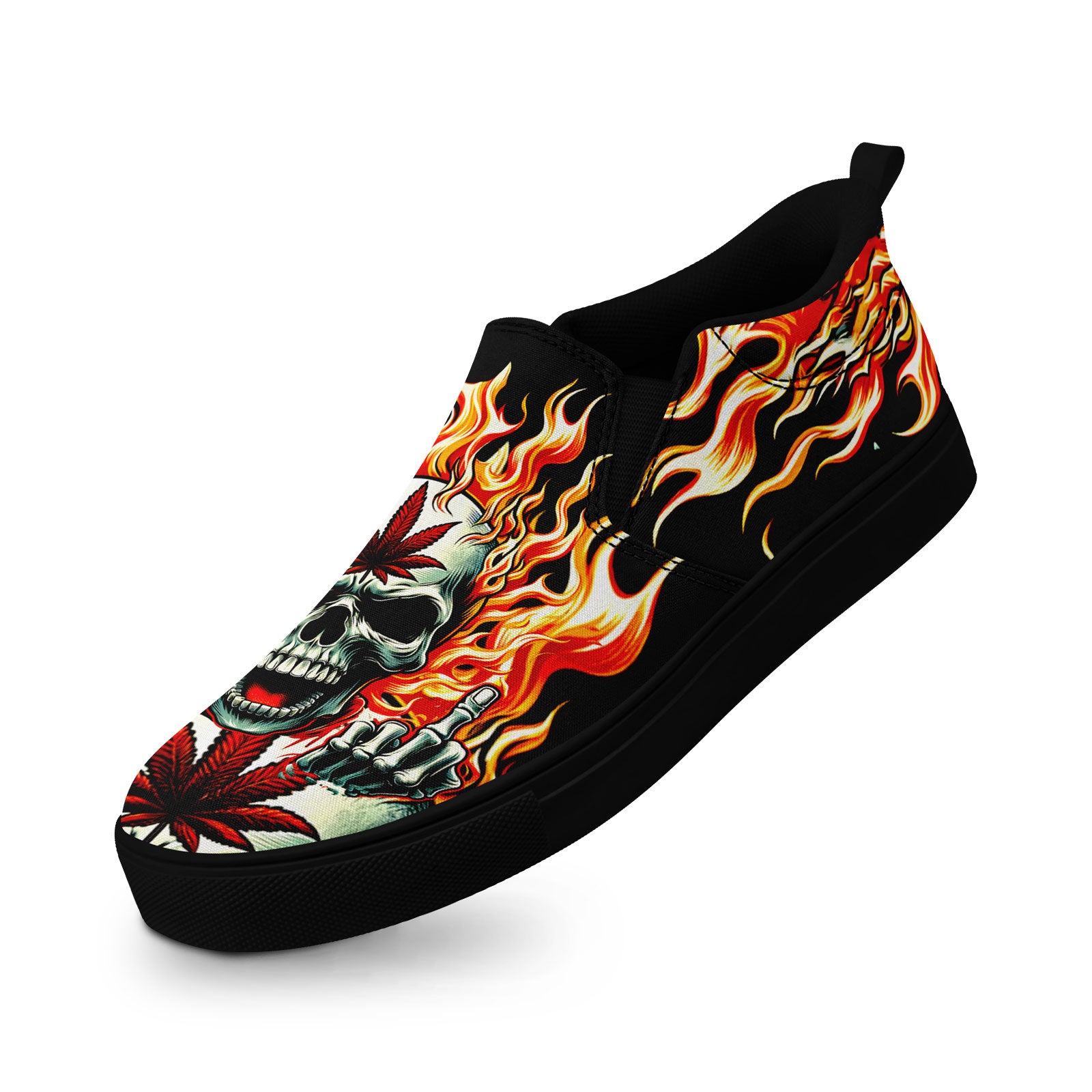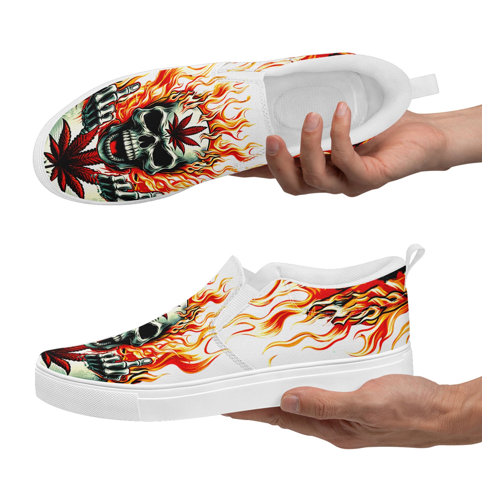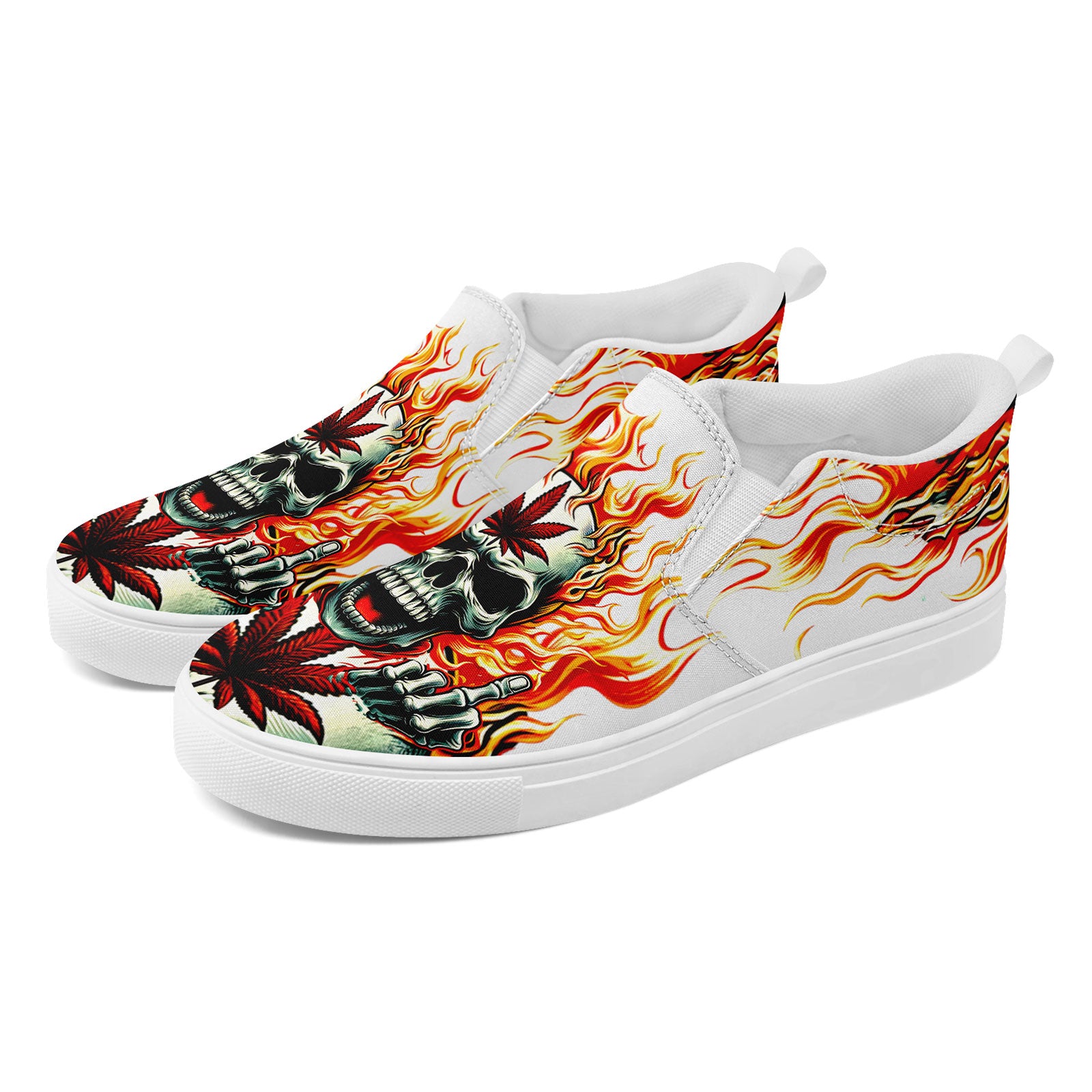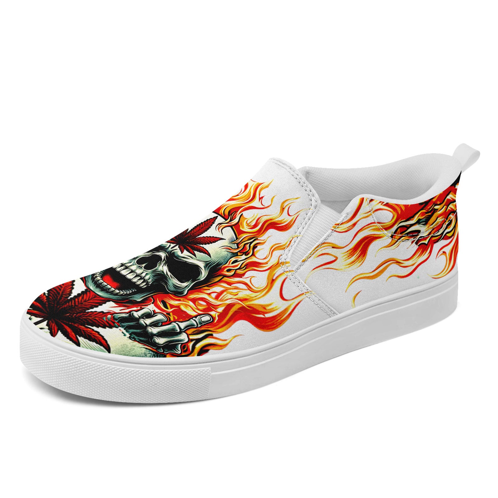 Flaming Skull Weed Leaf Slip-On Shoes | Cannabis Fire Skull Gothic Print Sneakers| FN071-25023025-6
