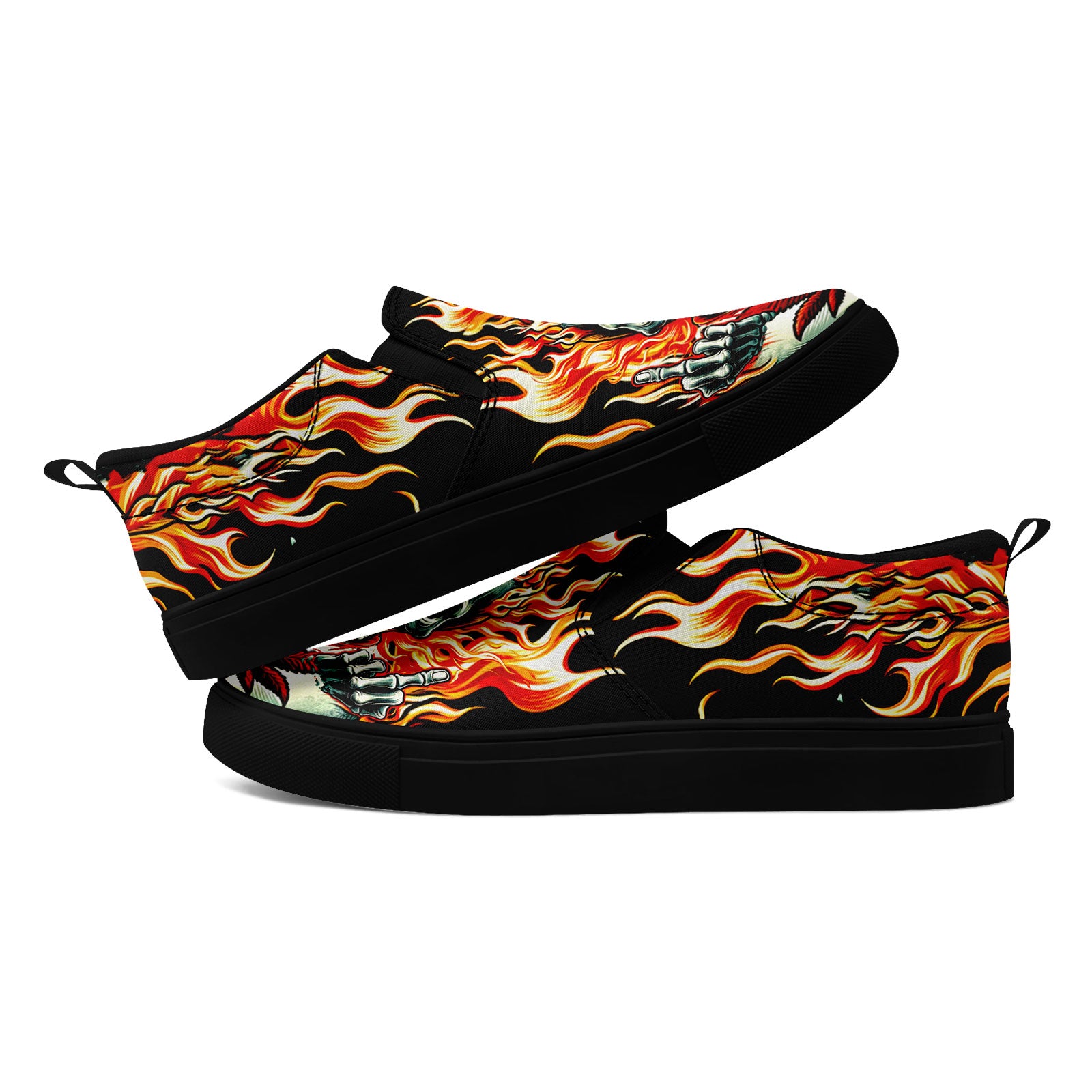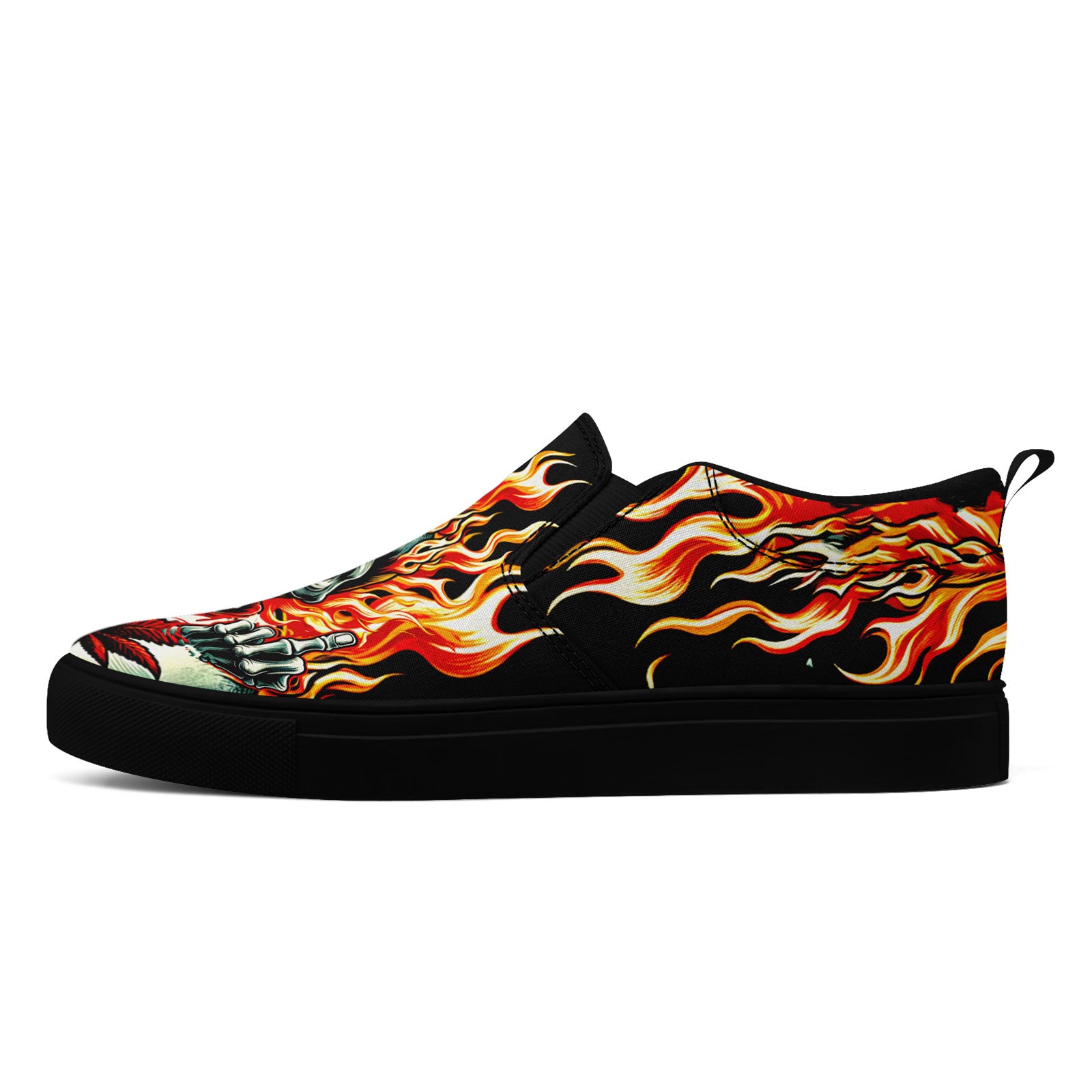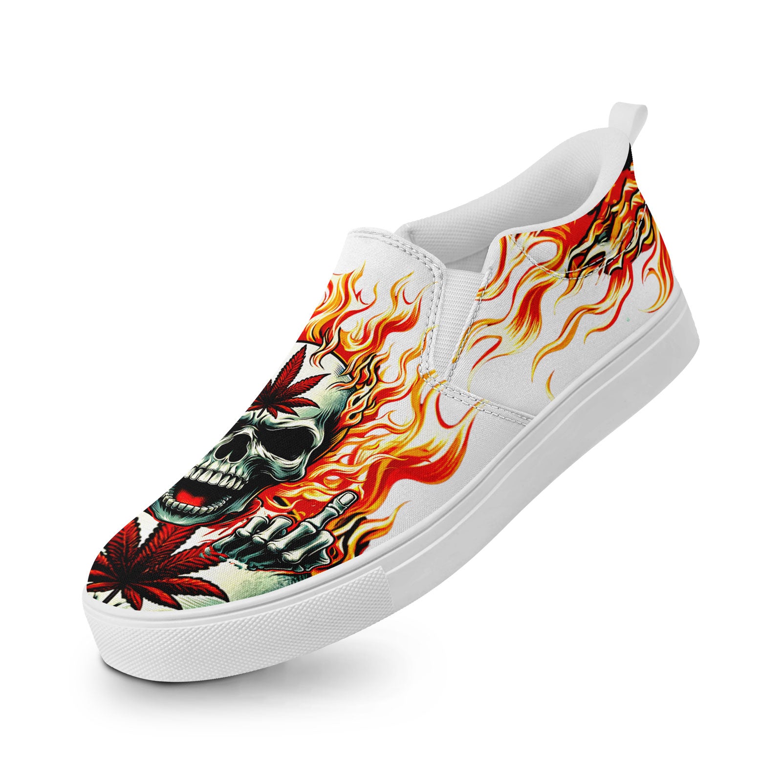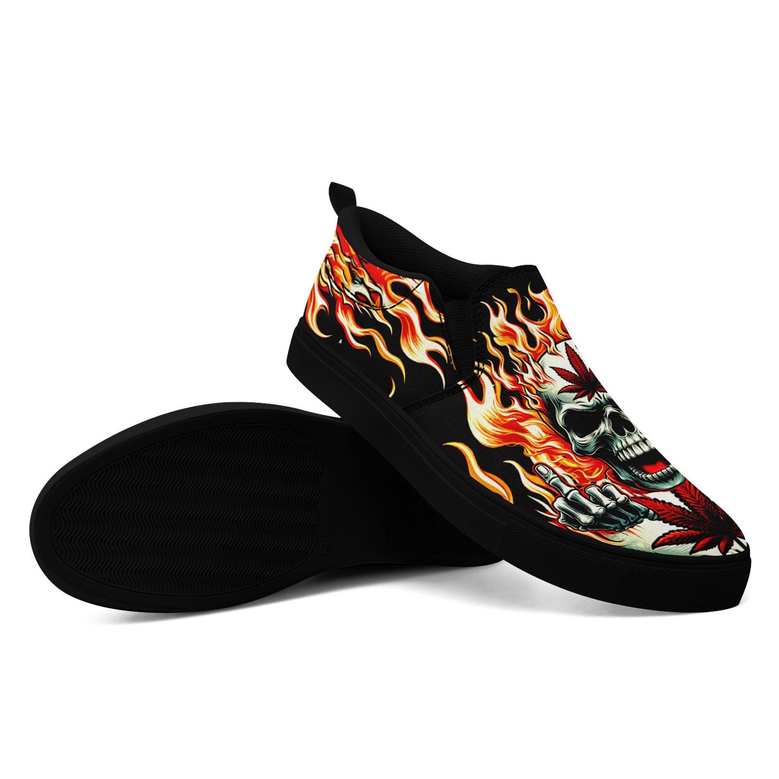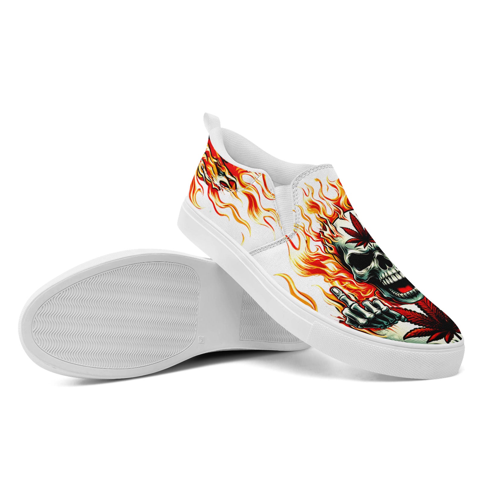 Flaming Skull Weed Leaf Slip-On Shoes | Cannabis Fire Skull Gothic Print Sneakers| FN071-25023025-6