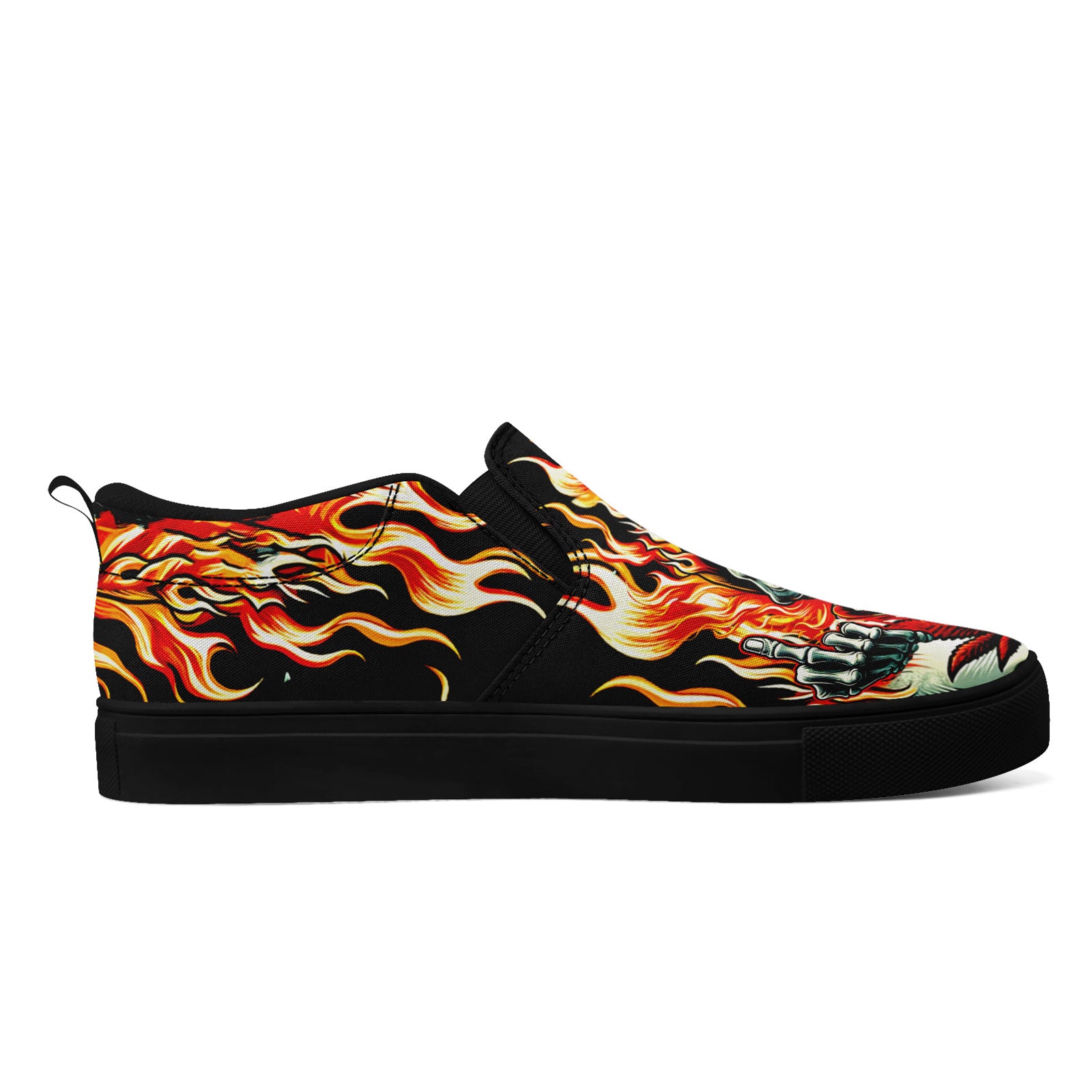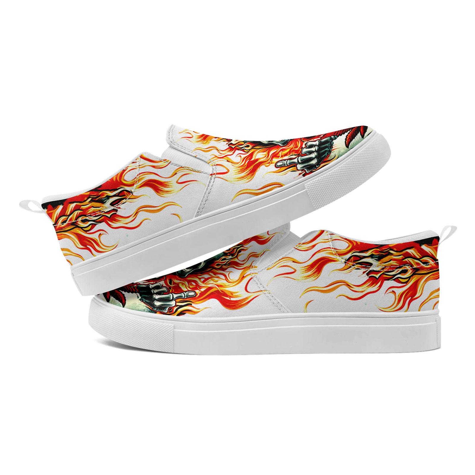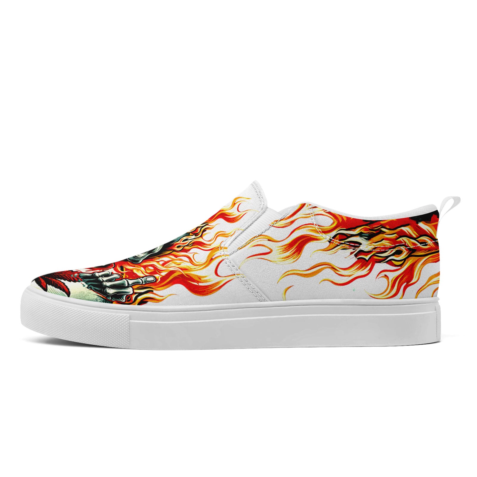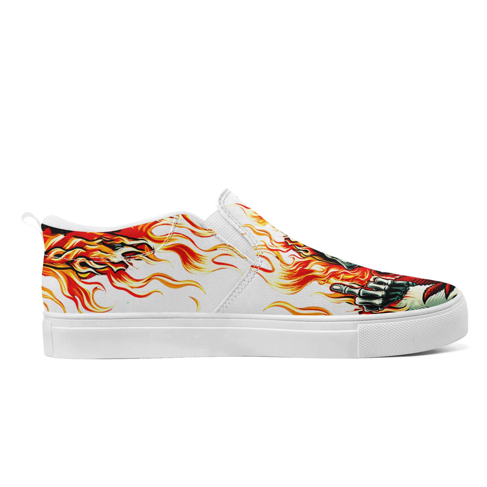 Flaming Skull Weed Leaf Slip-On Shoes | Cannabis Fire Skull Gothic Print Sneakers| FN071-25023025-6
