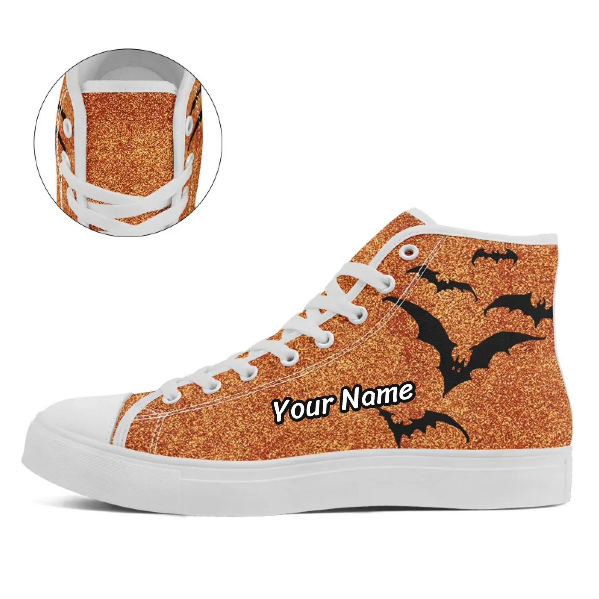 Glam Goth Halloween Bat Swarm High-Tops, Shimmering Orange Glitter Spooky Season Shoes FN024-25020190