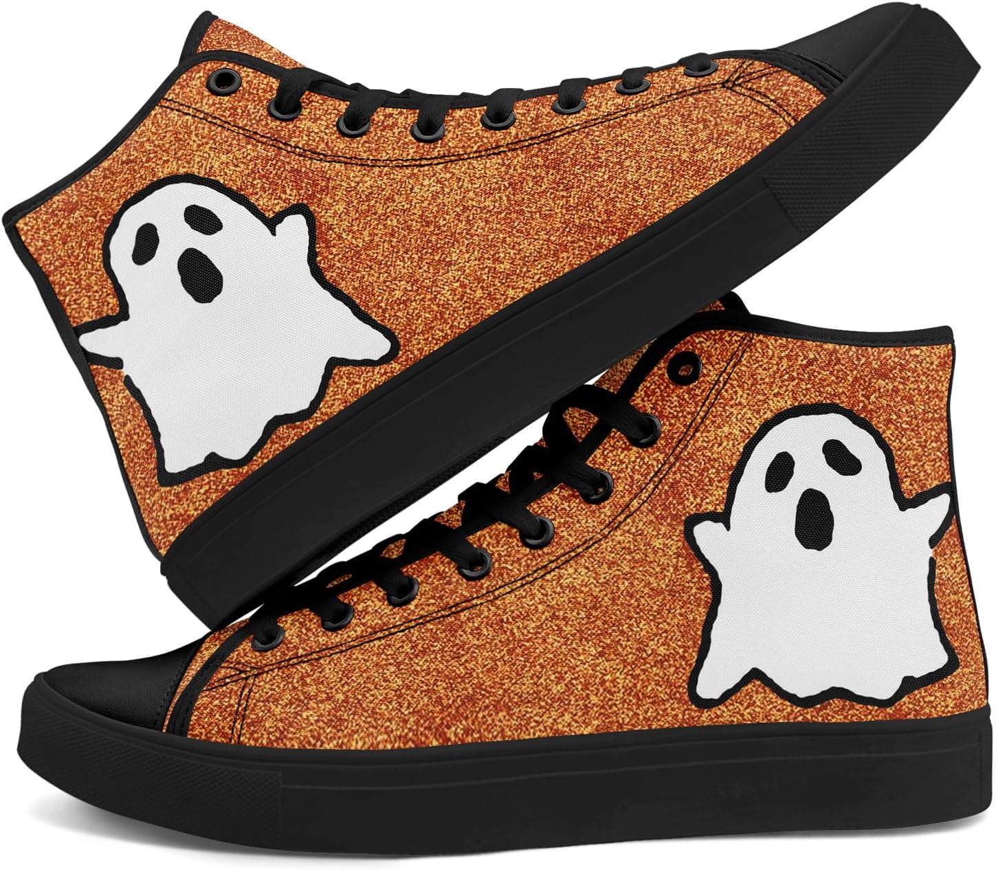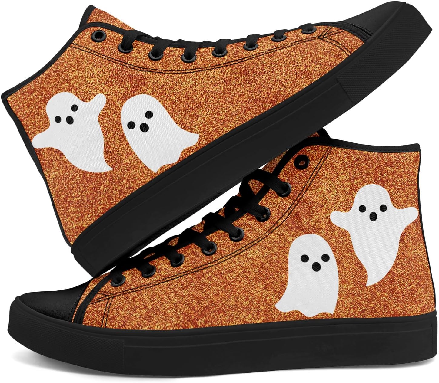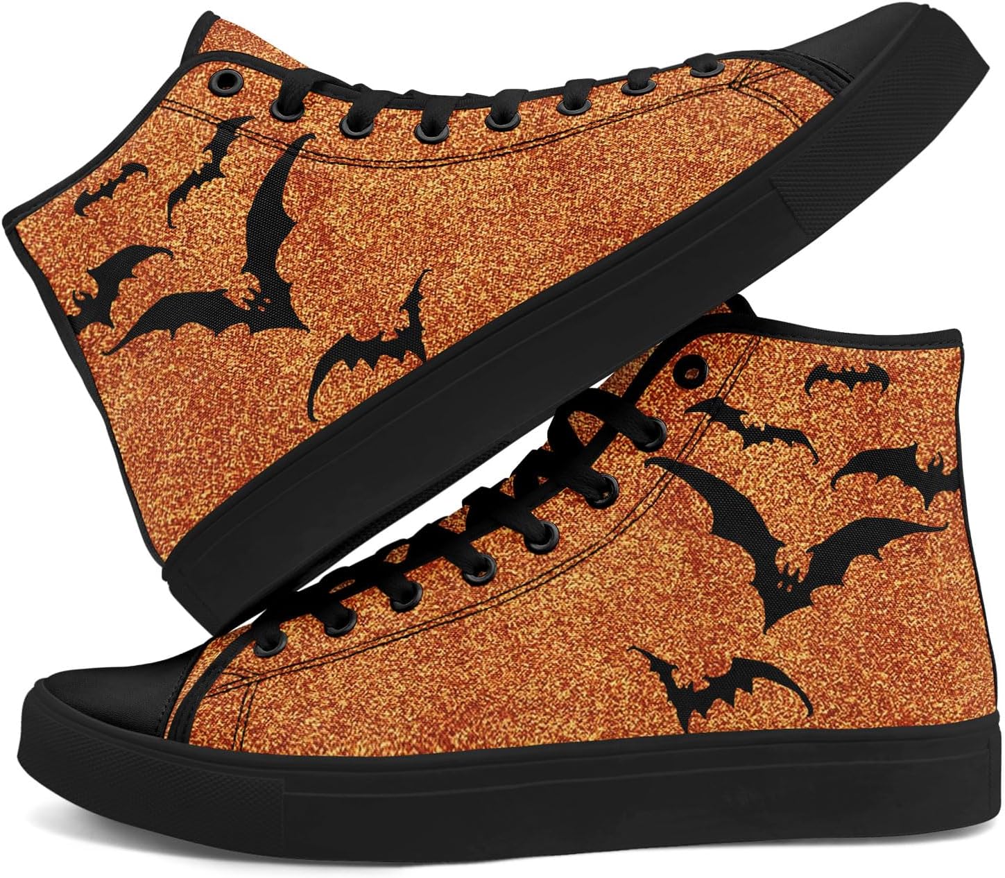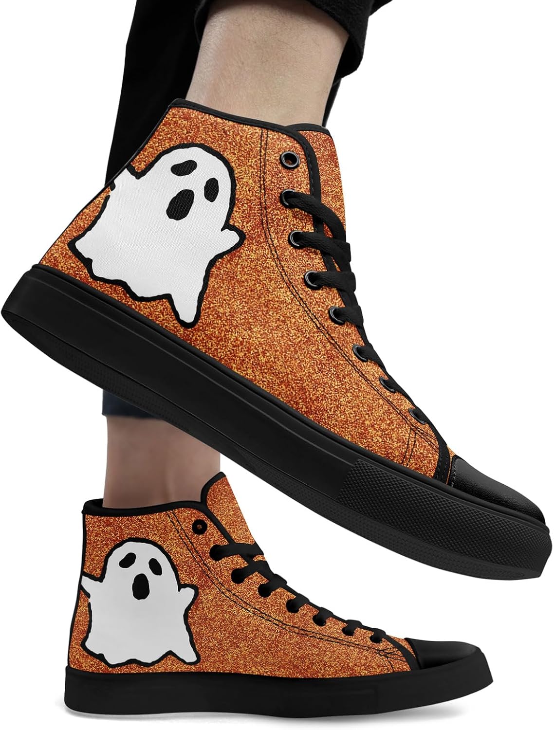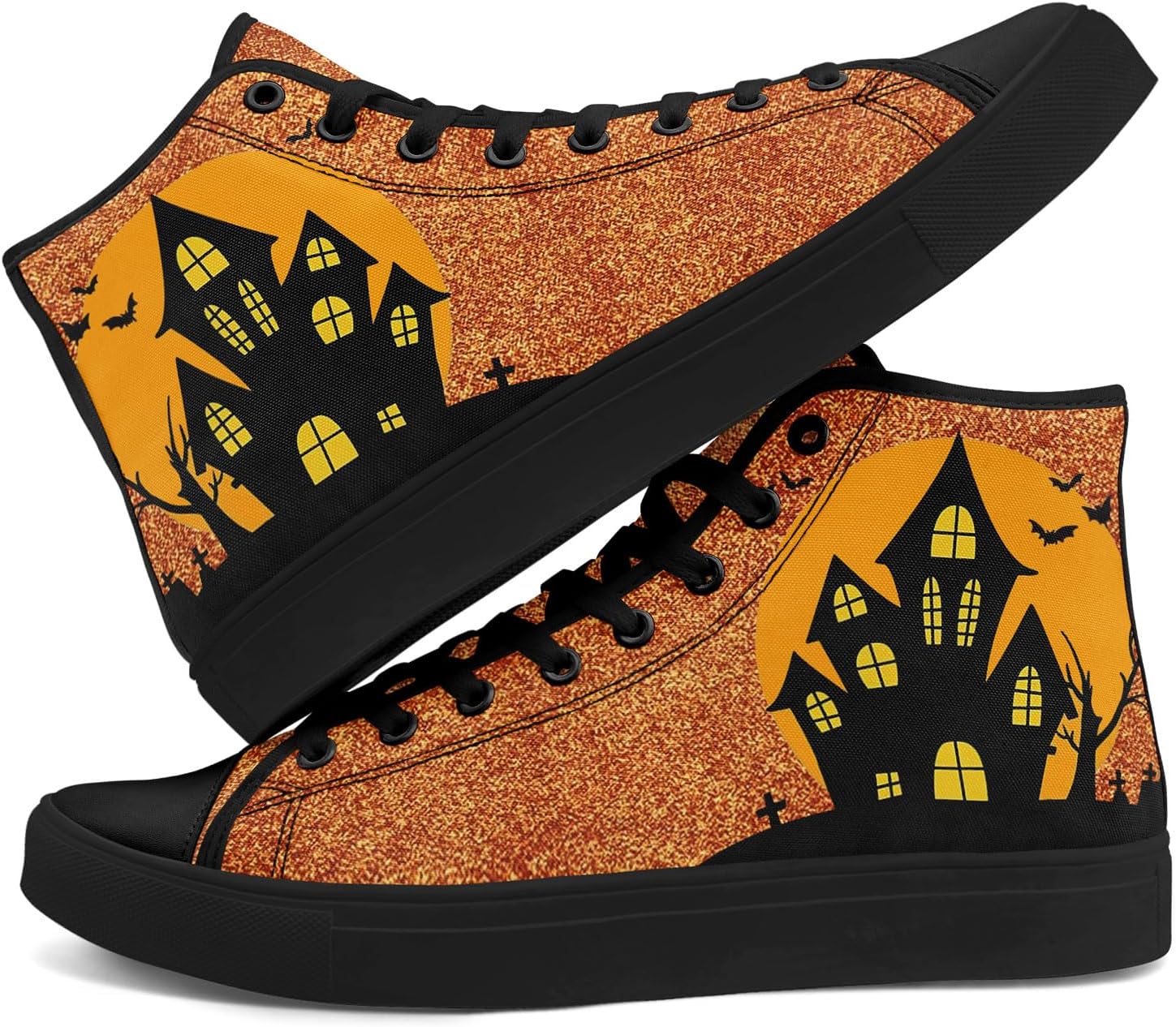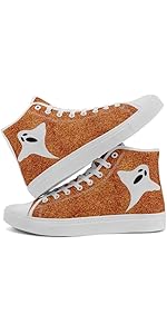 The sparkling glitter fabric gives these high-top sneakers a unique and glamorous touch, catching light with every step.Choose from a variety of Halloween-inspired designs, including eerie haunted houses, spooky ghosts, bats, and more.