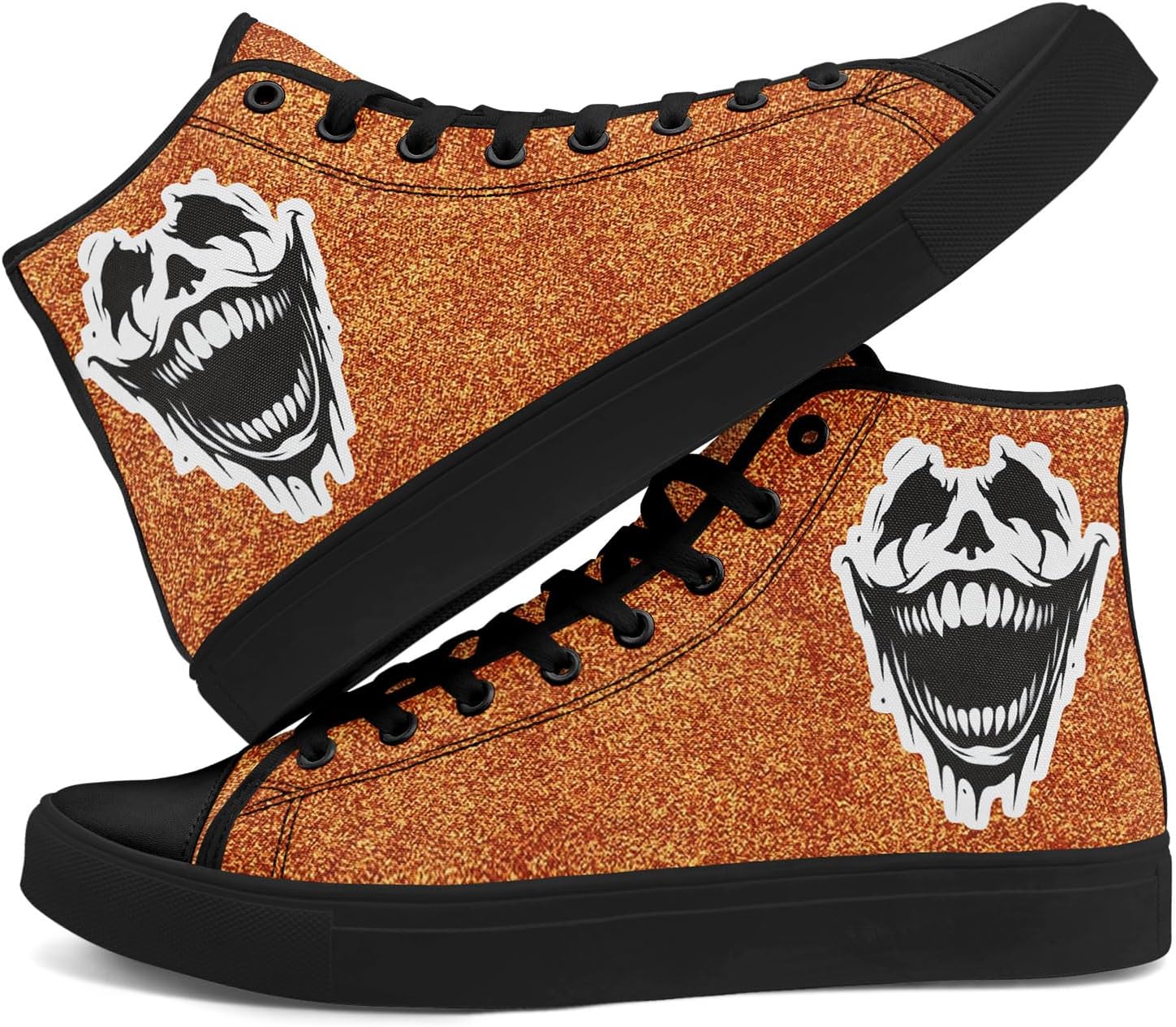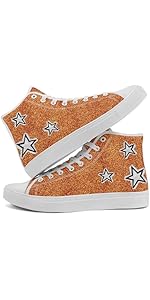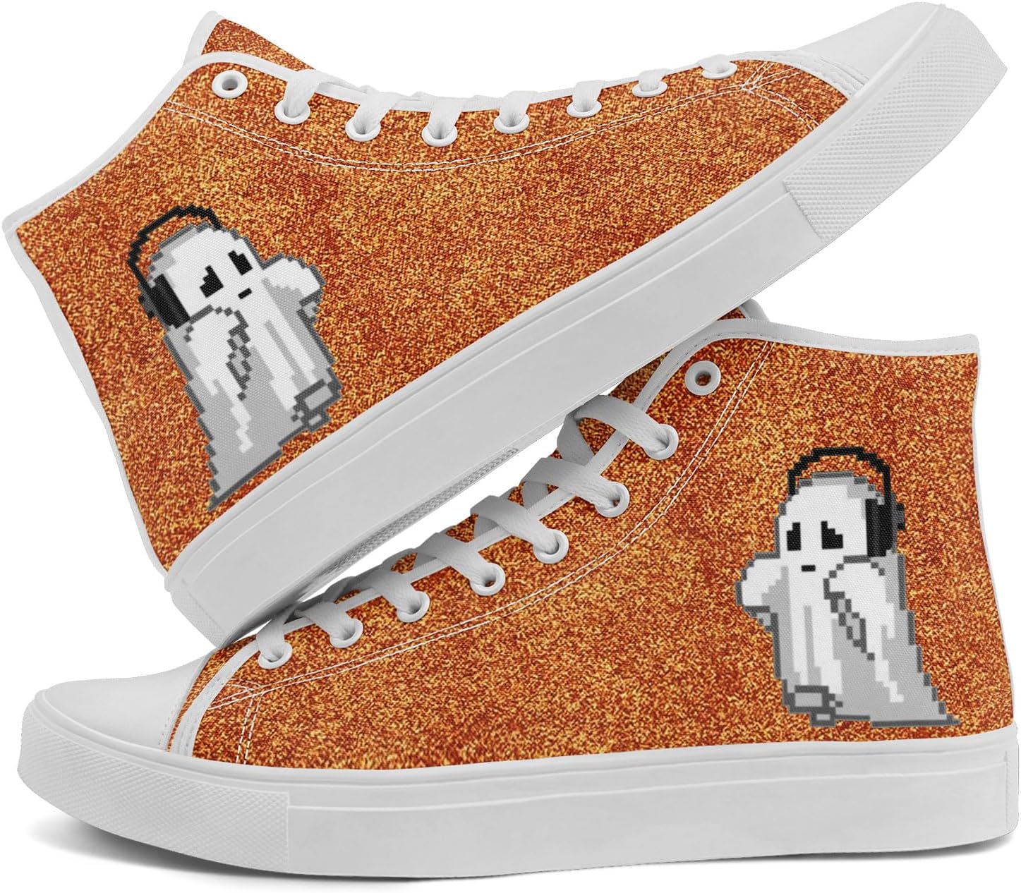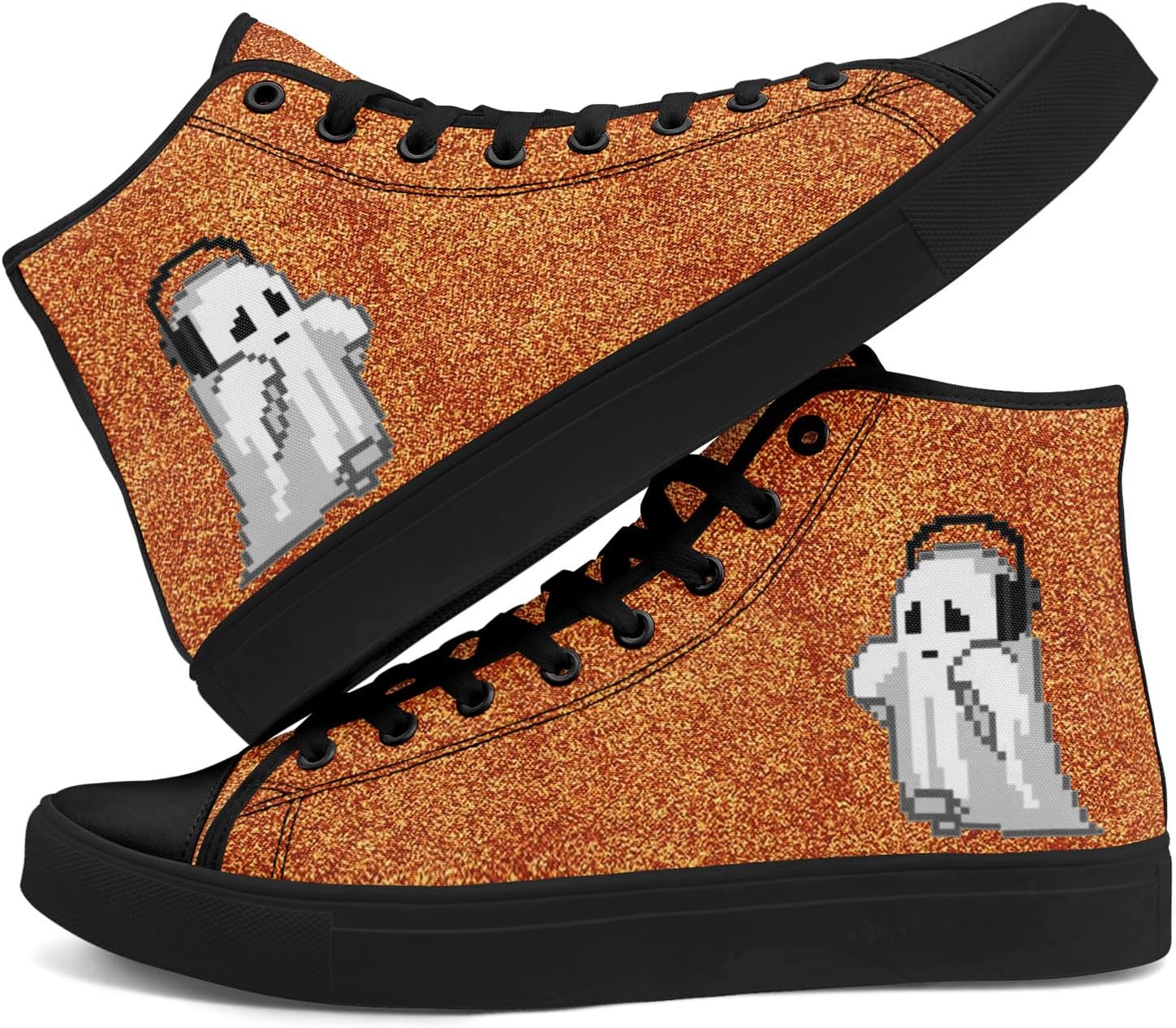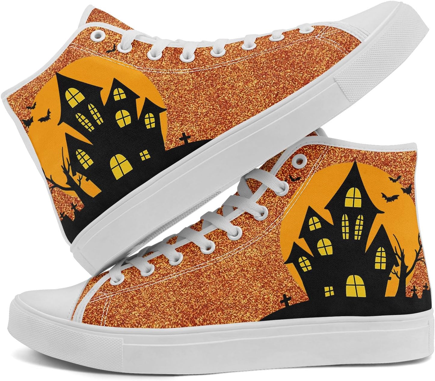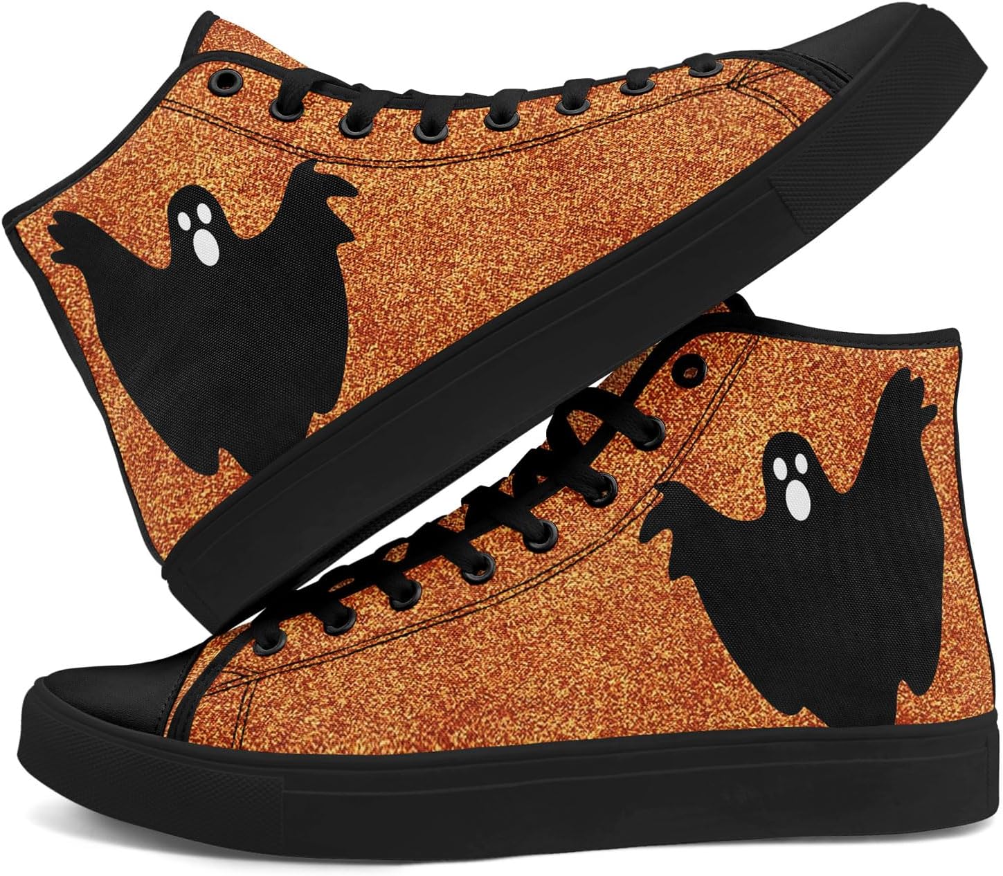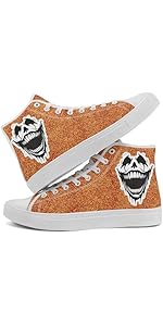The sparkling glitter fabric gives these high-top sneakers a unique and glamorous touch, catching light with every step.Choose from a variety of Halloween-inspired designs, including eerie haunted houses, spooky ghosts, bats, and more.