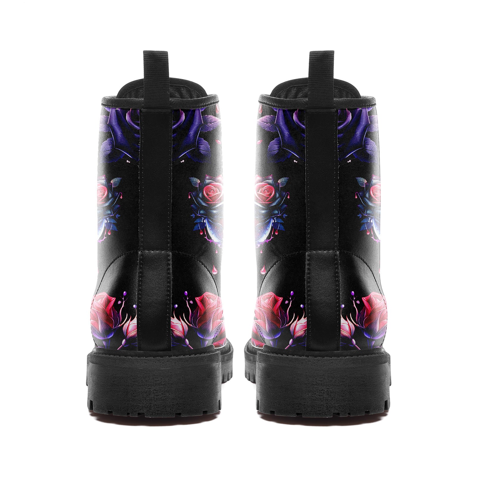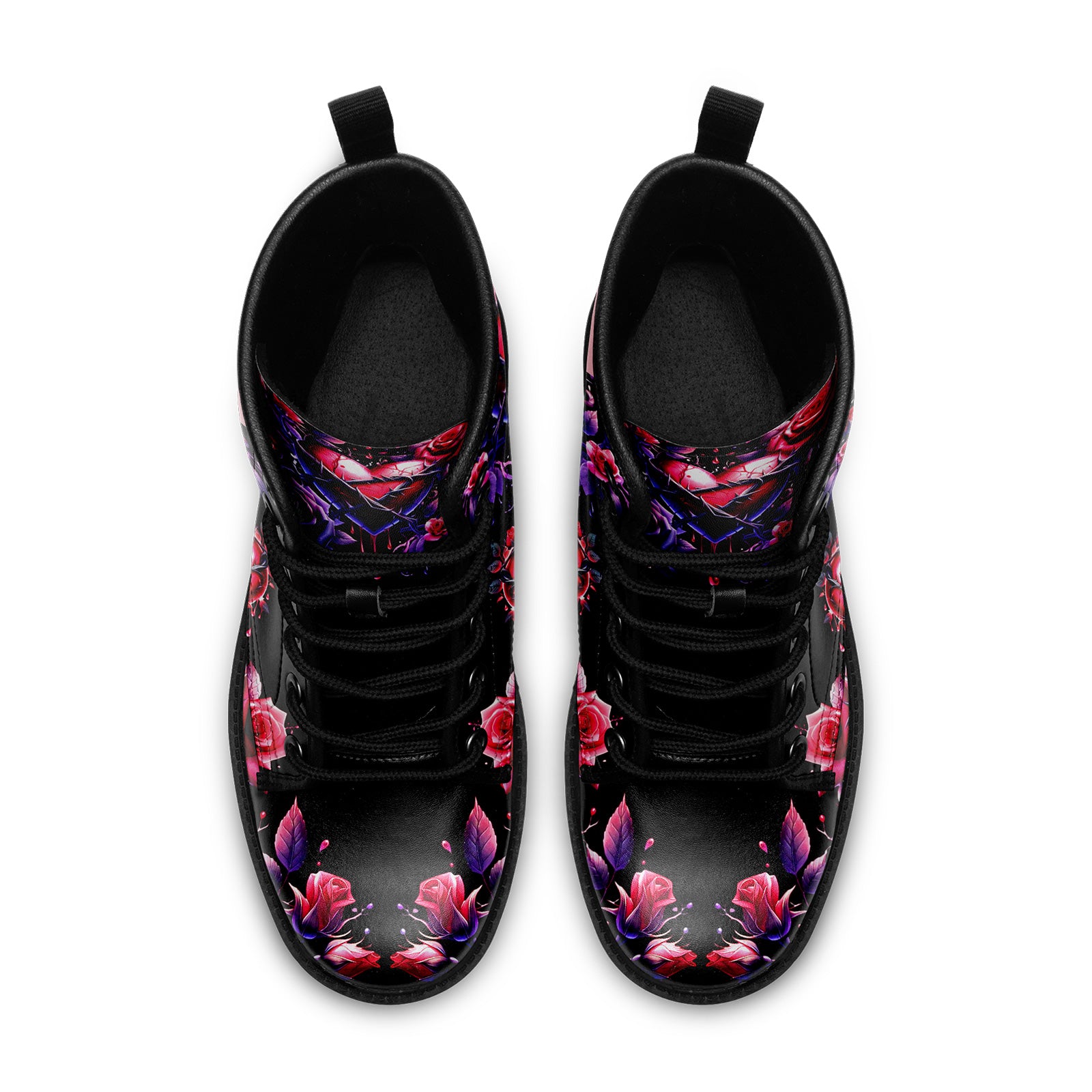 Gothic Bleeding Heart & Barbed Wire Combat Boots - Purple Rose Thorn Shoes BOOTS-24023007-7
