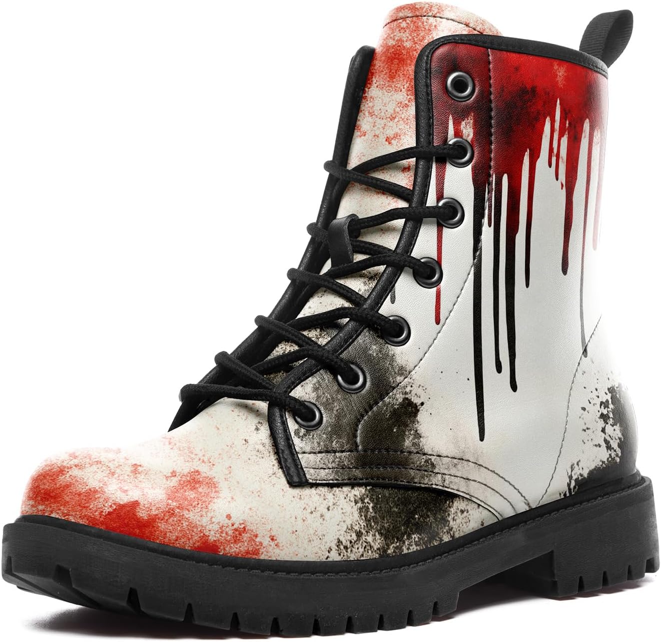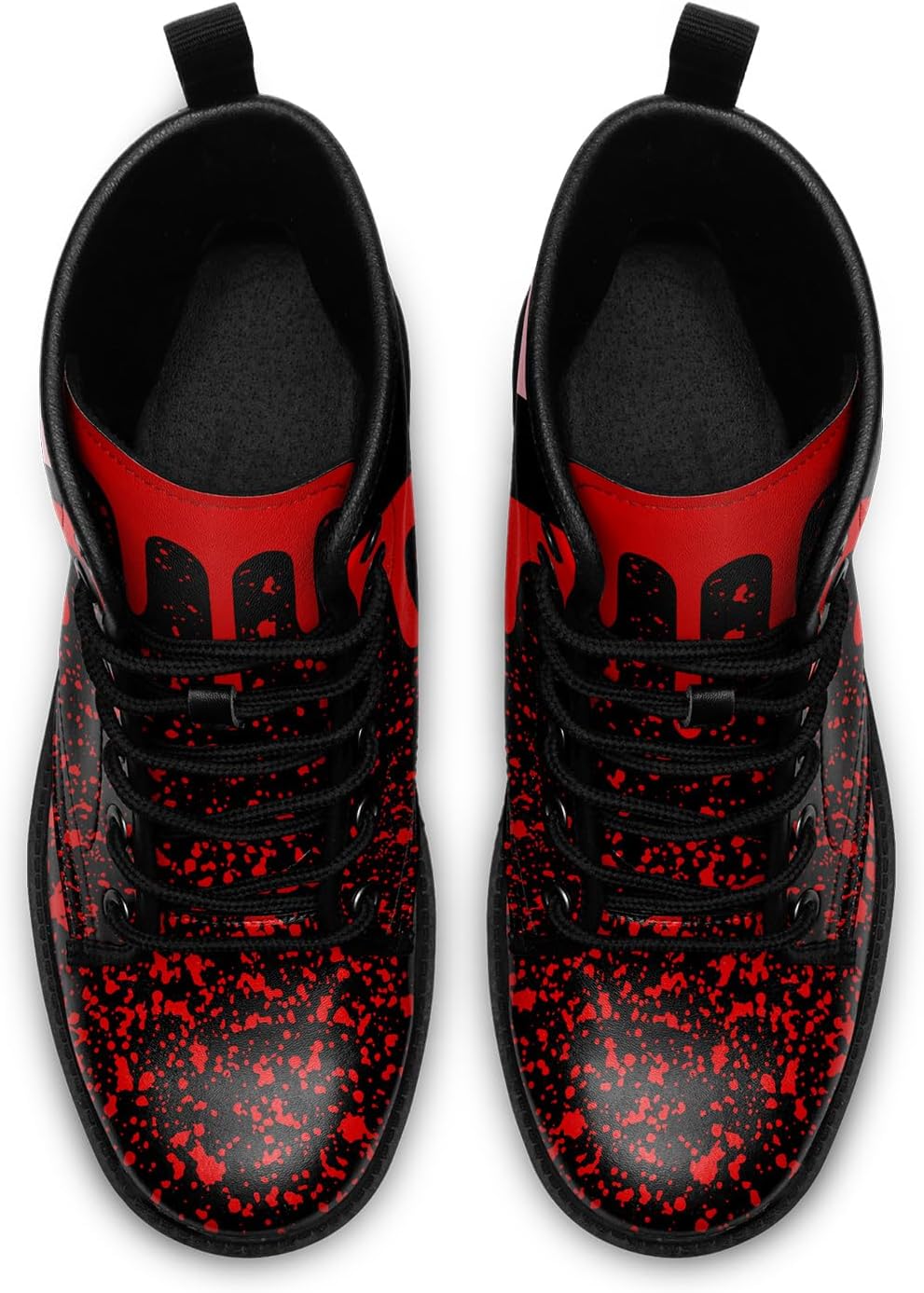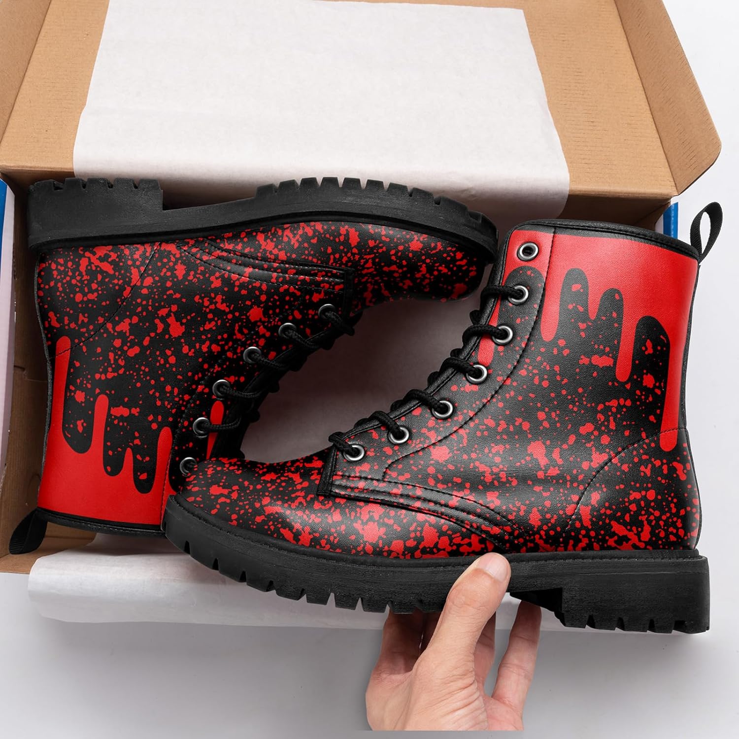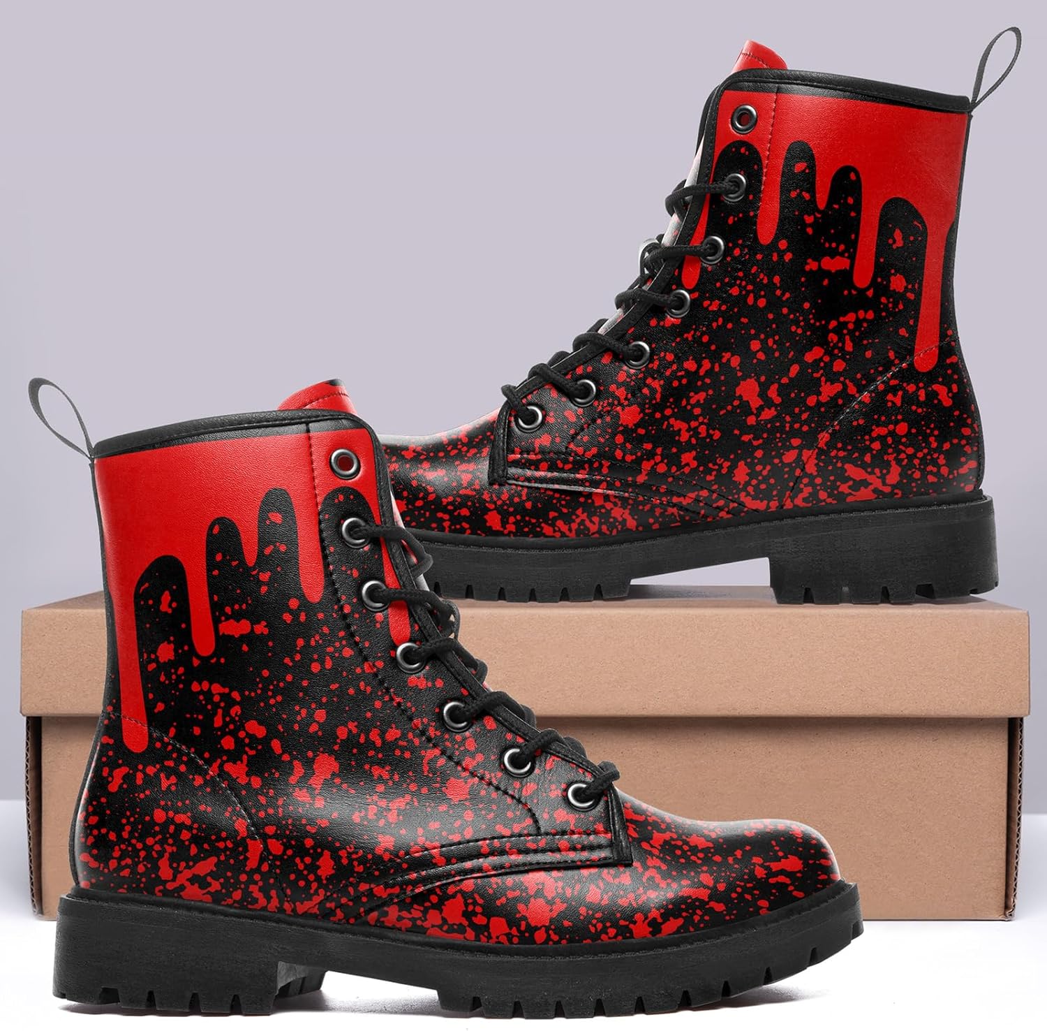 Gothic Blood Drip Combat Boots-Unisex Lace-Up Ankle Booties Anti-Slip Platform Lug Sole Cushioning Punk Halloween Footwear