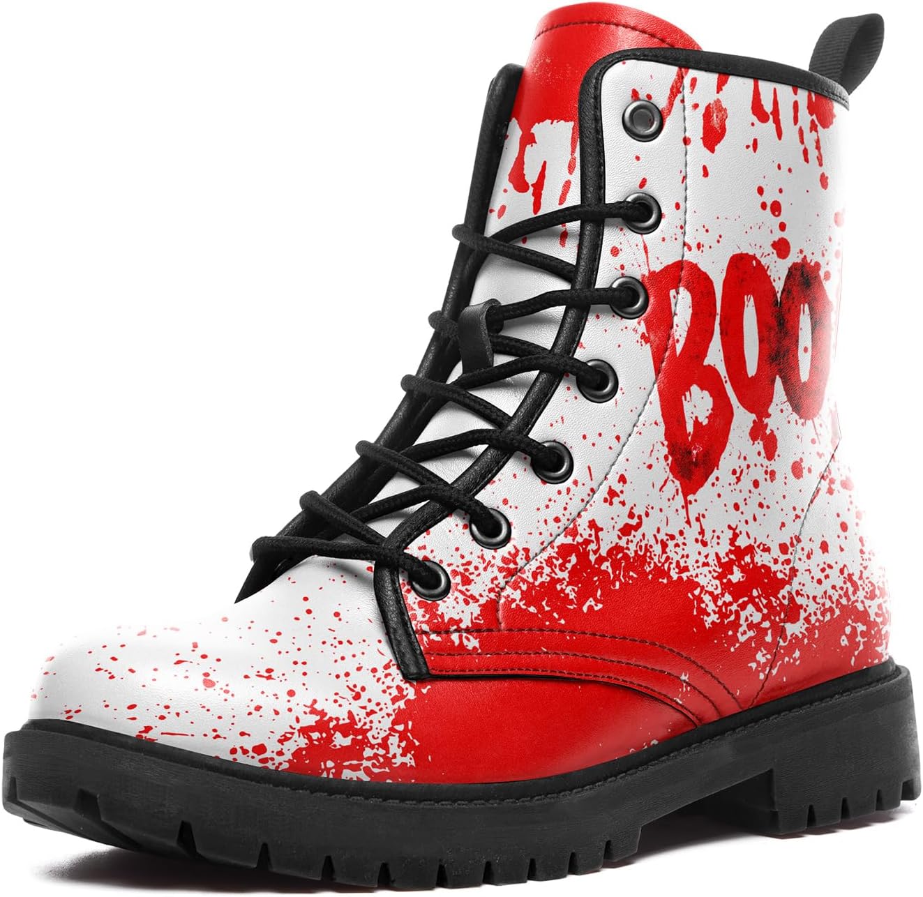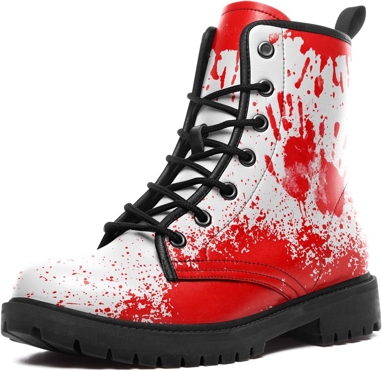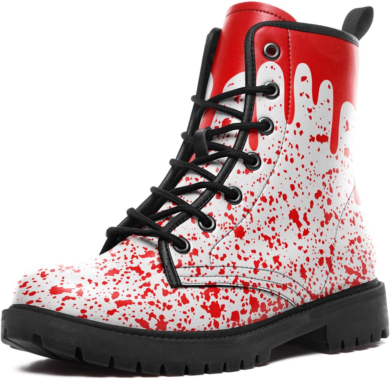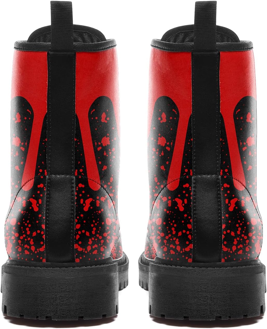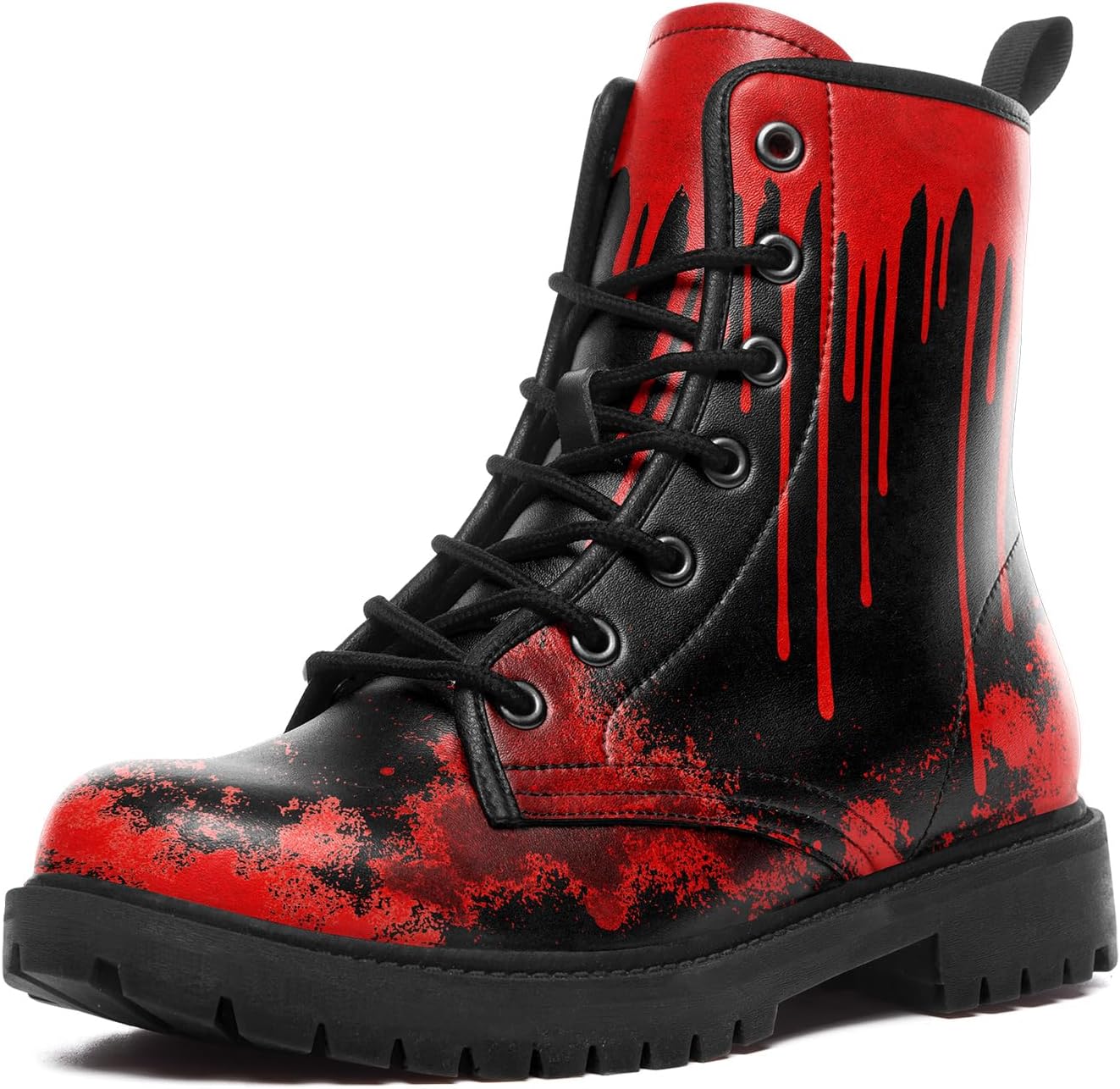 Gothic Blood Drip Combat Boots-Unisex Lace-Up Ankle Booties Anti-Slip Platform Lug Sole Cushioning Punk Halloween Footwear