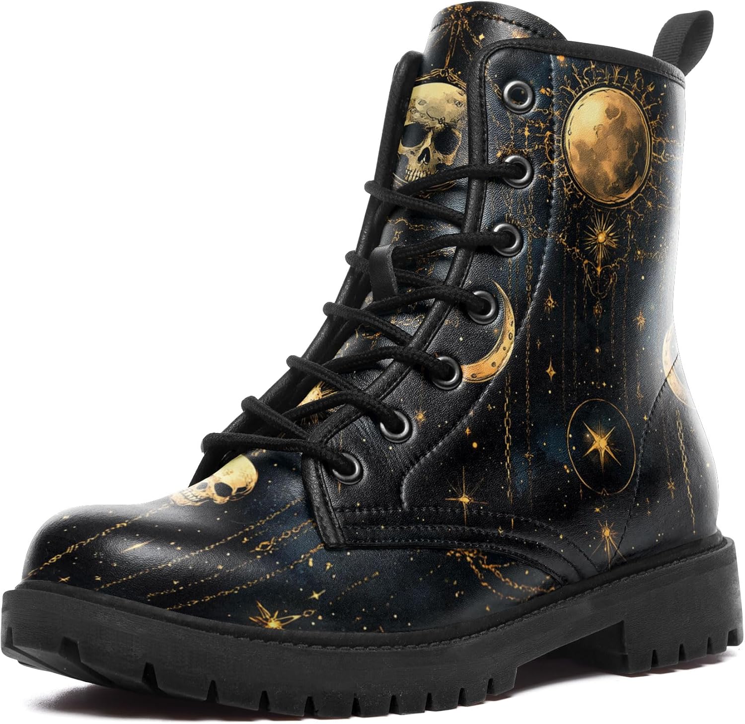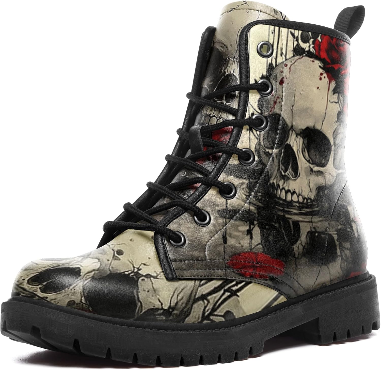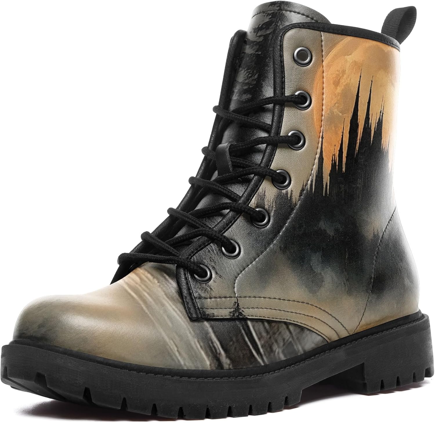 Gothic Combat Boots for Women & Men | Punk Rock Lace-Up Chuncky Heel Ankle Boots Vegan Leather Waterproof Black work boots