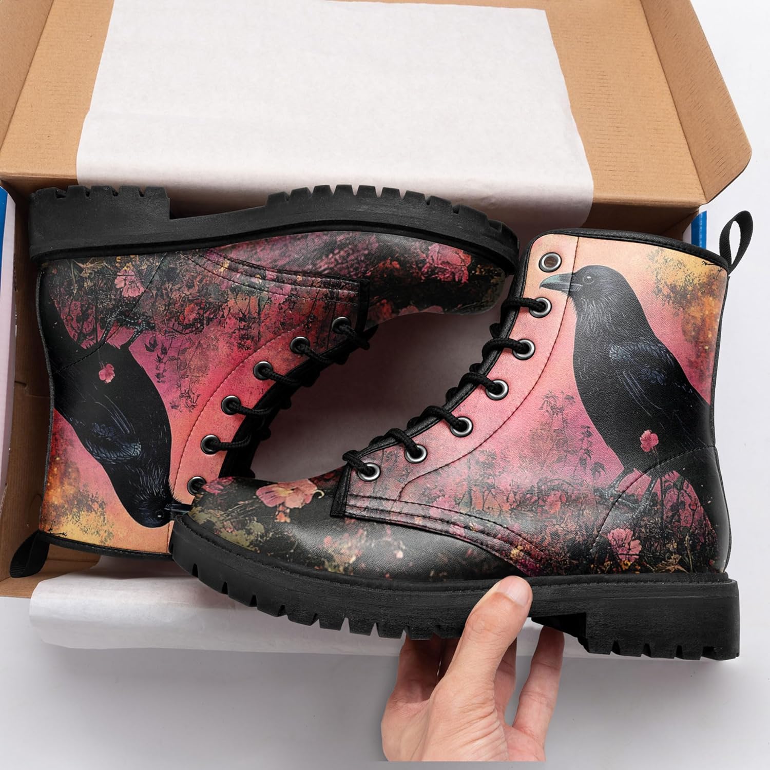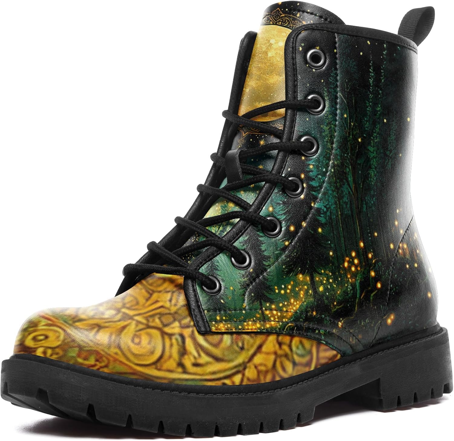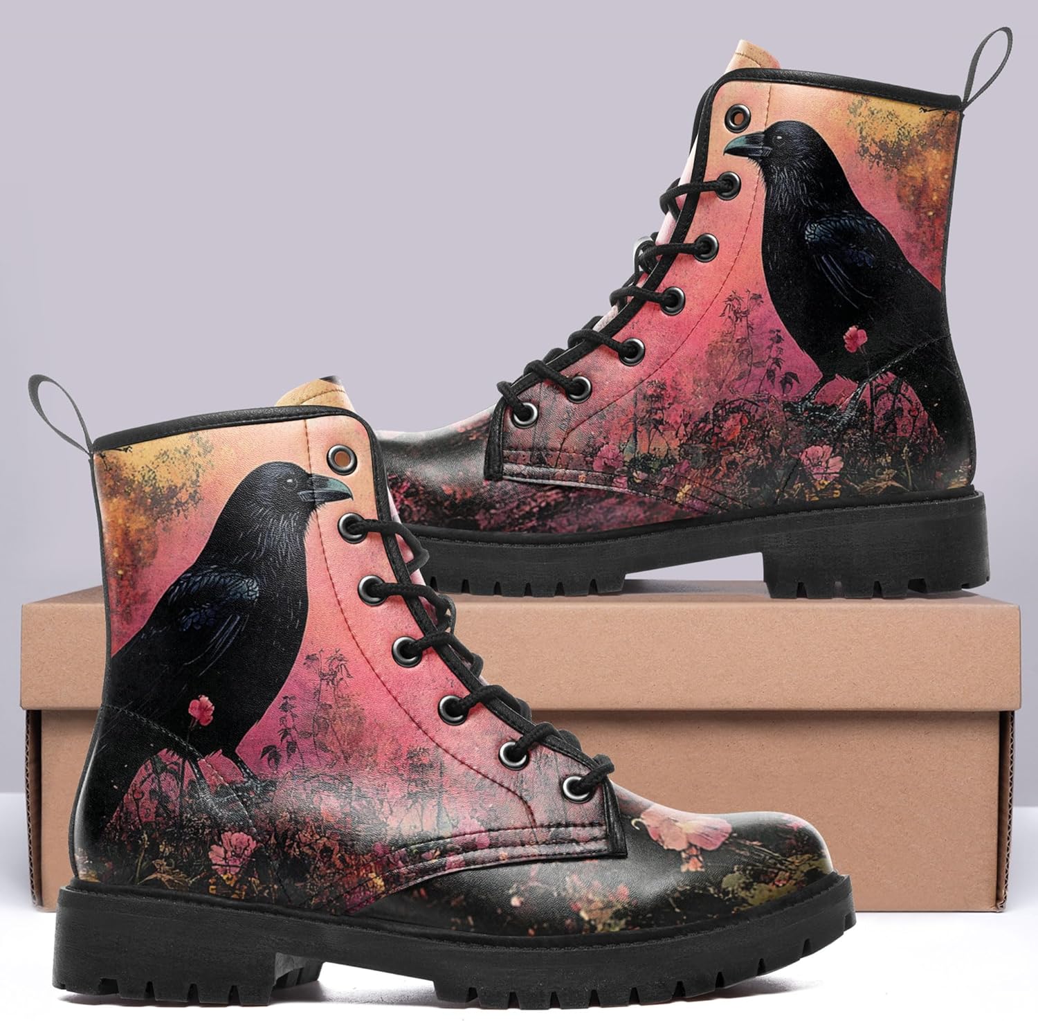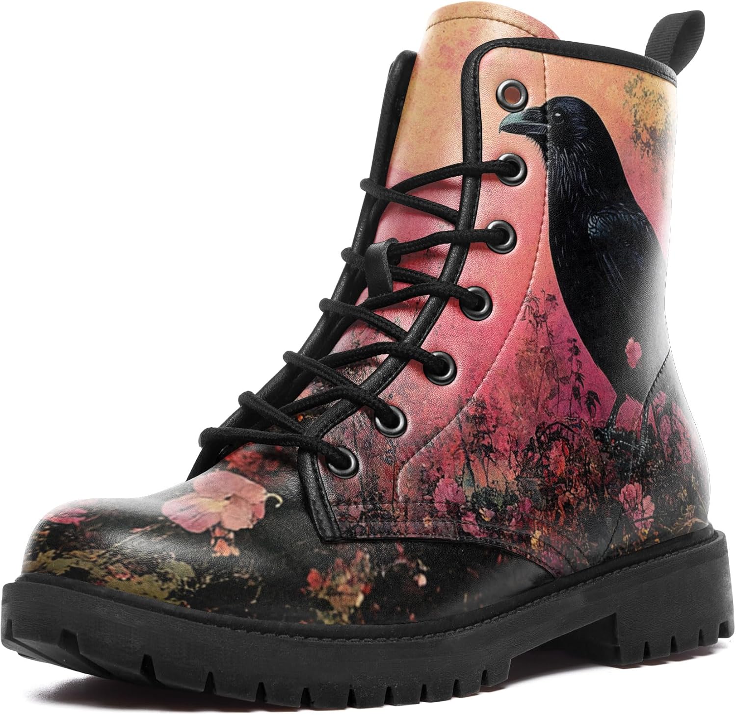 Gothic Combat Boots for Women & Men | Punk Rock Lace-Up Chuncky Heel Ankle Boots Vegan Leather Waterproof Black work boots