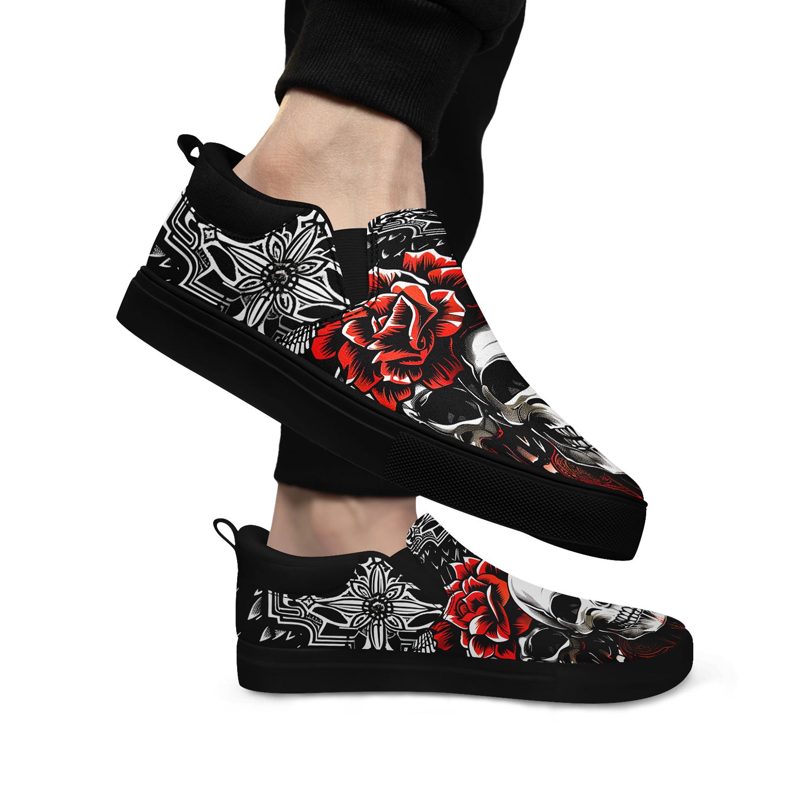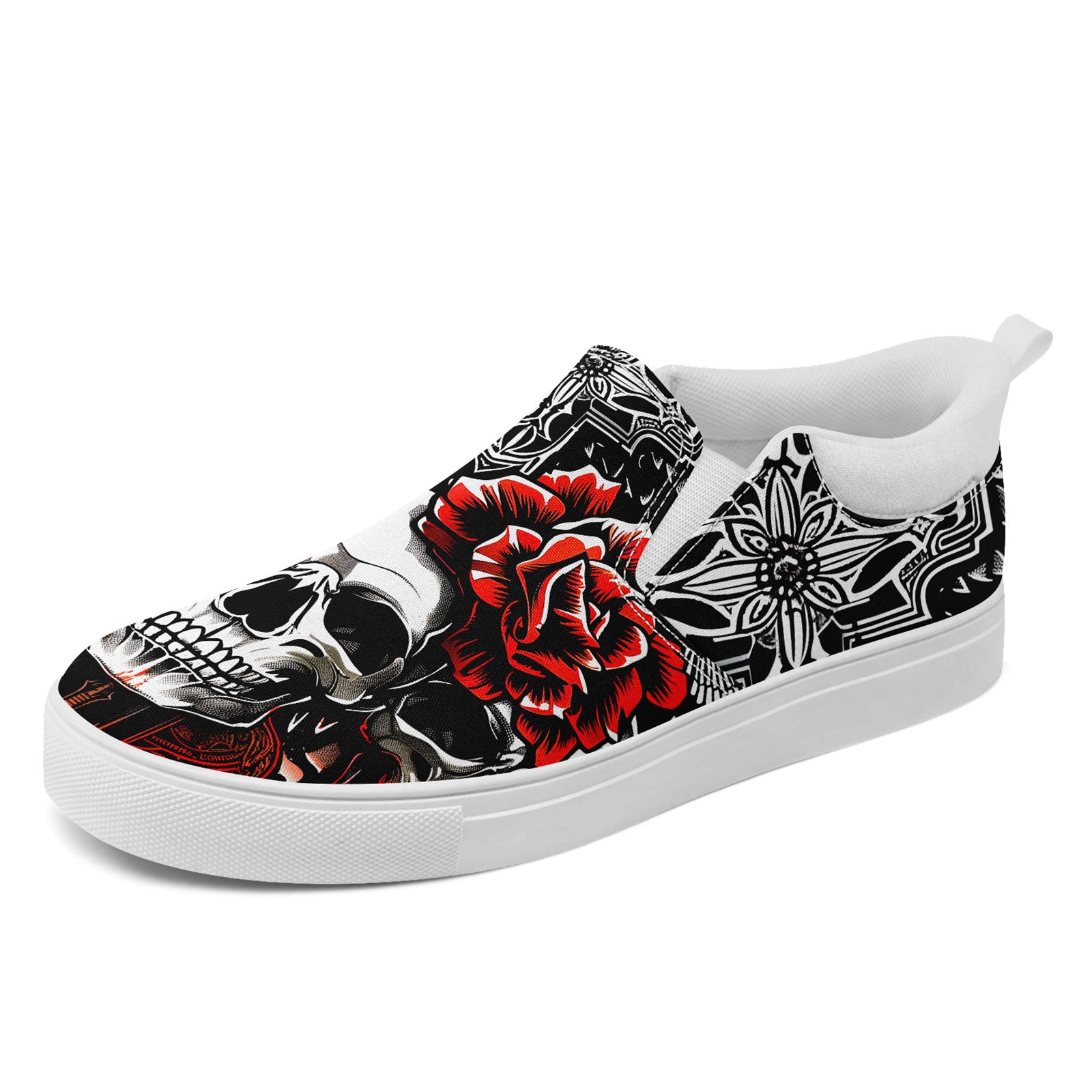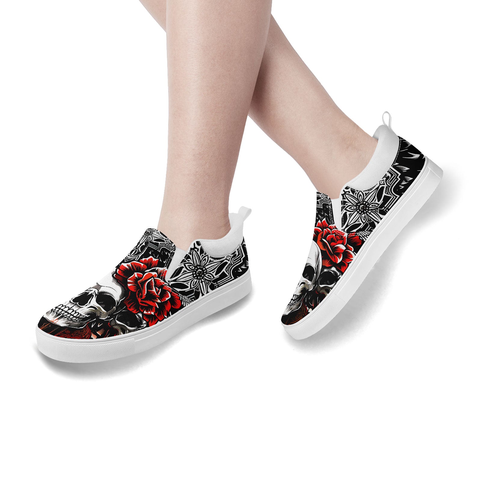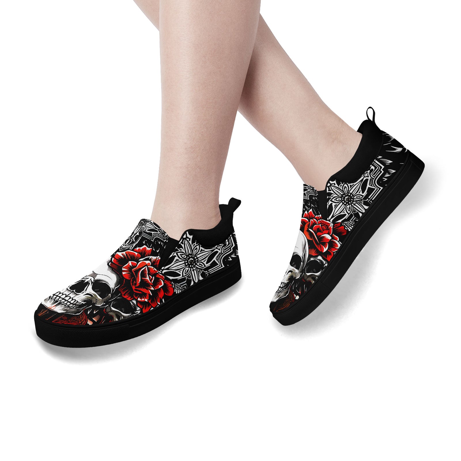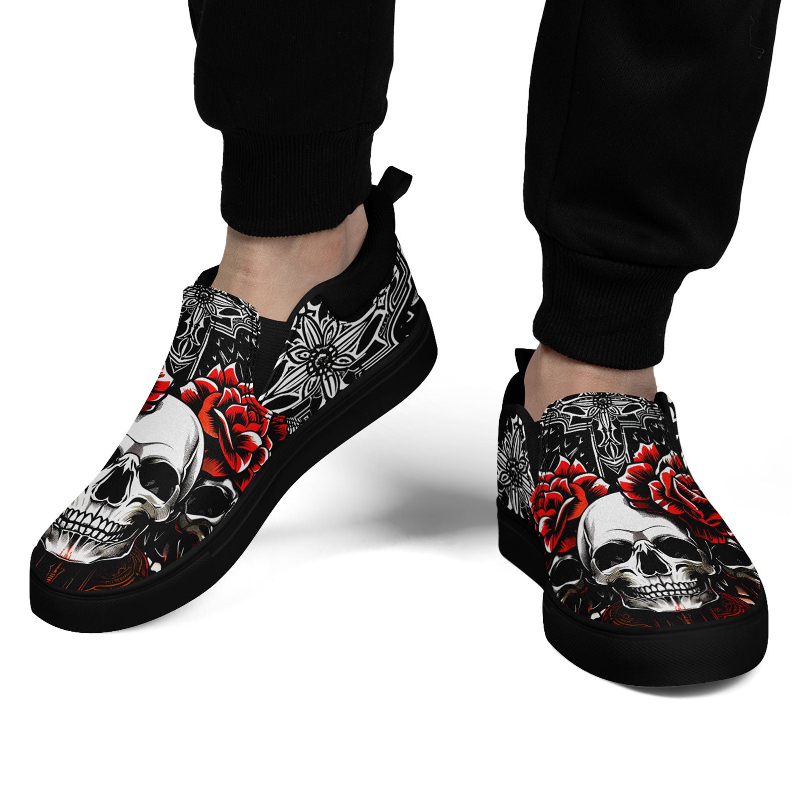 Skull Rose Slip-On Shoes | Wedding, Birthday, Valentine, Halloween Gift | Gothic Floral Sneakers | FN071-25023022-3