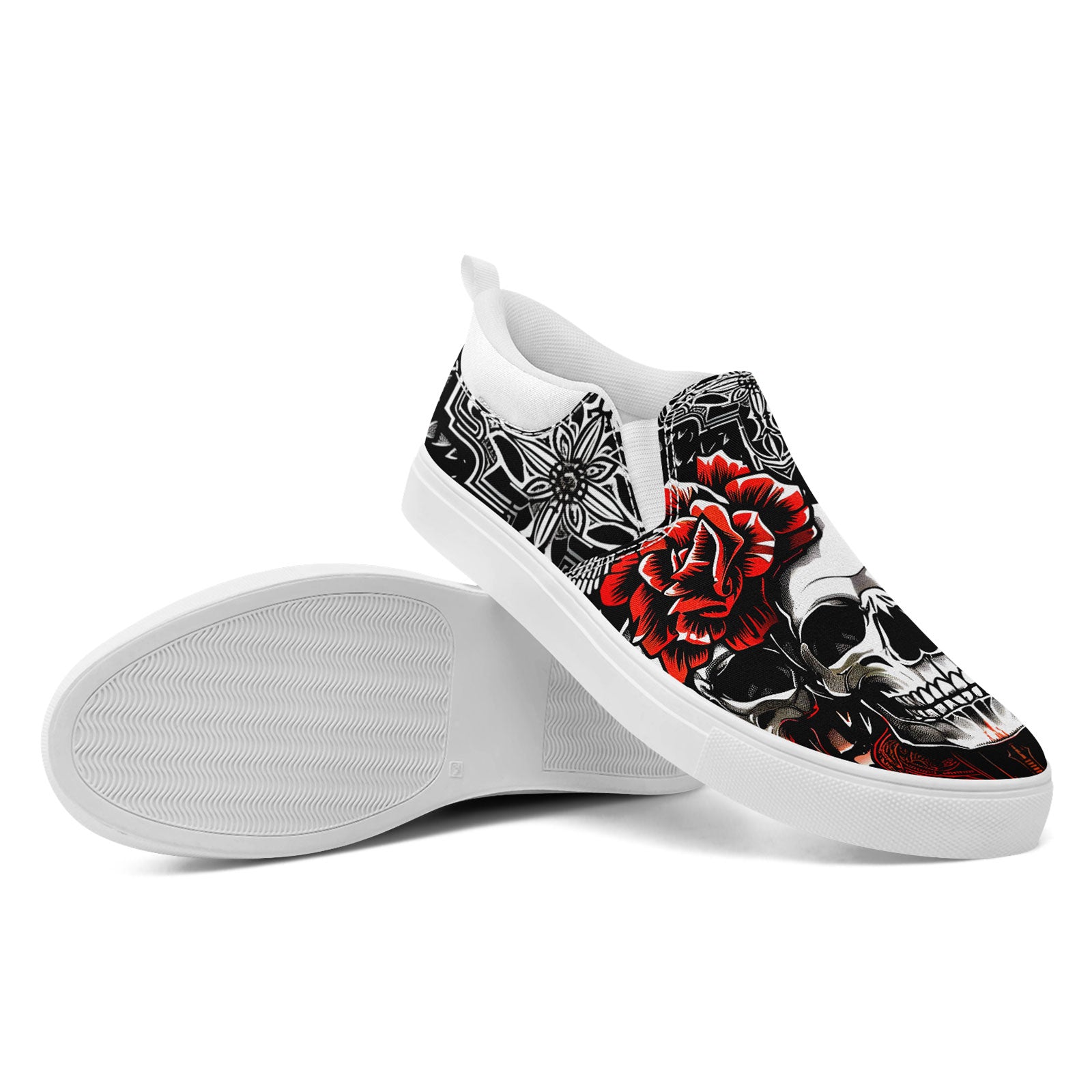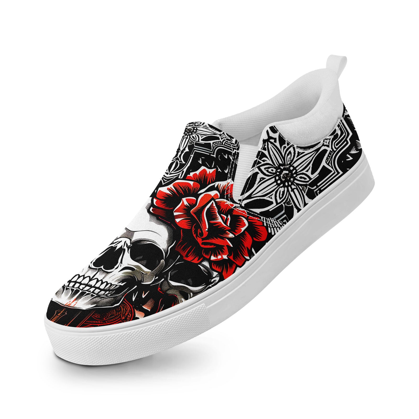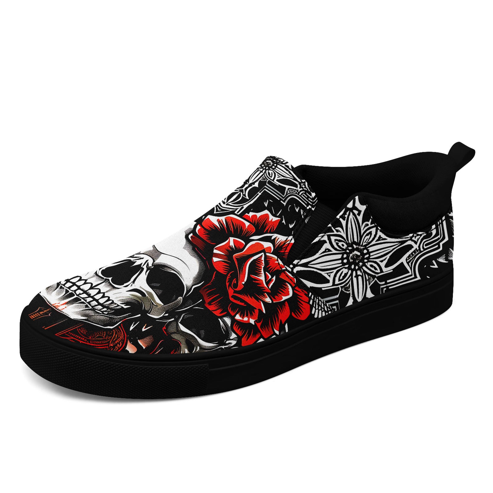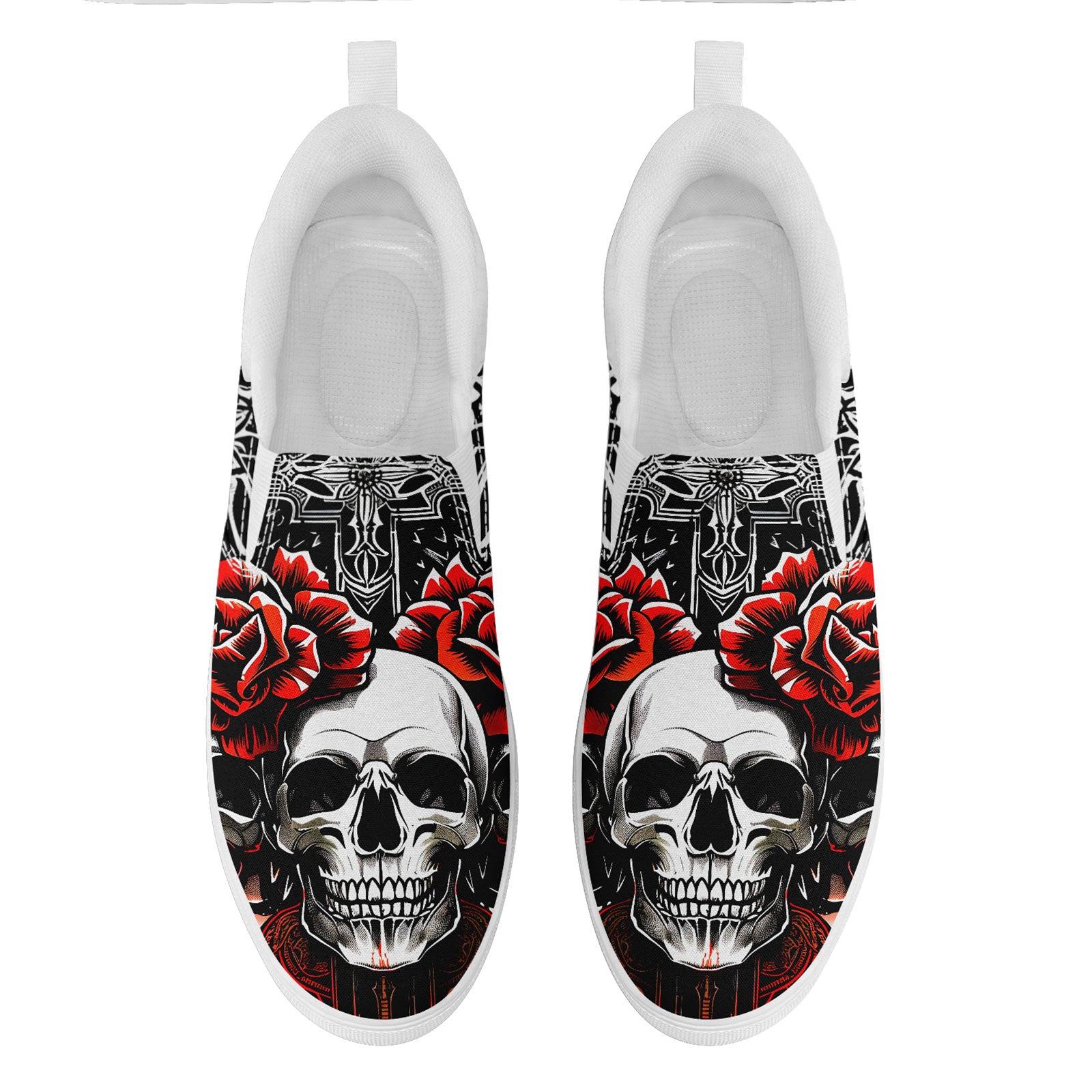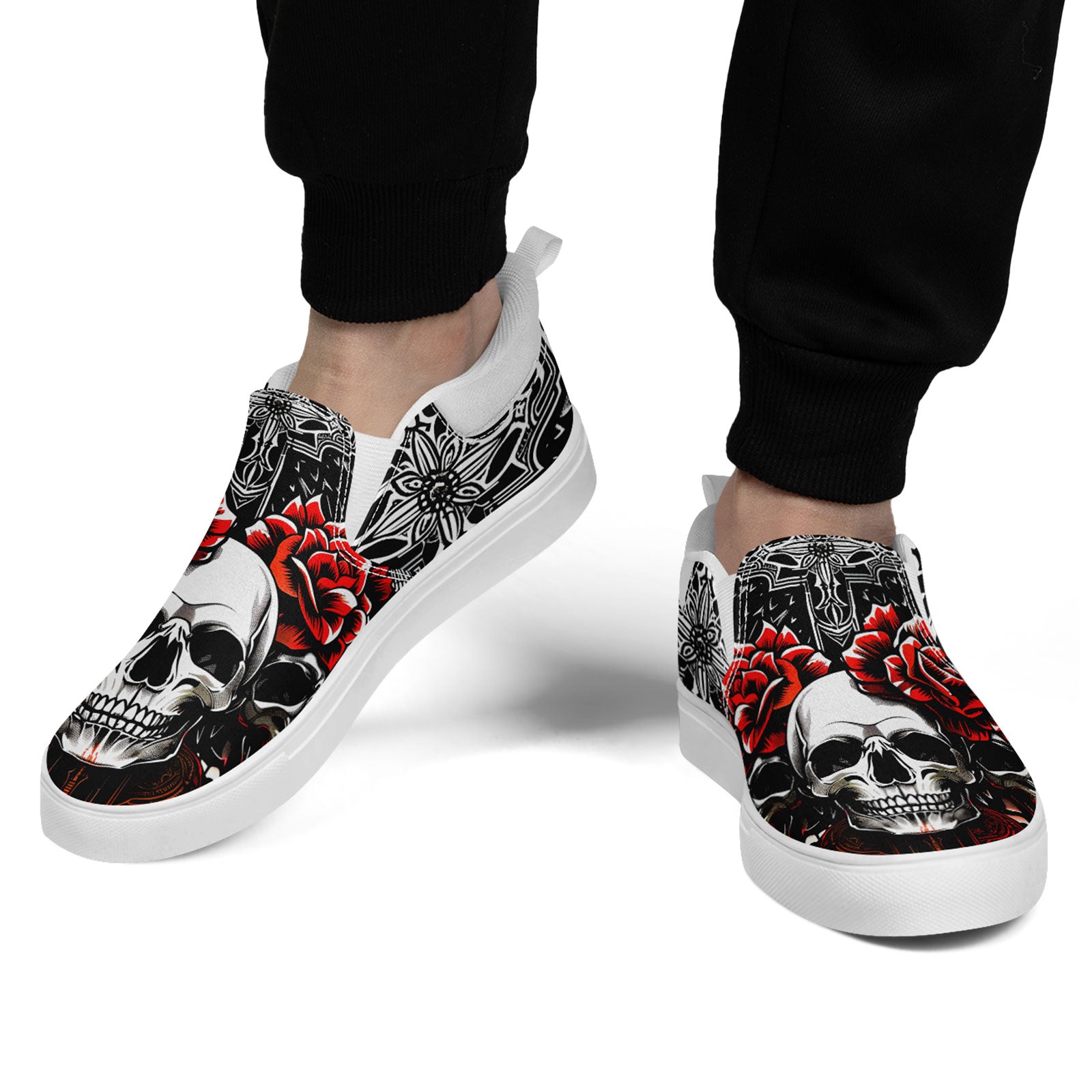 Skull Rose Slip-On Shoes | Wedding, Birthday, Valentine, Halloween Gift | Gothic Floral Sneakers | FN071-25023022-3