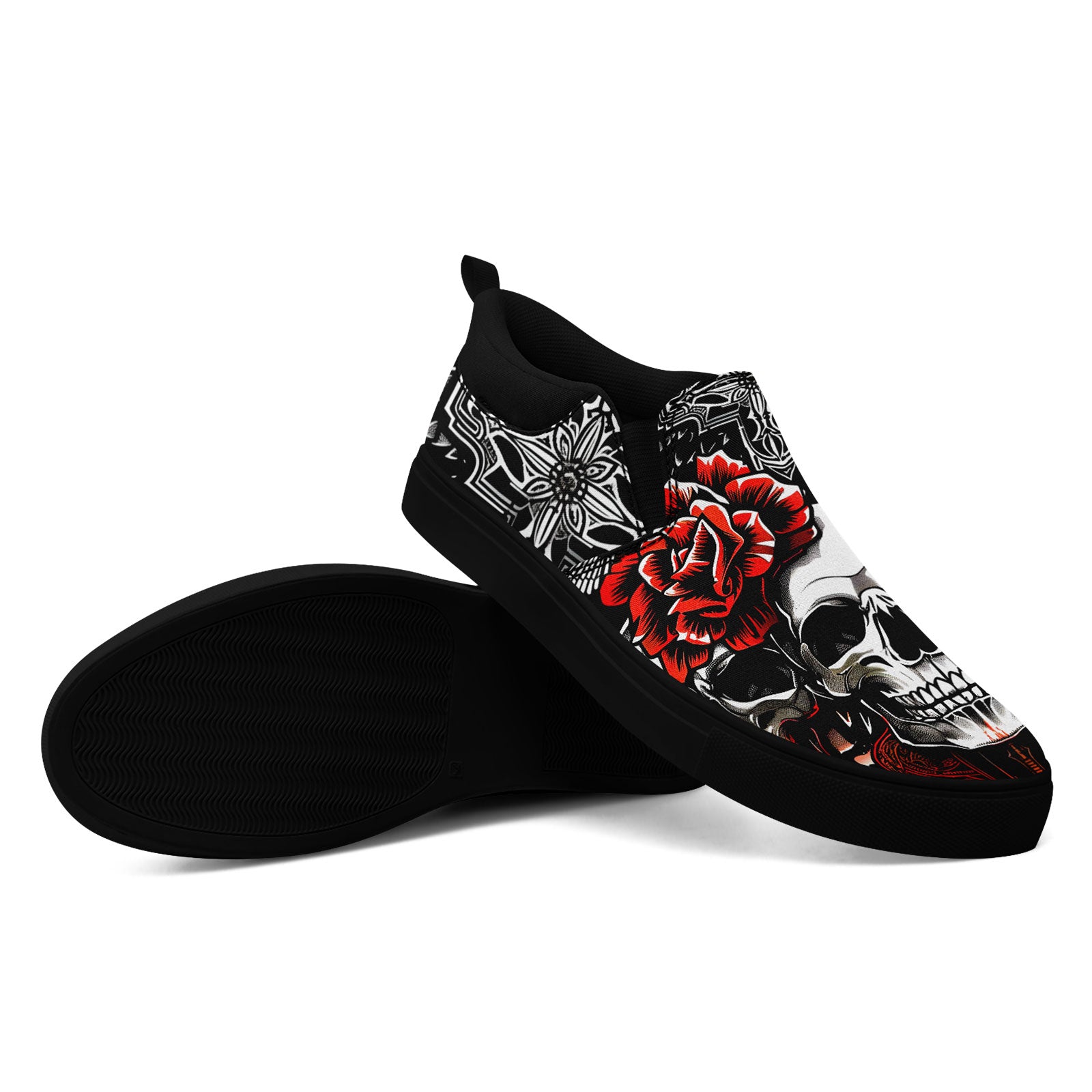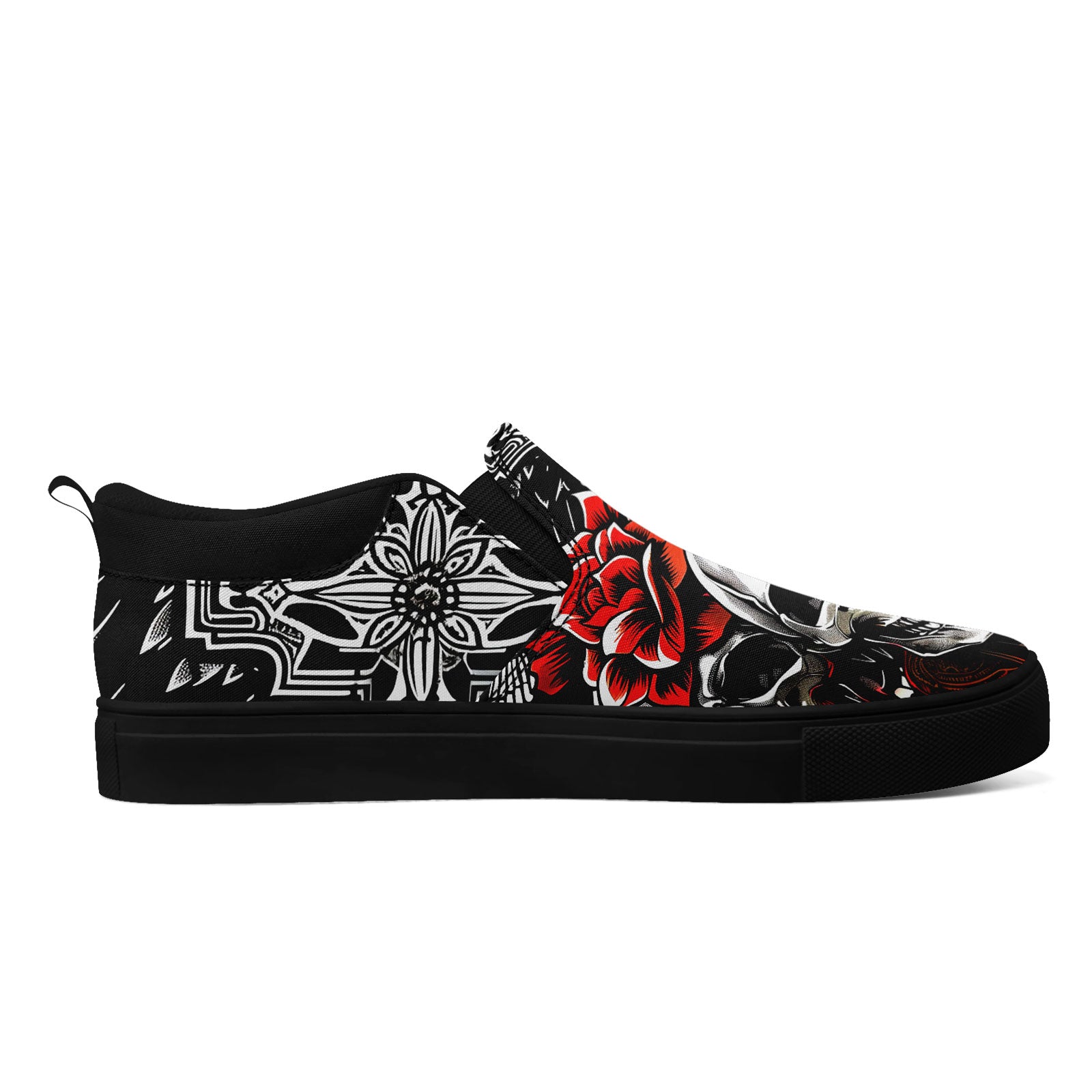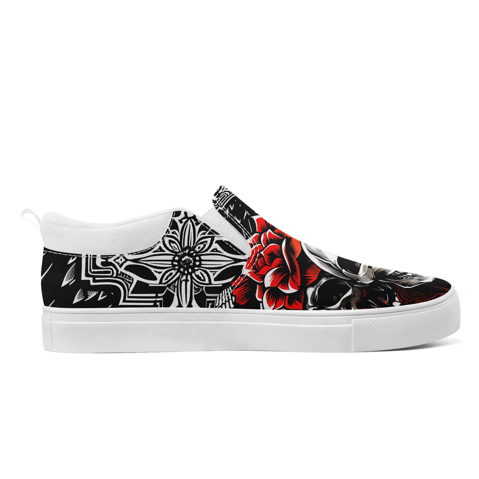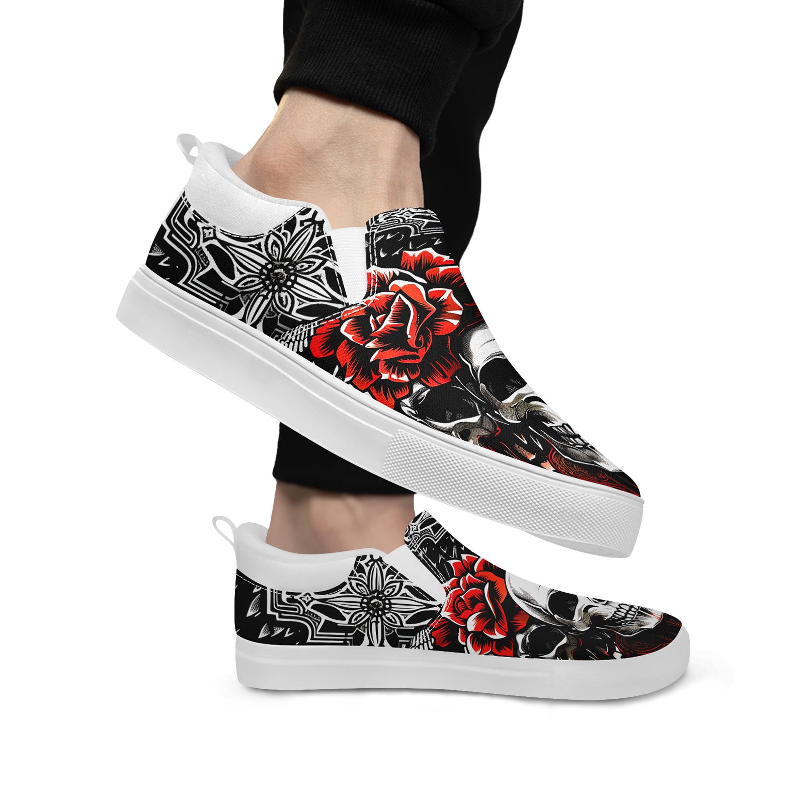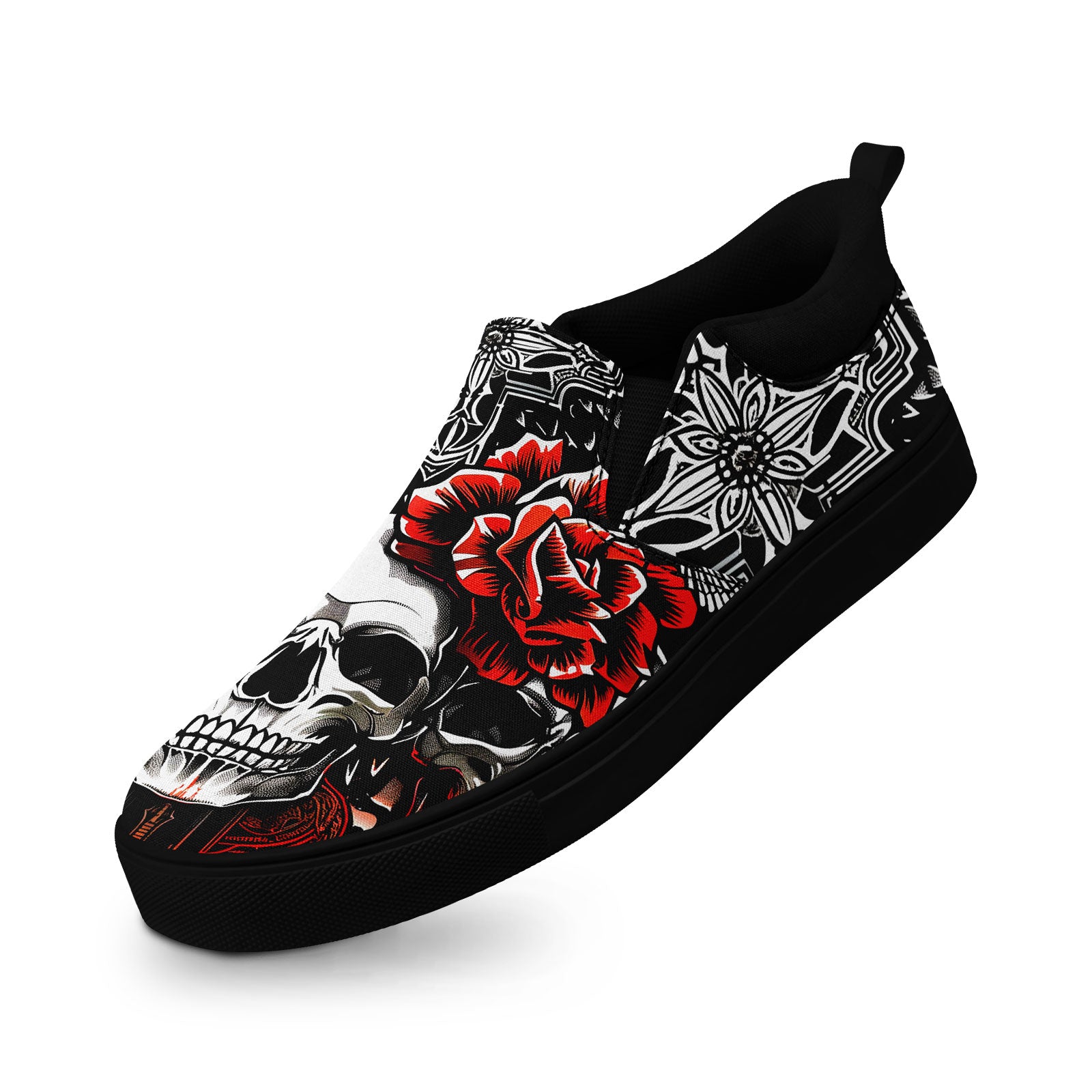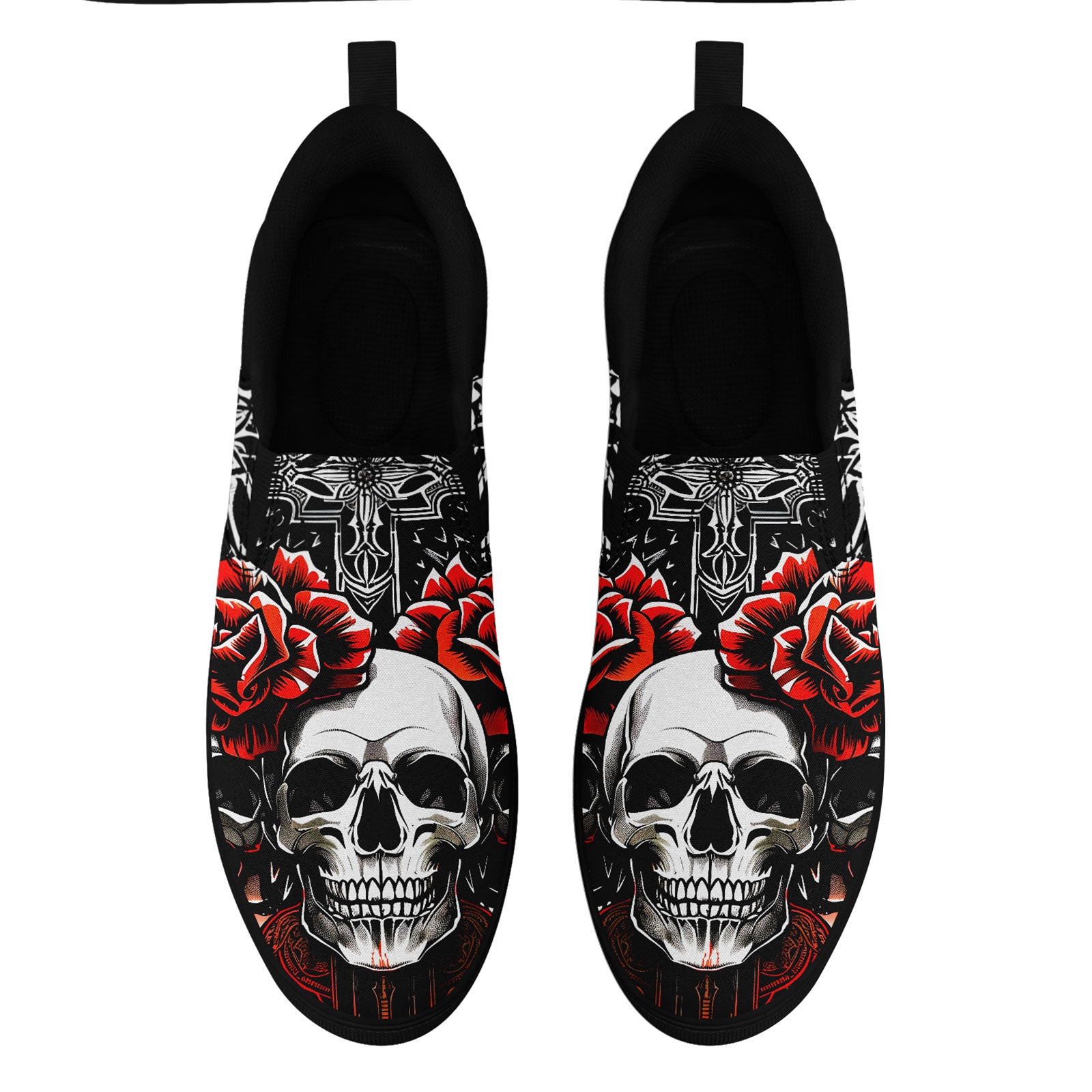 Skull Rose Slip-On Shoes | Wedding, Birthday, Valentine, Halloween Gift | Gothic Floral Sneakers | FN071-25023022-3