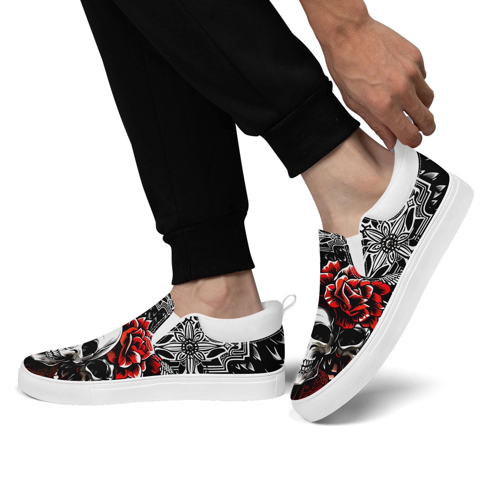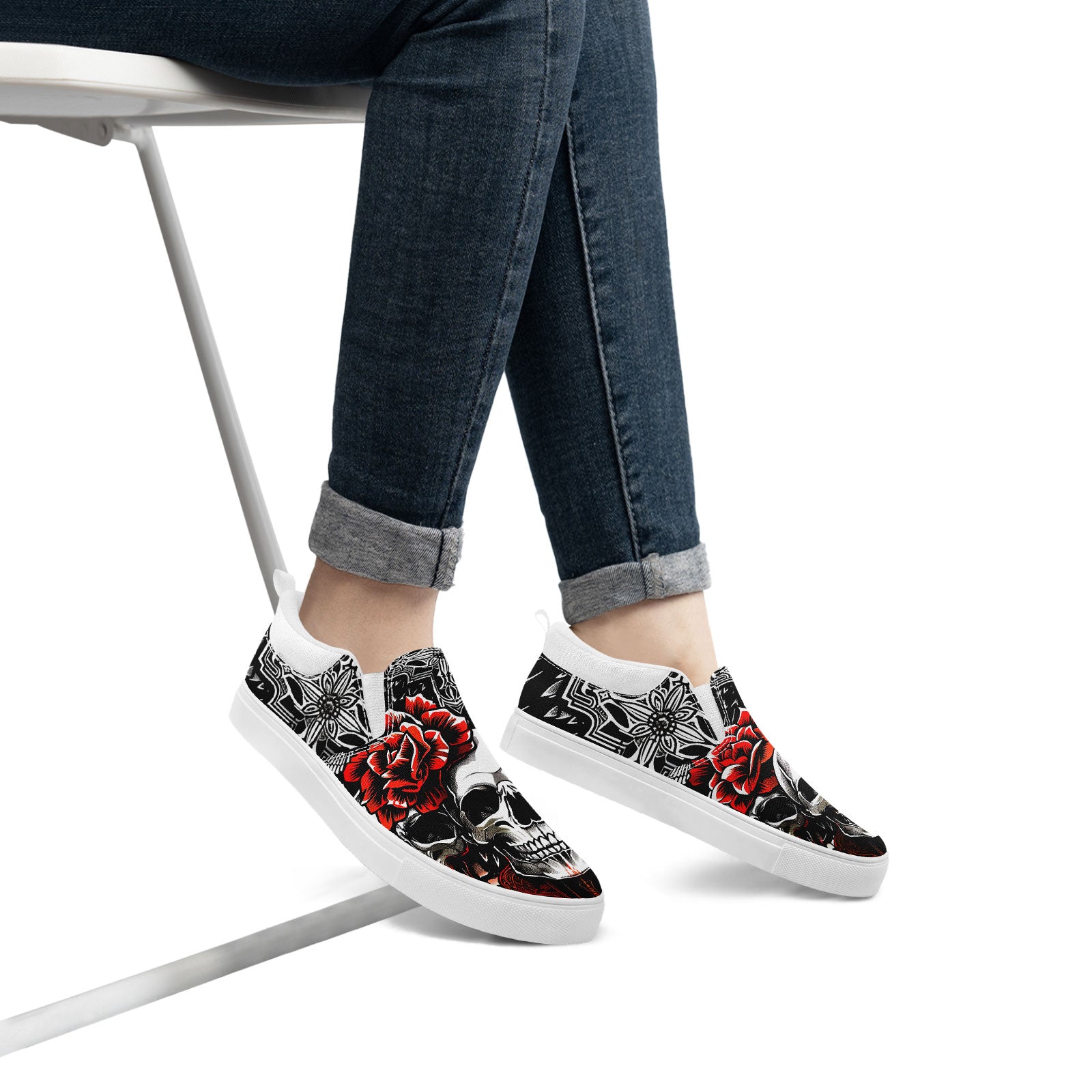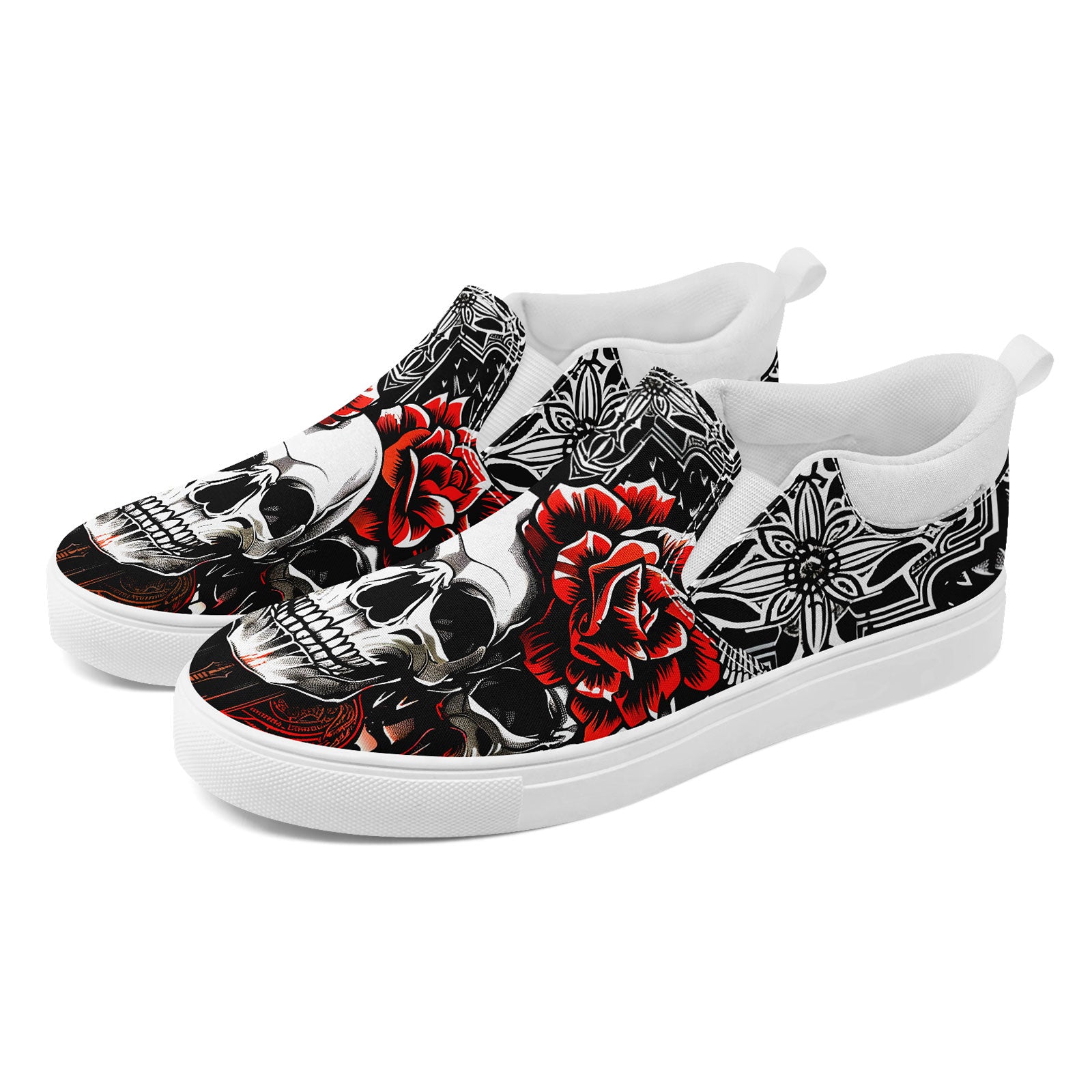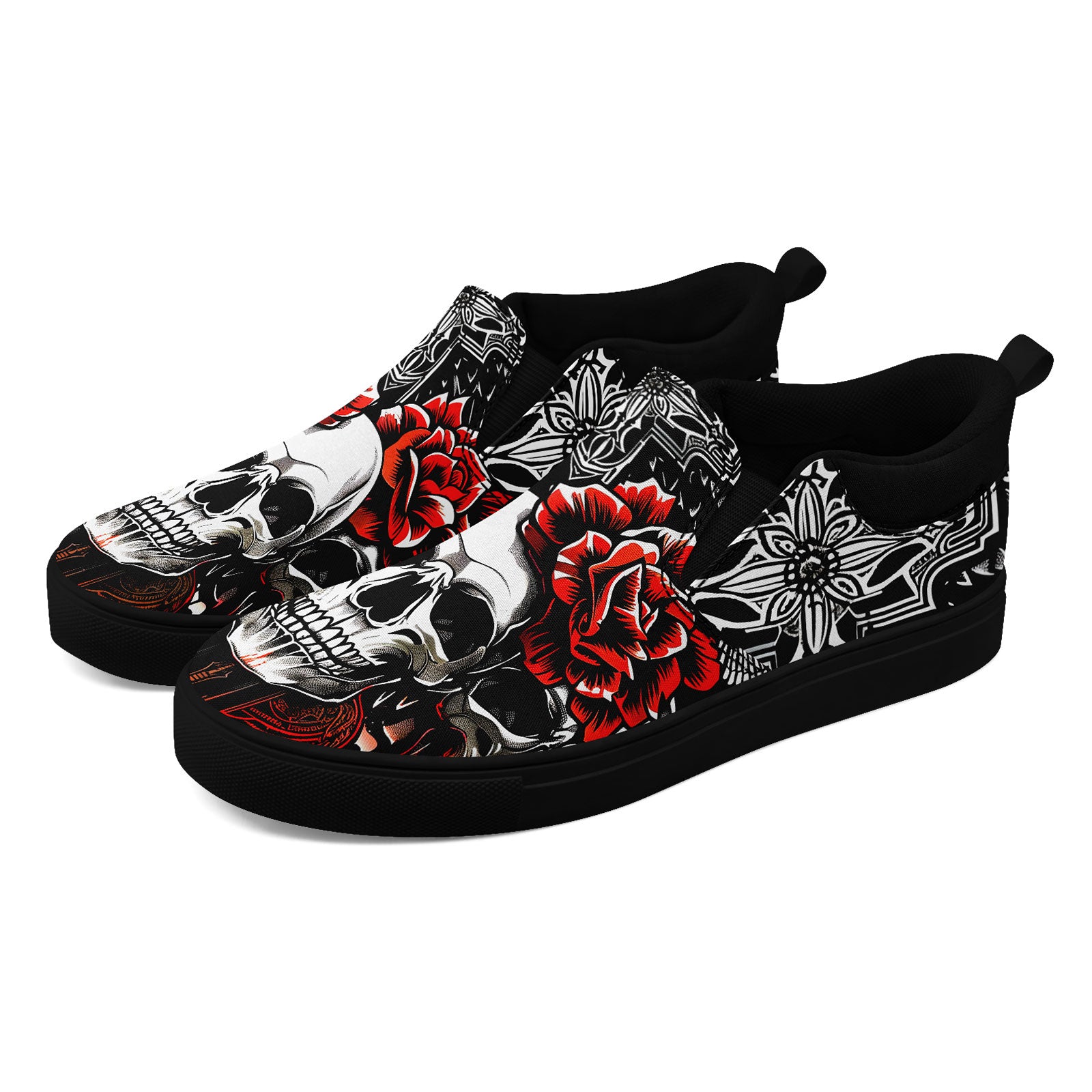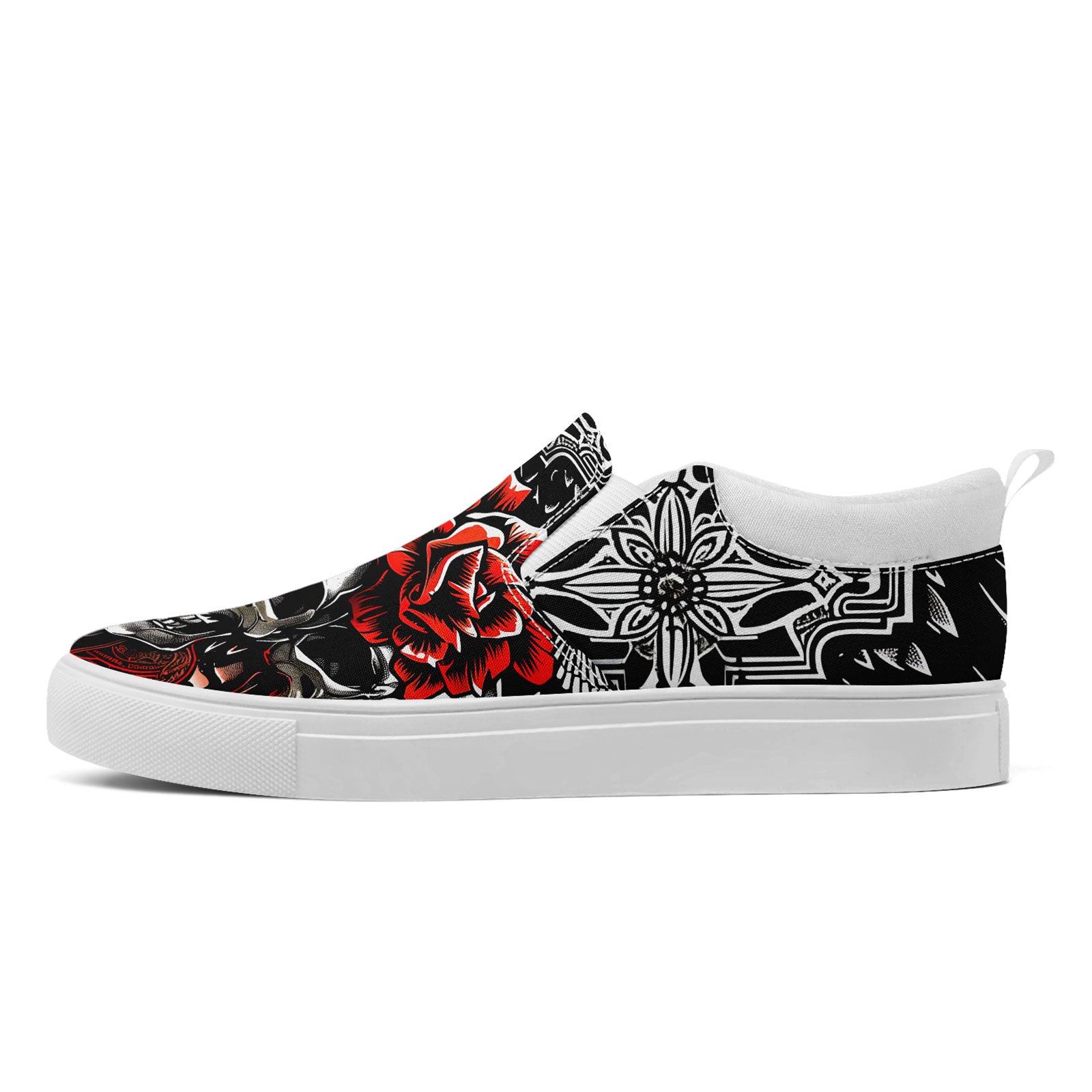 Skull Rose Slip-On Shoes | Wedding, Birthday, Valentine, Halloween Gift | Gothic Floral Sneakers | FN071-25023022-3
