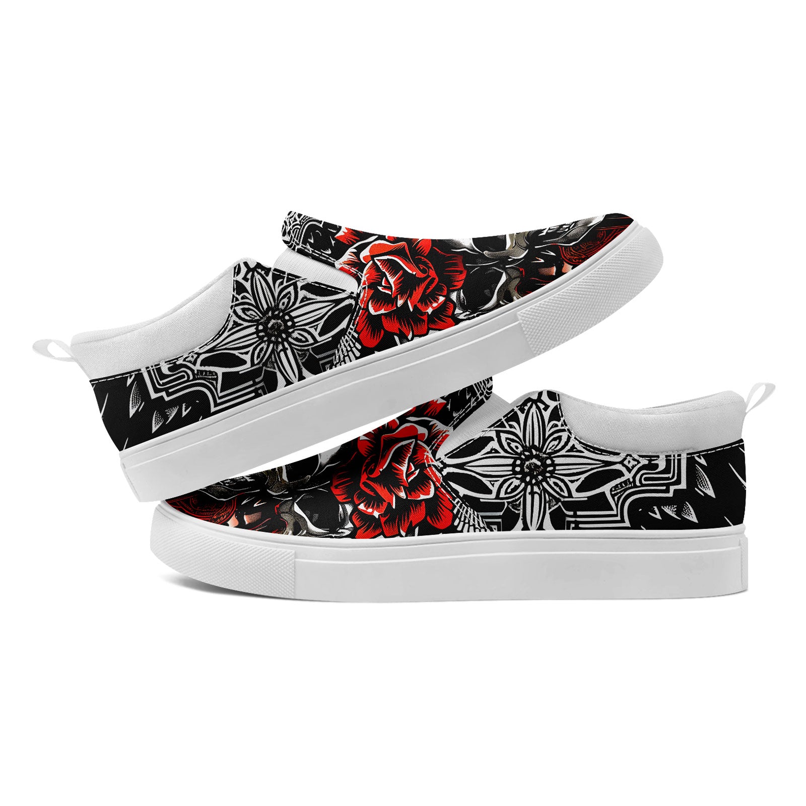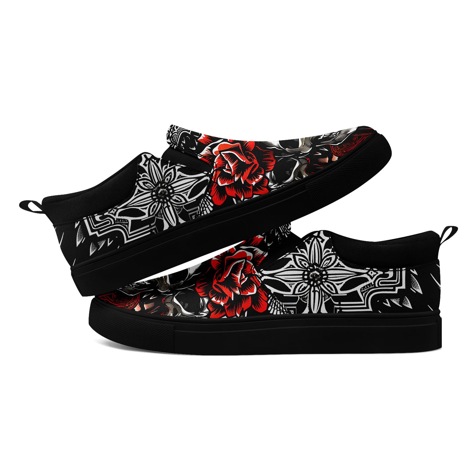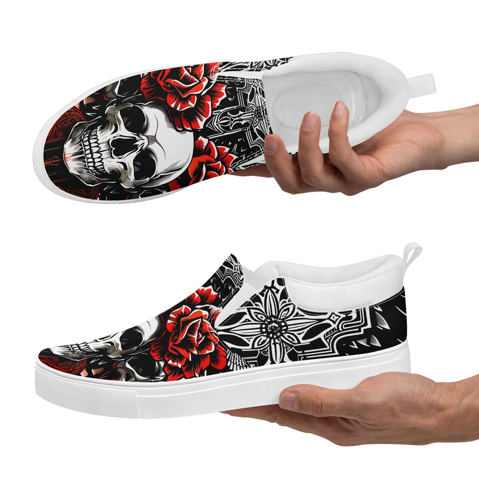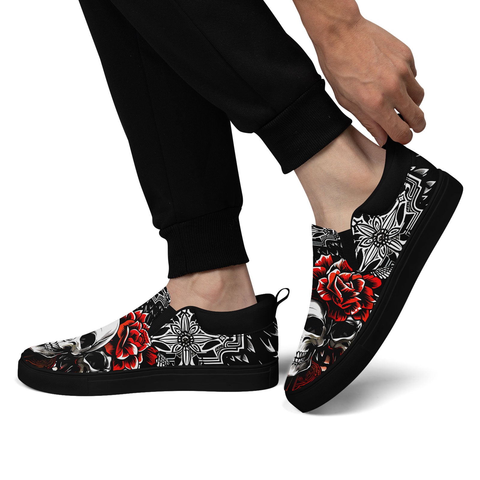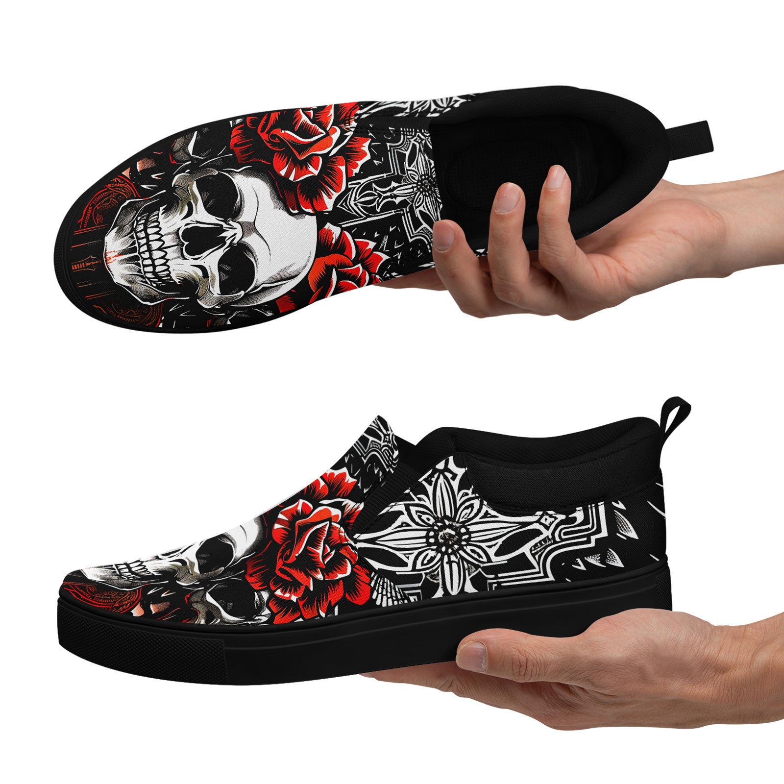 Skull Rose Slip-On Shoes | Wedding, Birthday, Valentine, Halloween Gift | Gothic Floral Sneakers | FN071-25023022-3