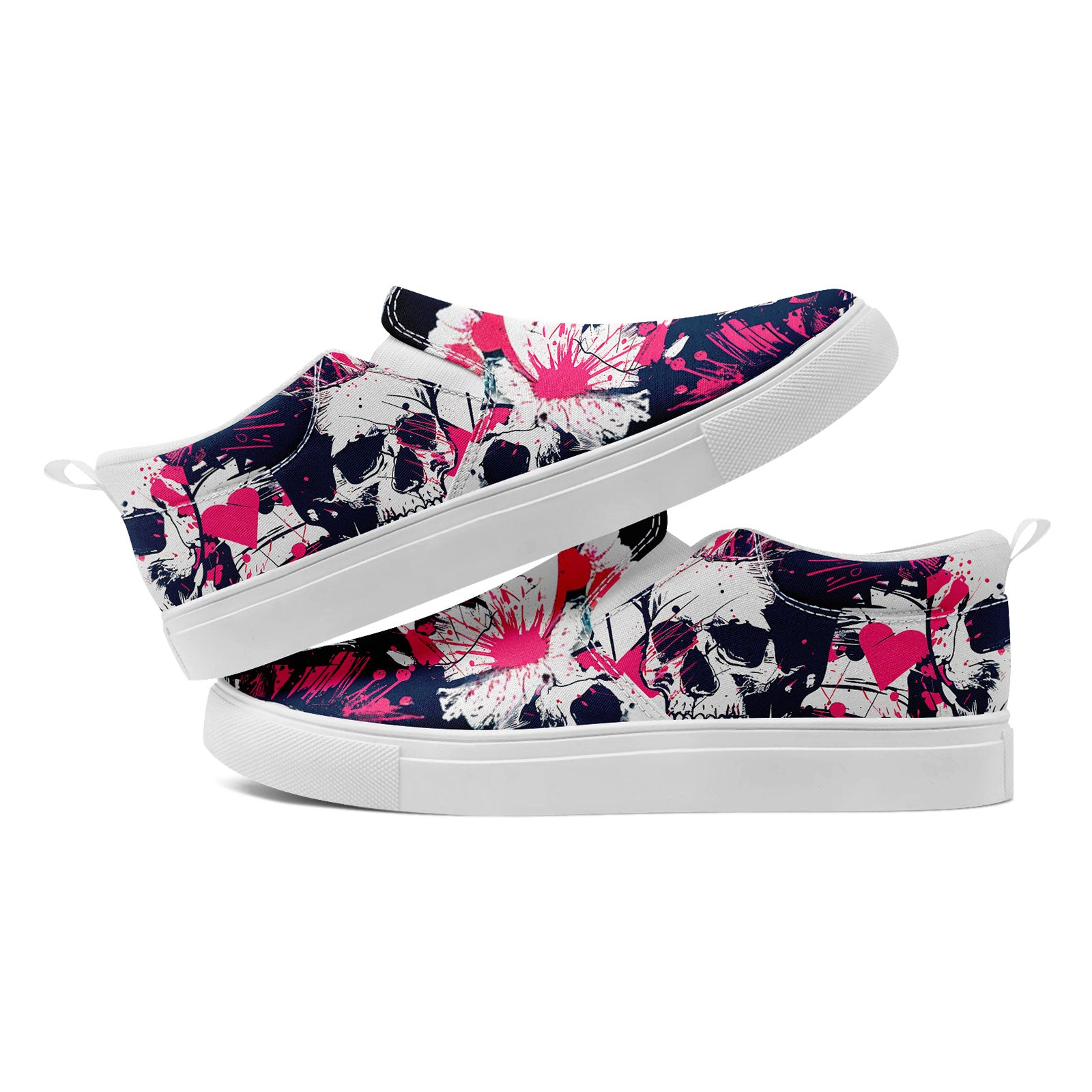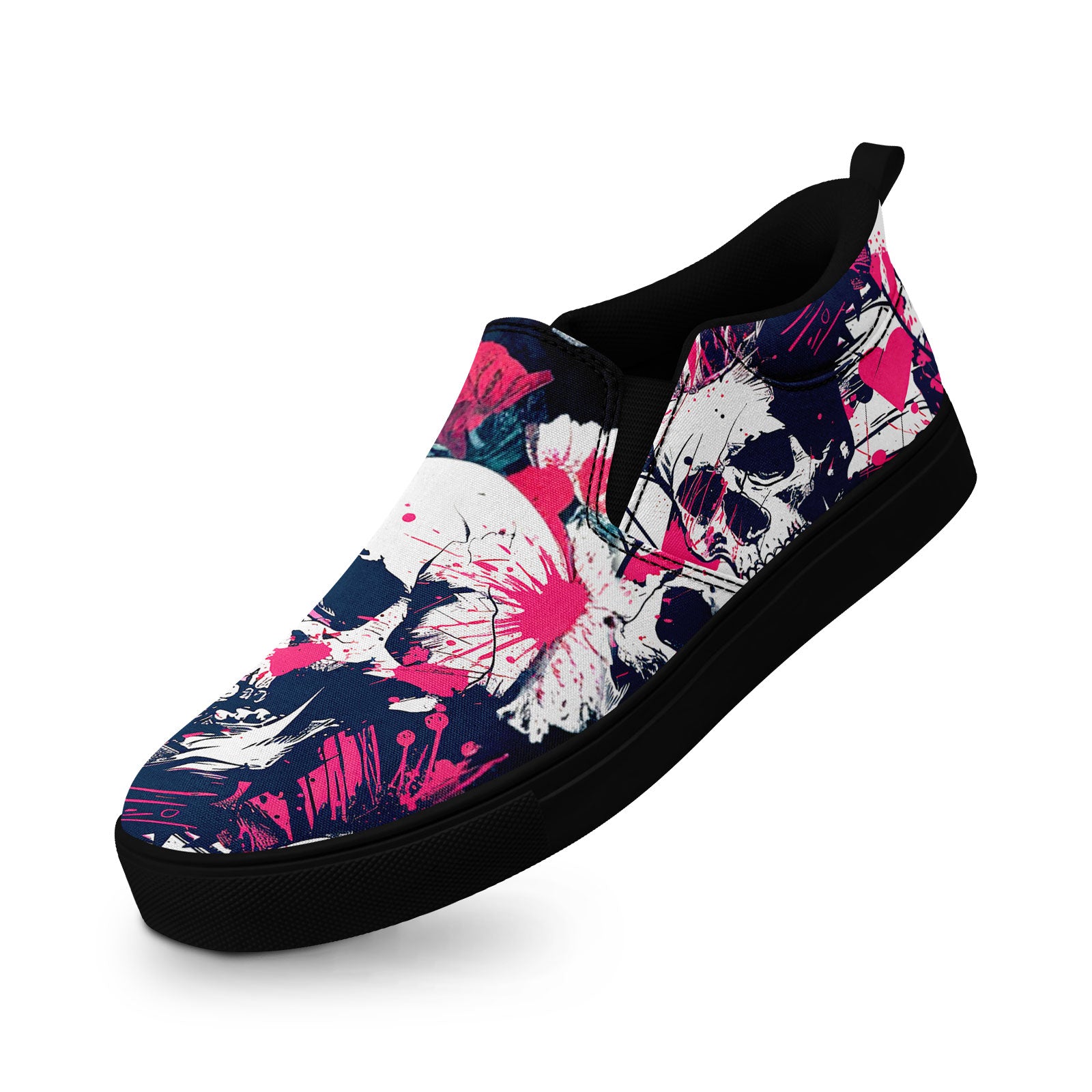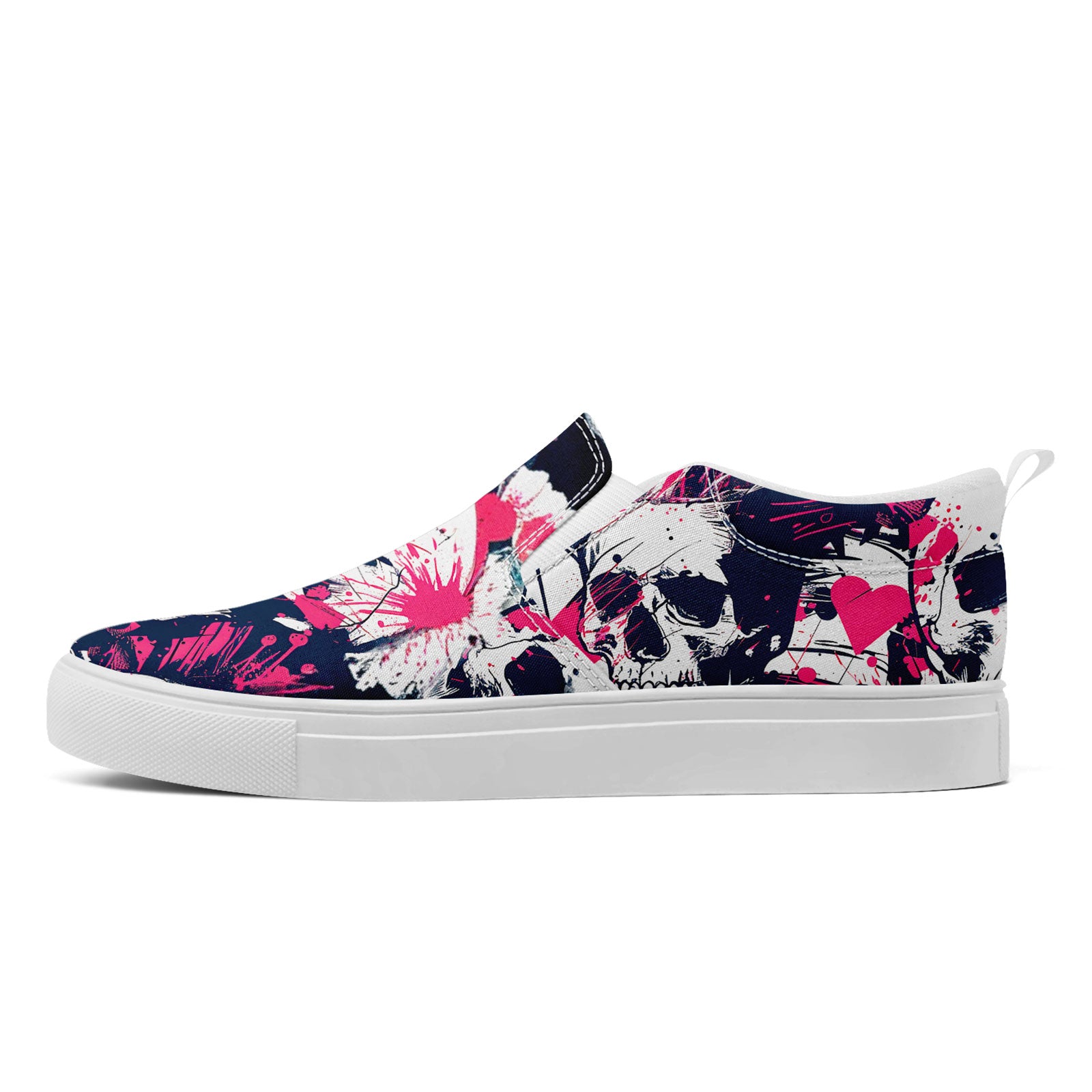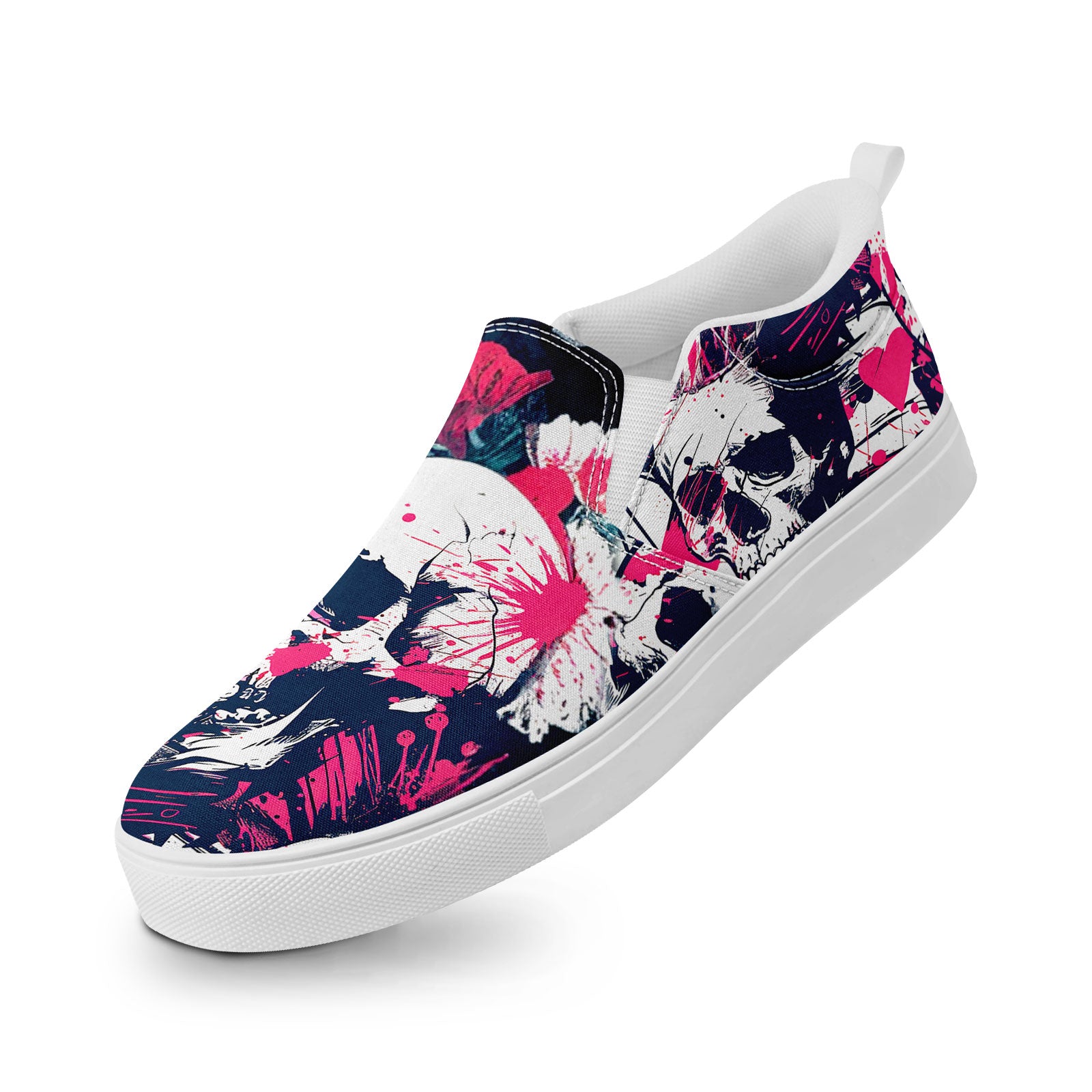 Floral Skull Slip-On Shoes | Pink & White Grunge Skull Art Canvas Sneakers