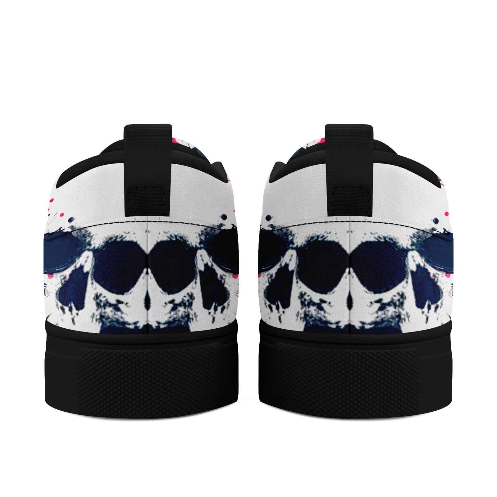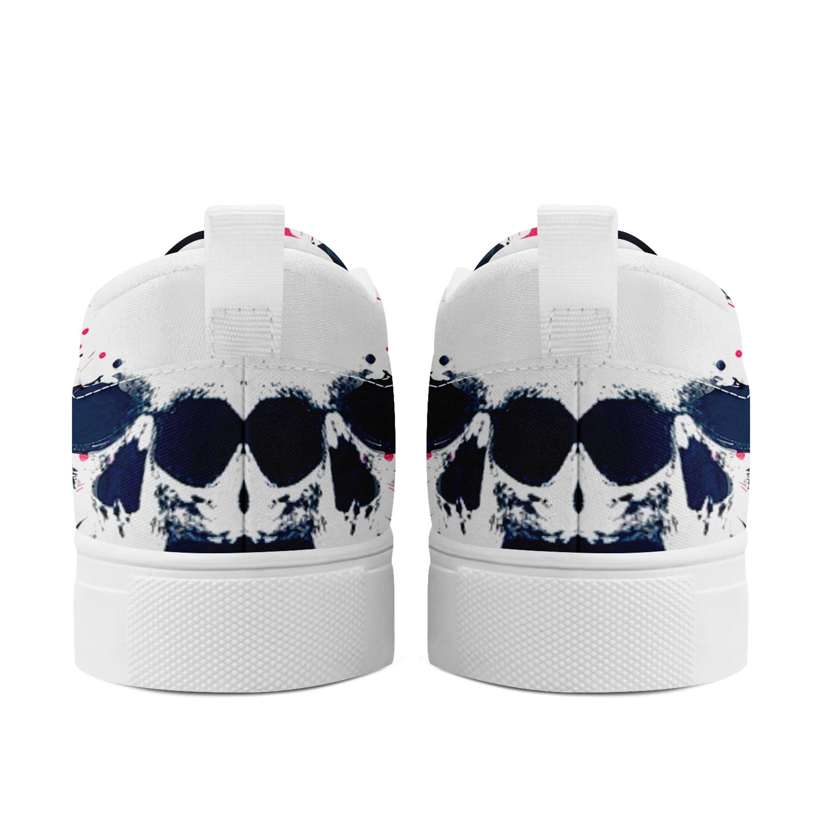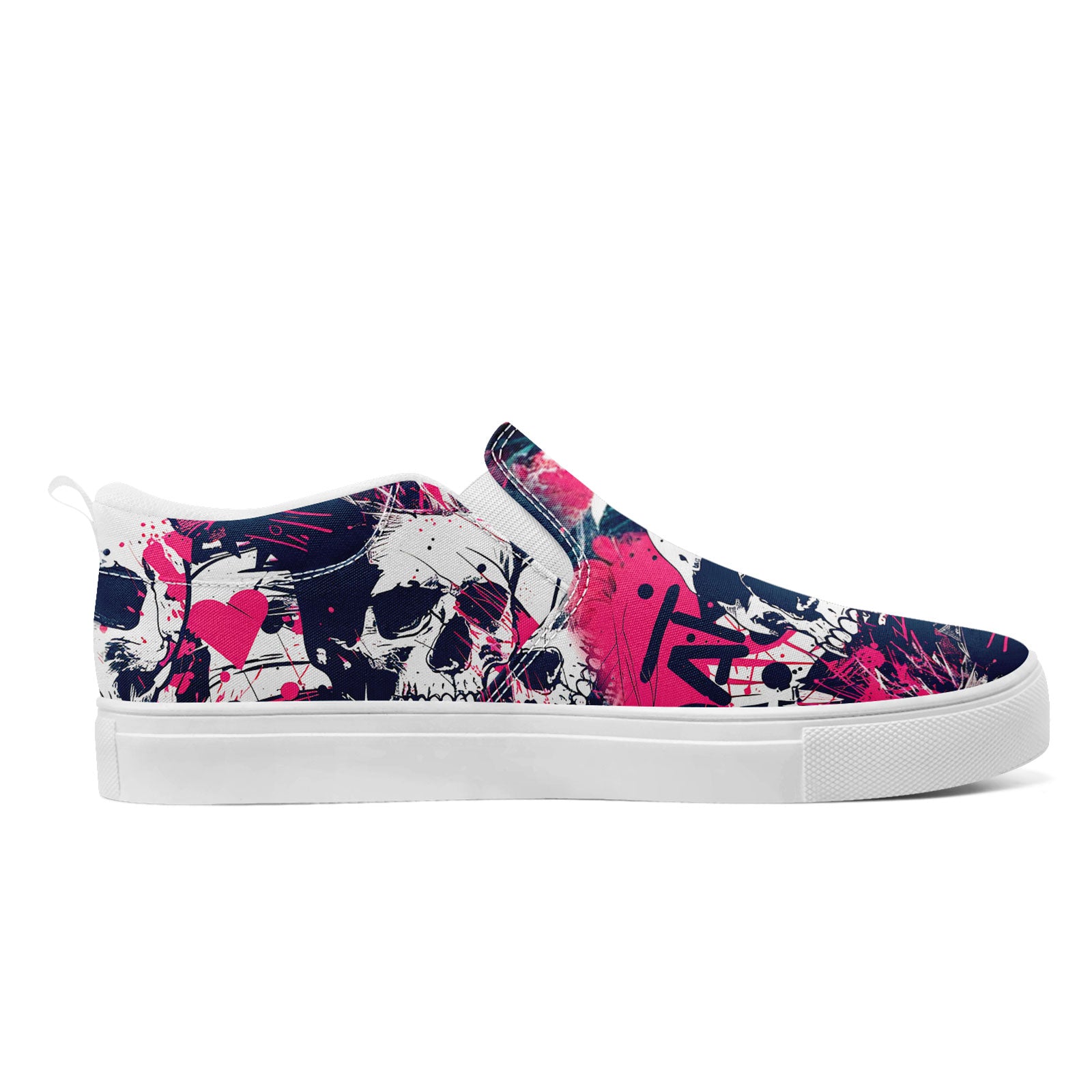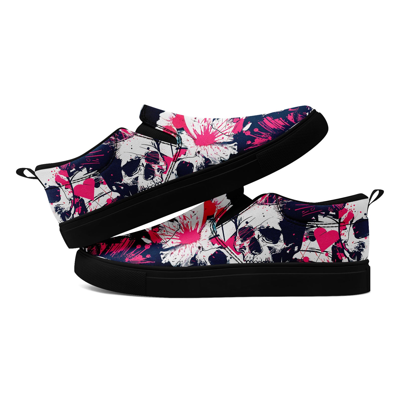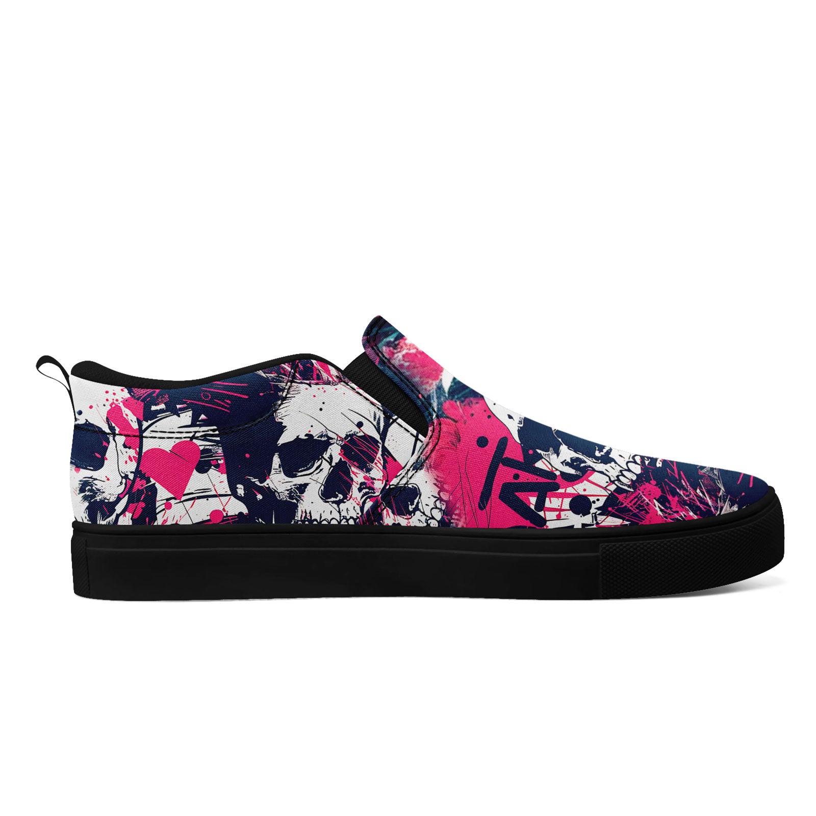 Floral Skull Slip-On Shoes | Pink & White Grunge Skull Art Canvas Sneakers