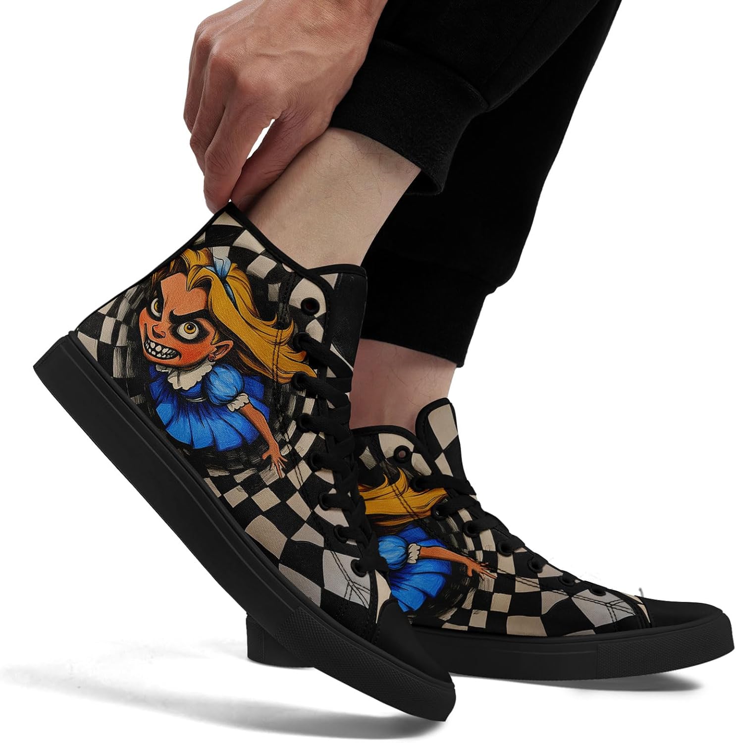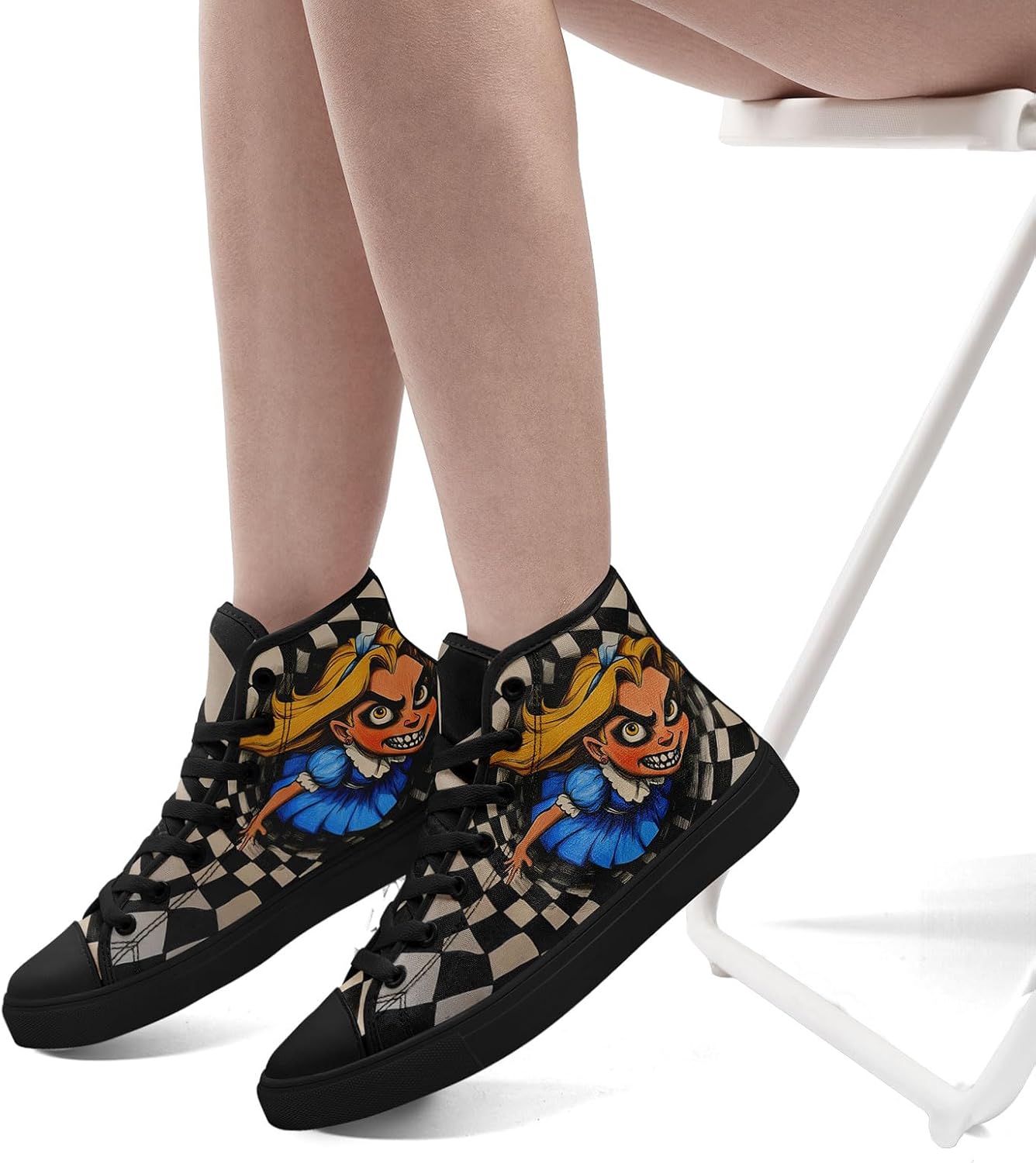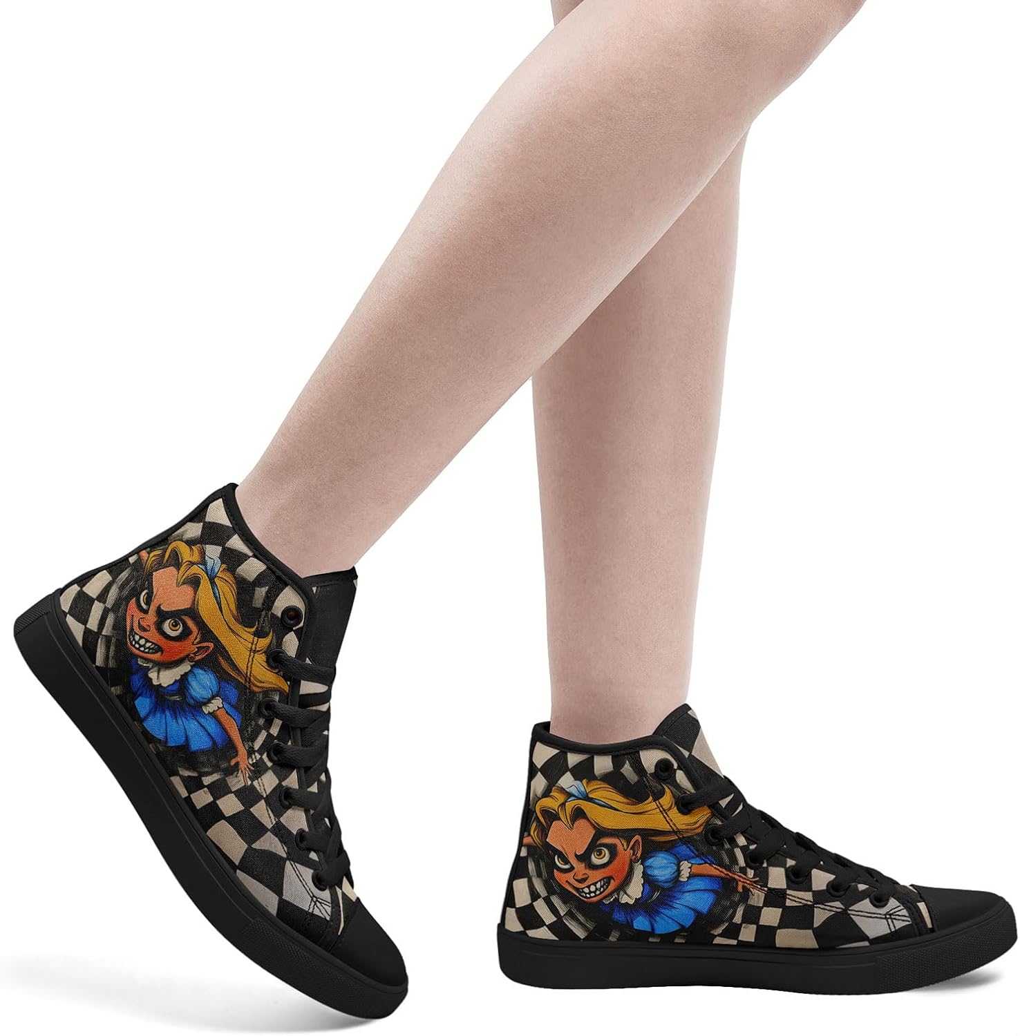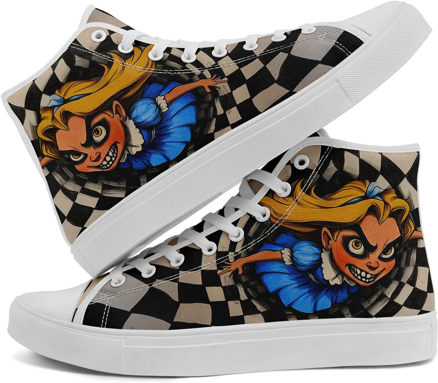 High Top Alice in Wonderland Sneakers | Horror Cartoon Print Casual Shoes for Women | Creepy Cute Halloween Cosplay Streetwear