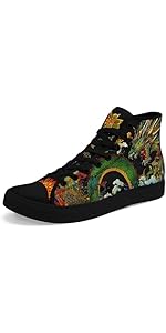 Dragon Print Canvas High-Top Shoes for Men, Anime Inspired Fashion Sneakers f...