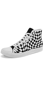Checkerboard Print Canvas High-Top Shoes for Men, Women's Fashion Sneakers fo...