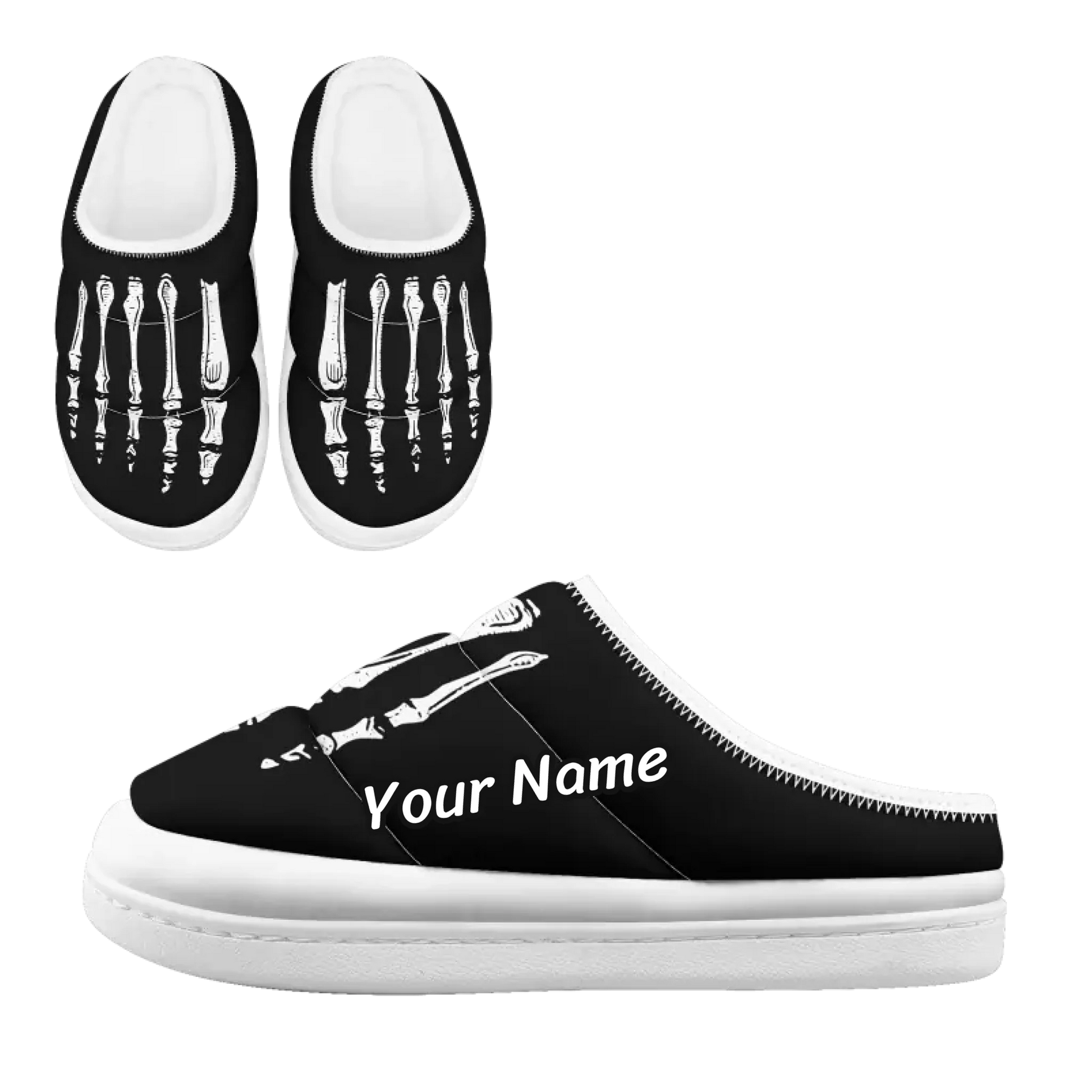 Gothic Skeleton Foot X-Ray Illusion Padded Slippers, Anatomic Bone Graphic Cozy Shoes FN057-25023184