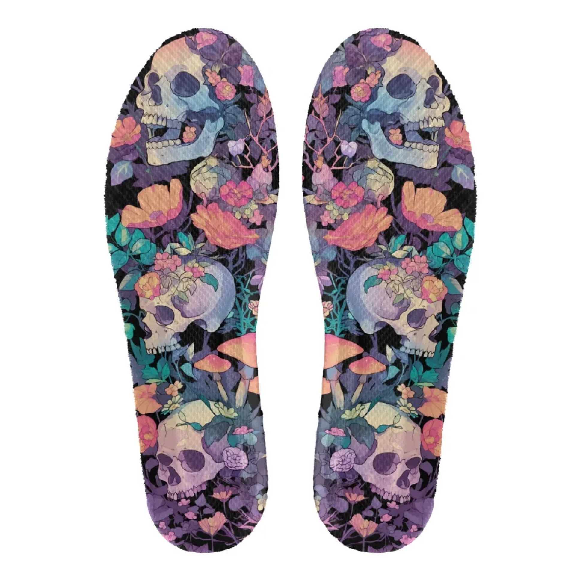 Gothic Skull & Mushroom Floral Shoe Insoles, Dark Botanical Cottagegore Art Inserts XD008-25028149