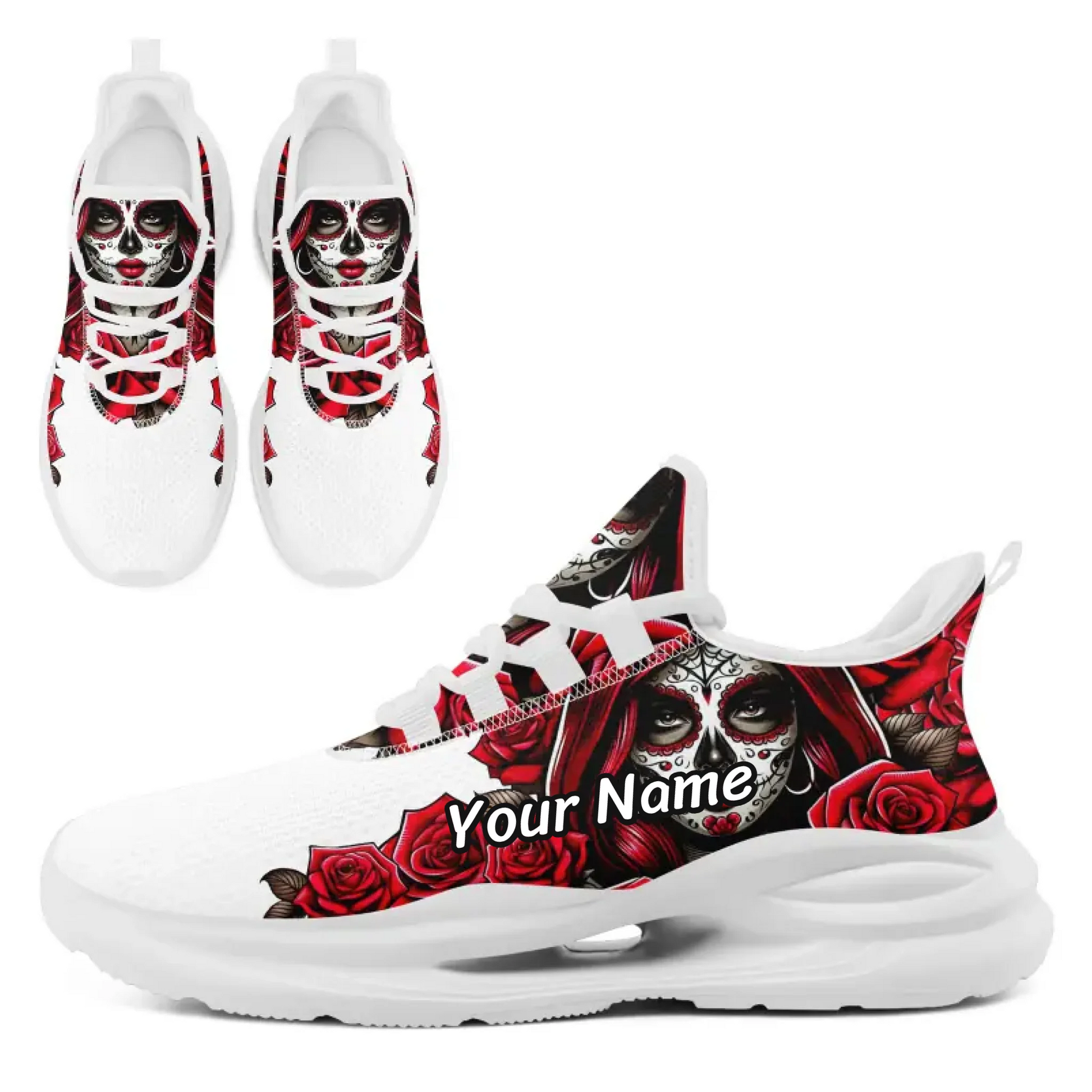 Gothic Sugar Skull & Roses Art Print Athletic Sneakers, Day of the Dead Fashion Shoes FN079-25020176