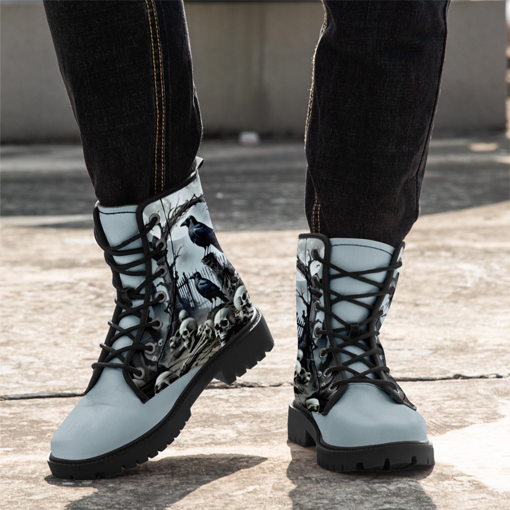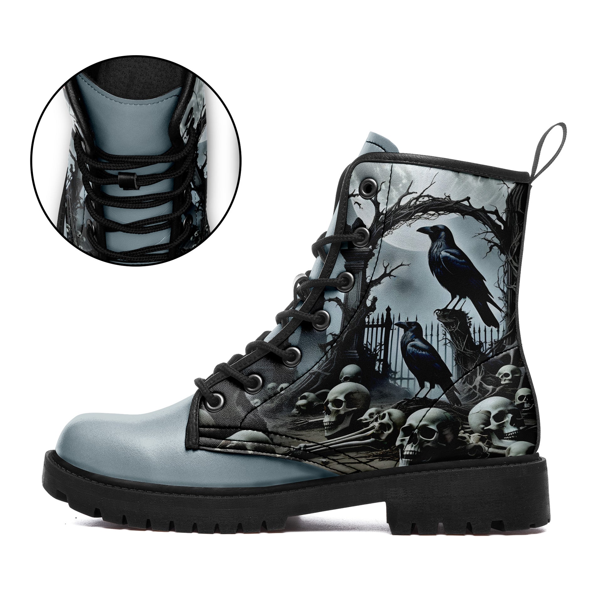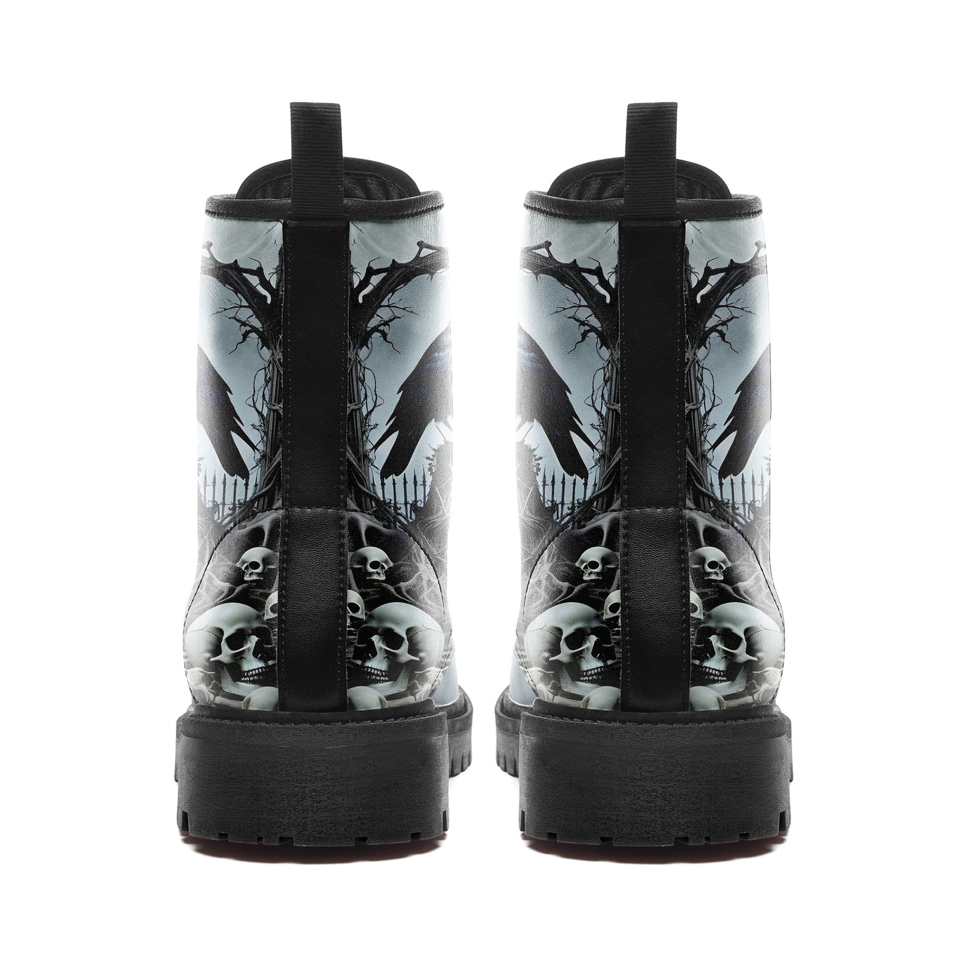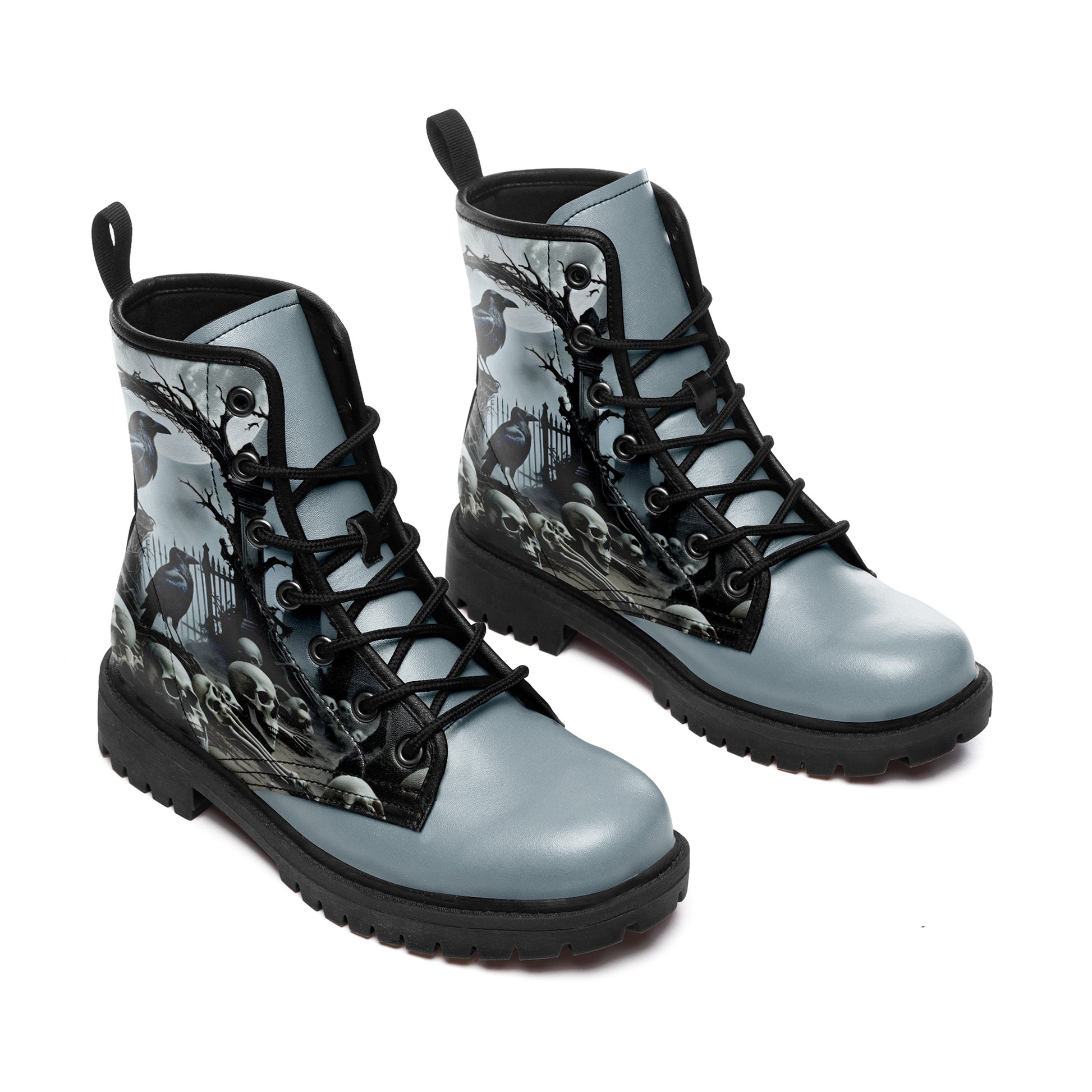 Haunted Graveyard Raven & Skull Pile Combat Boots - Moonlight Cemetery Shoes BOOTS-25027041-4