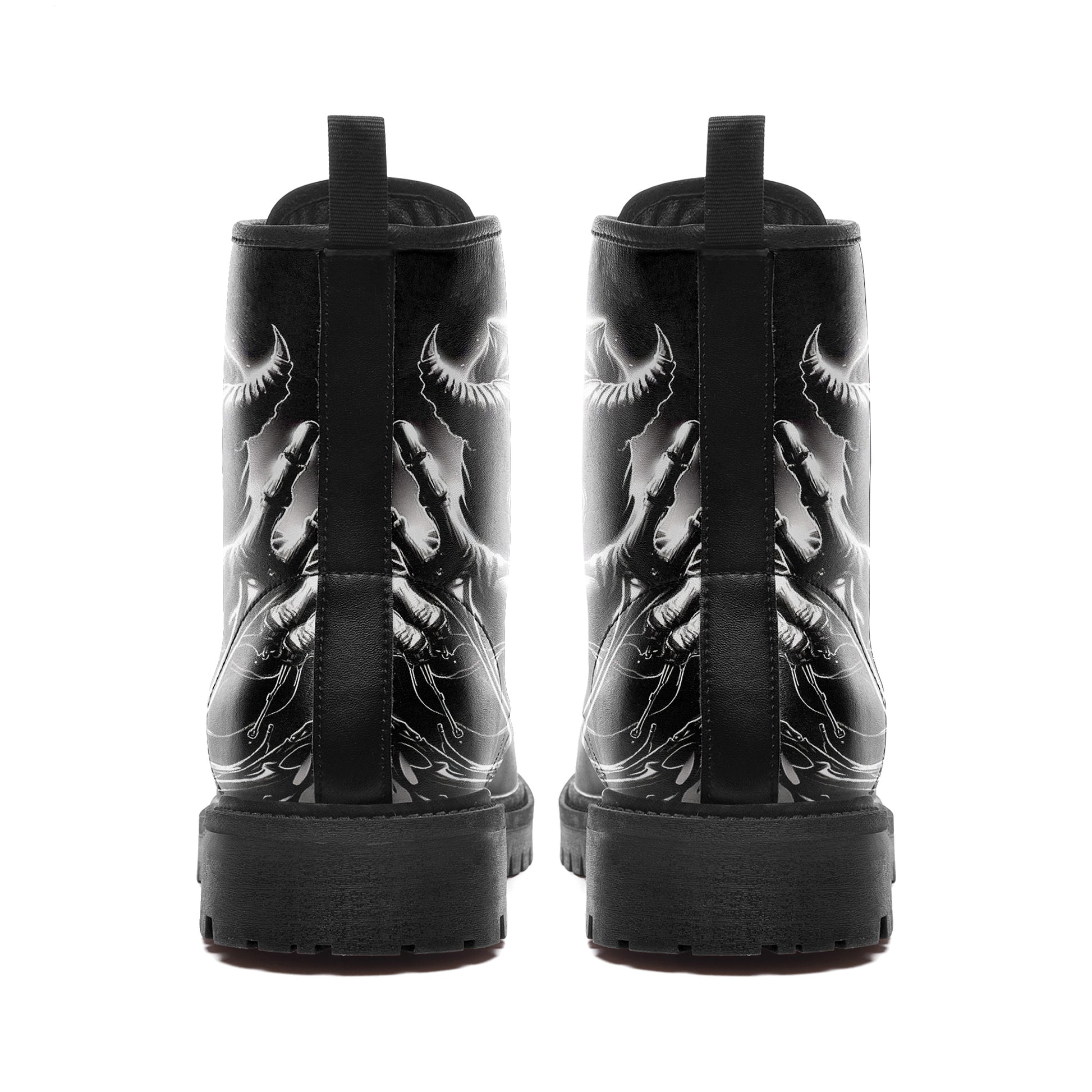 With glowing orange eyes piercing through the monochrome darkness, this design is pure heavy metal energy. Whether you're storming the front lines of a concert or ruling your D&D campaign, these boots are your armor.