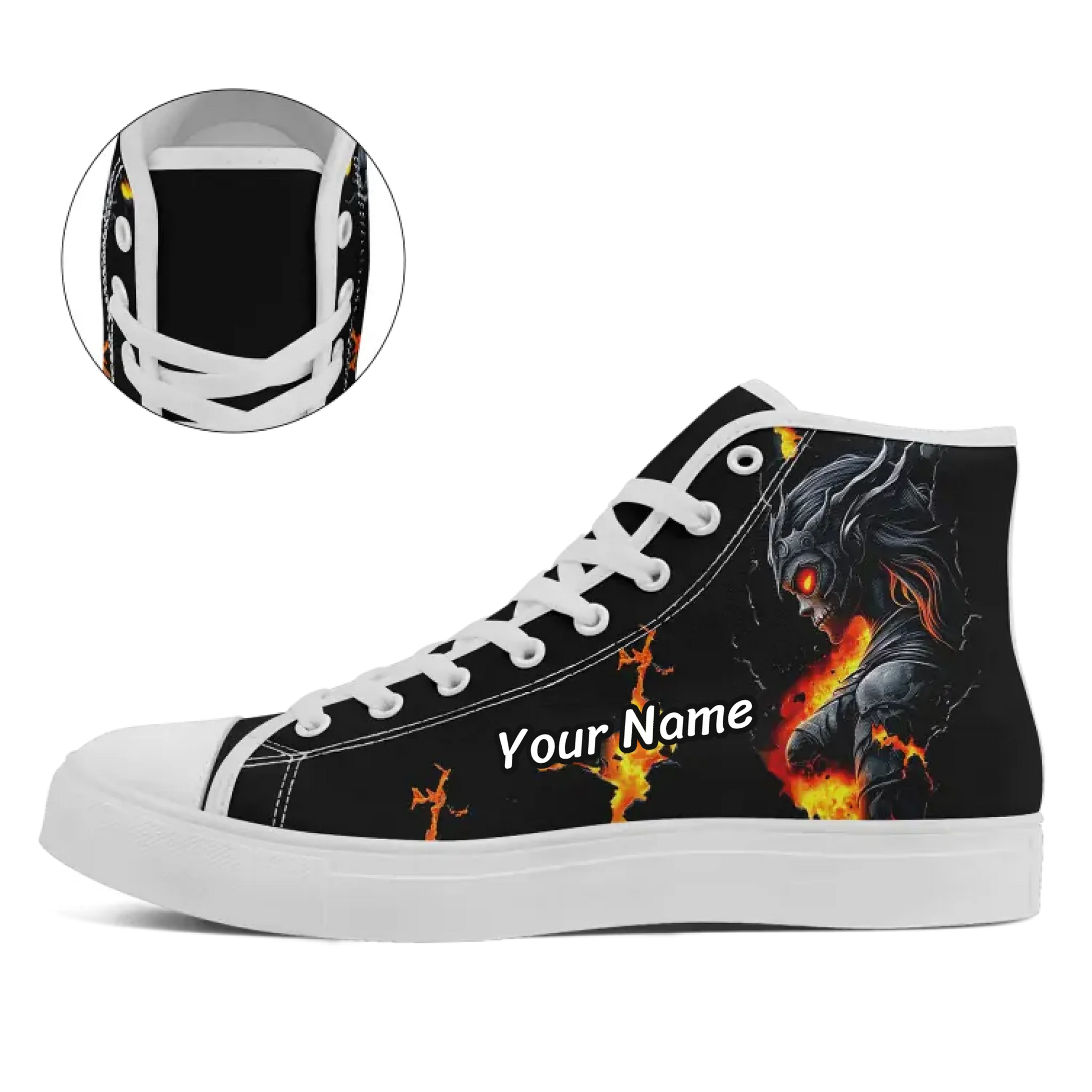 Forge your path in fire with these infernal demon knight high-tops.