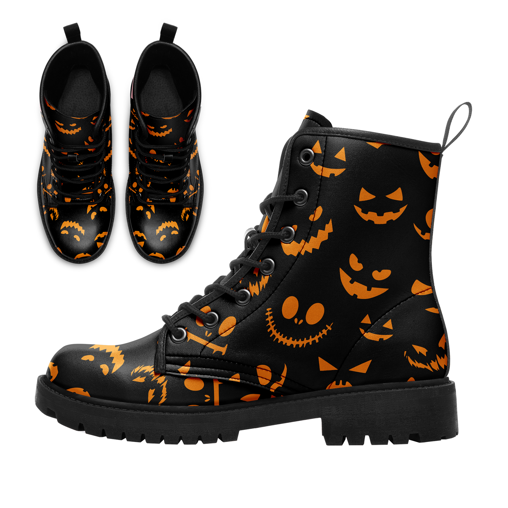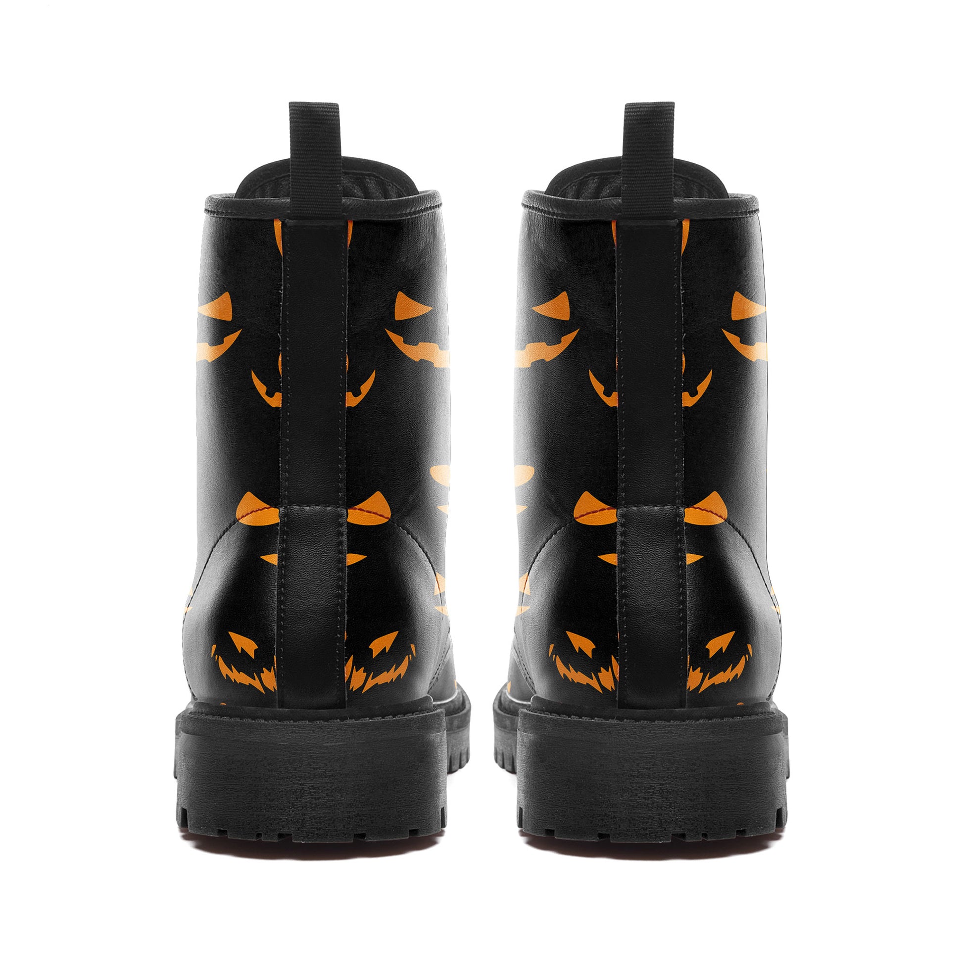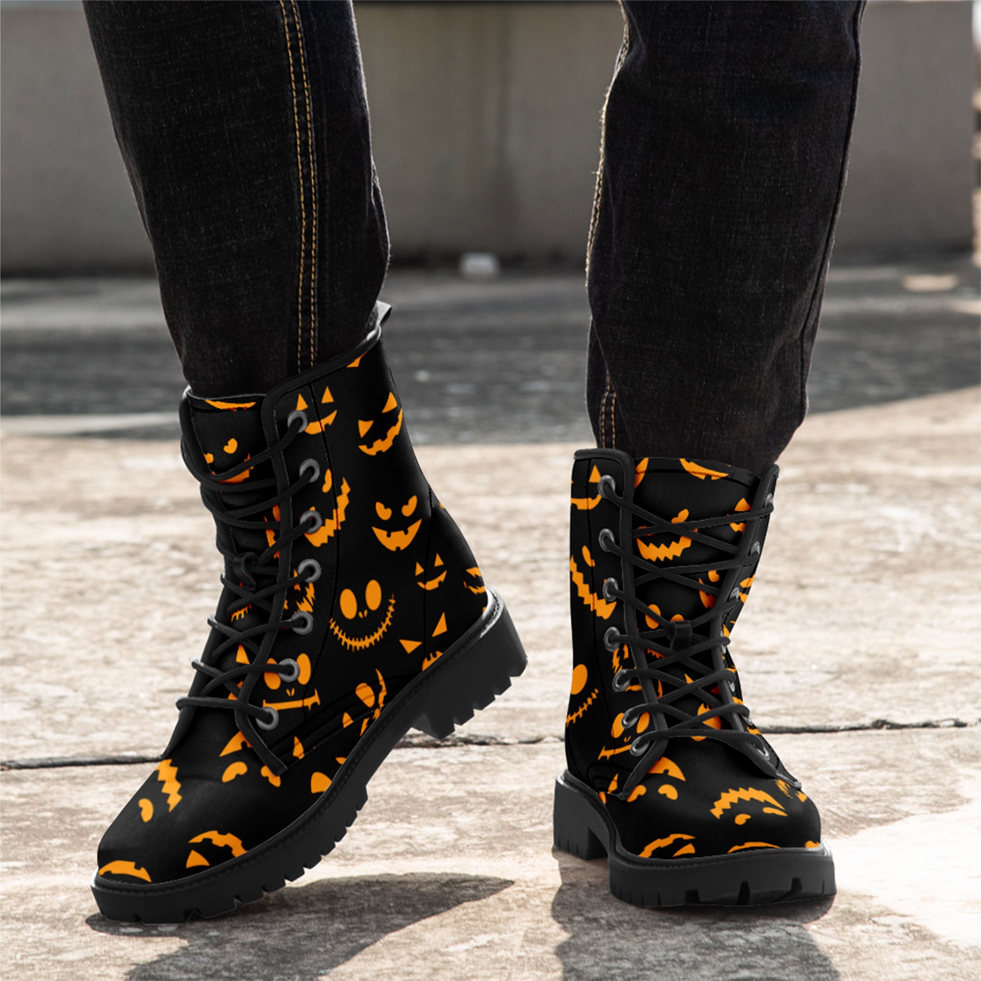 Jack-o'-Lantern Faces Pattern Combat Boots - Classic Halloween Print Shoes BOOTS-24025002-7