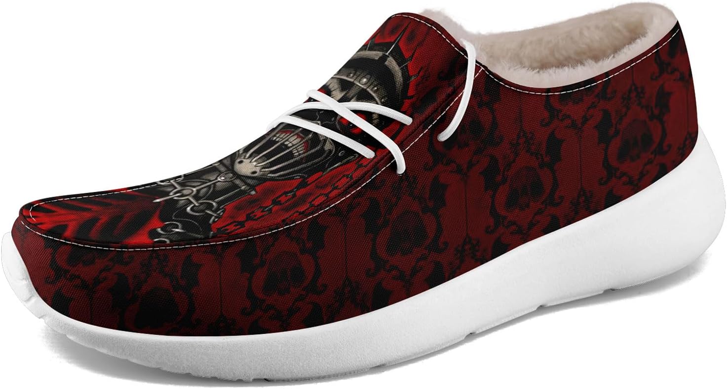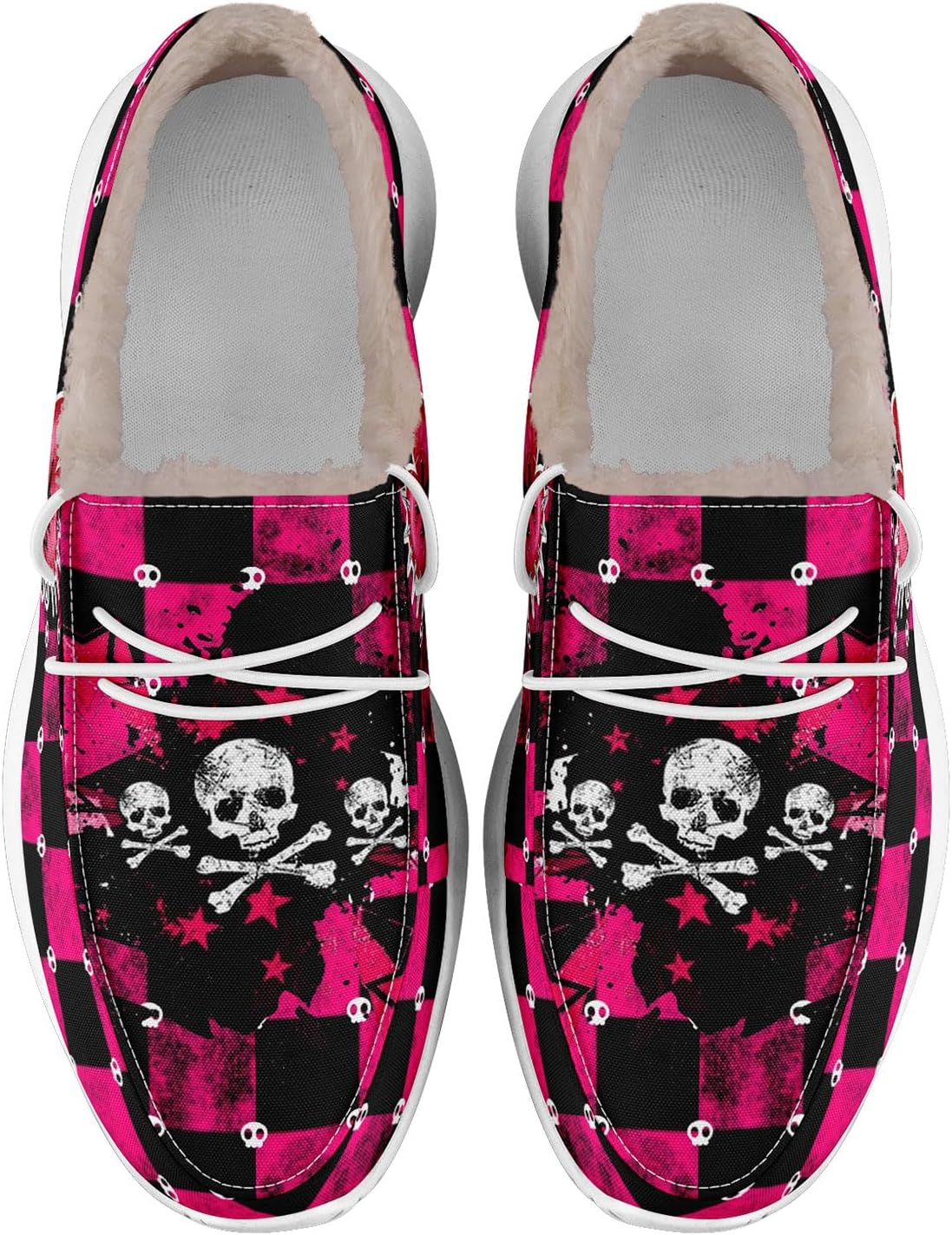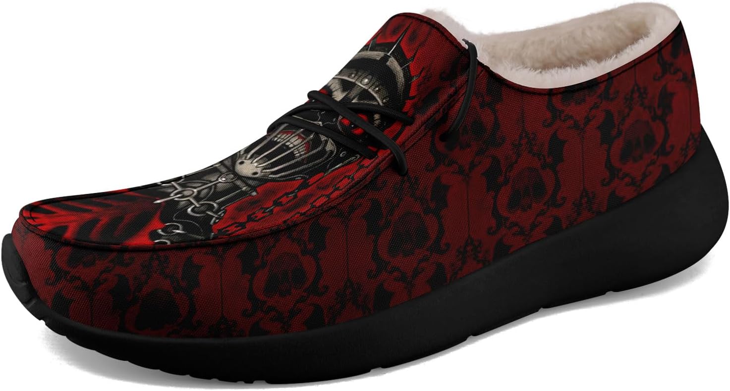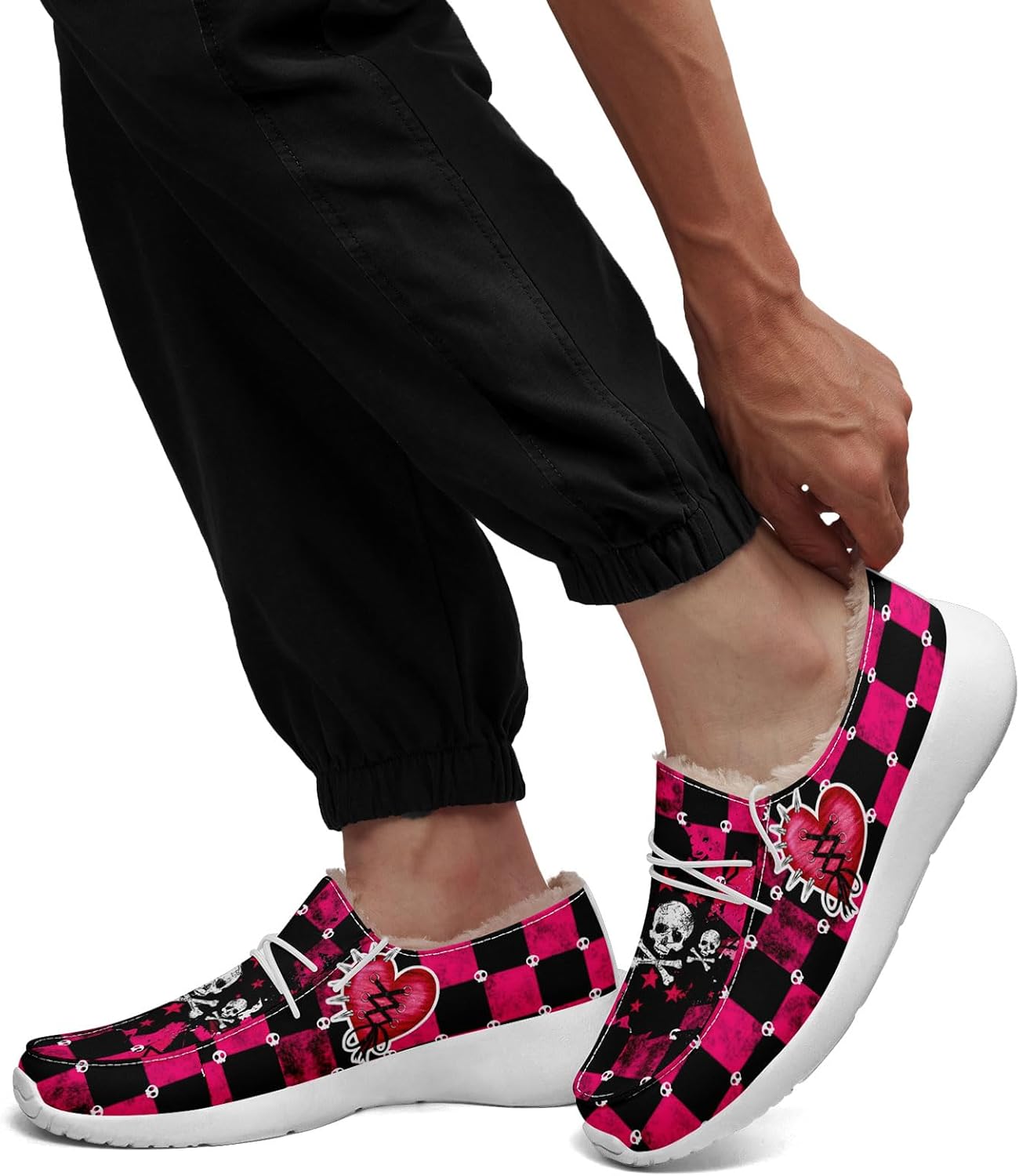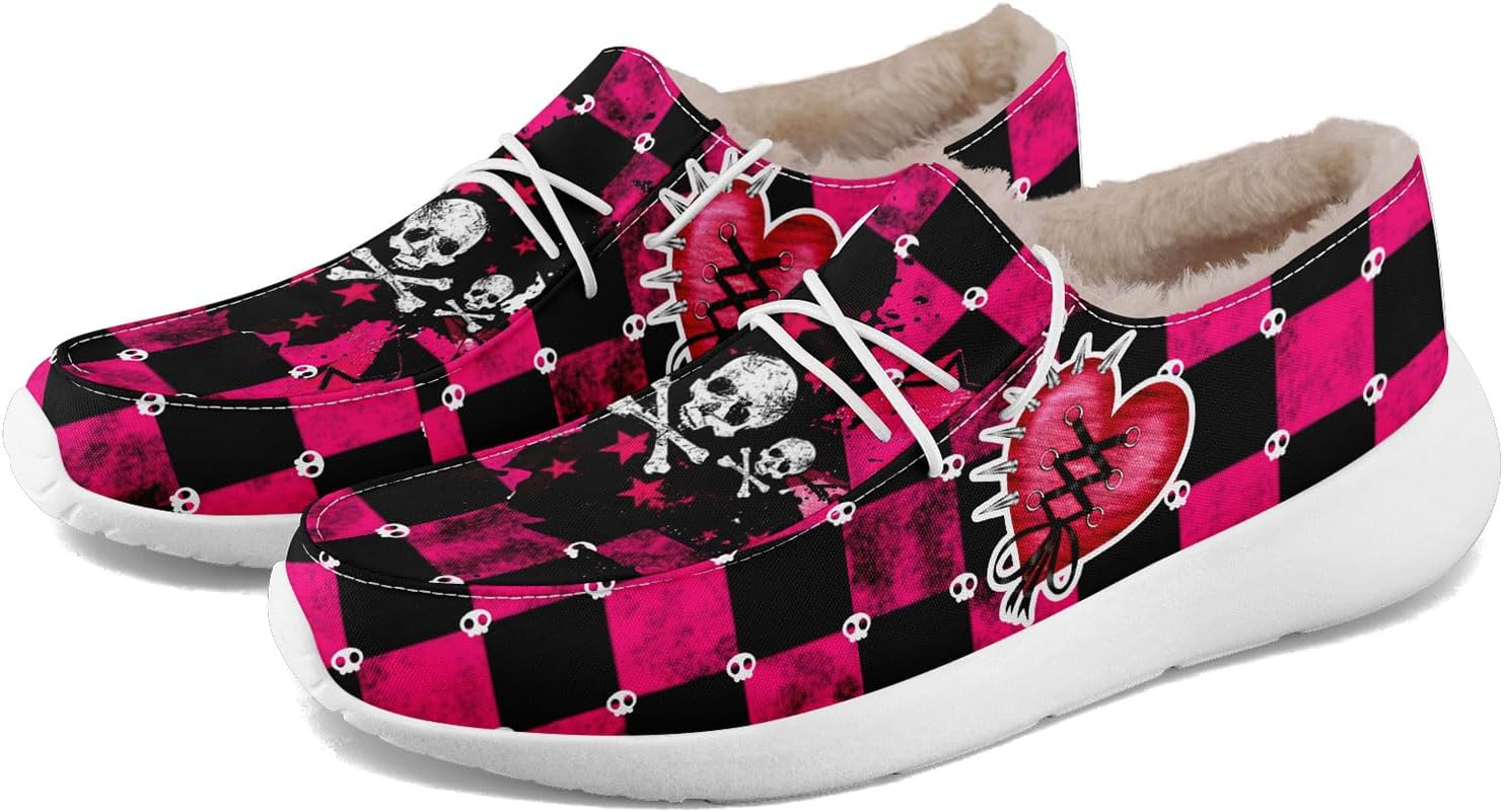 Men's Gothic Casual Loafers, Skull Canvas Fur Lined Slip On Shoes Moccasins Confortable Lace Up Warm Winter Shoes for Women