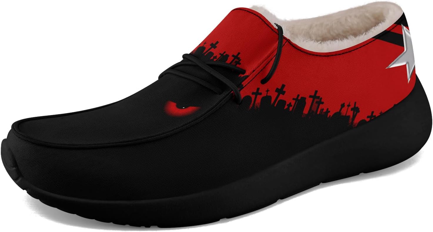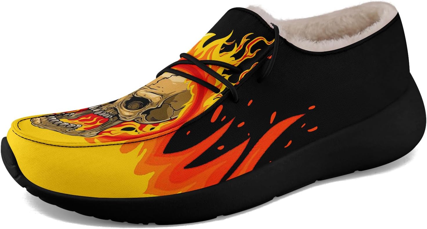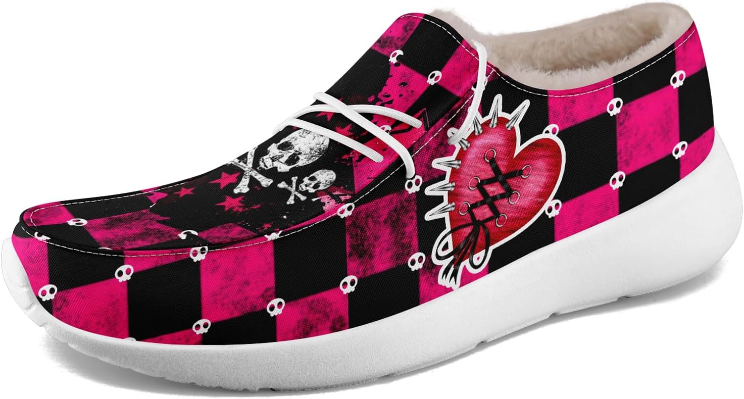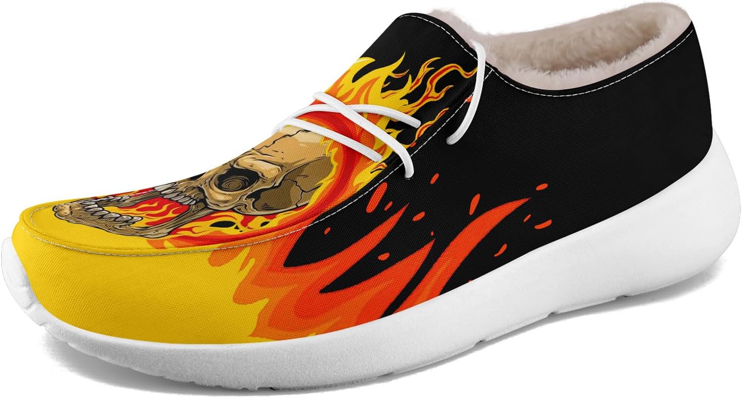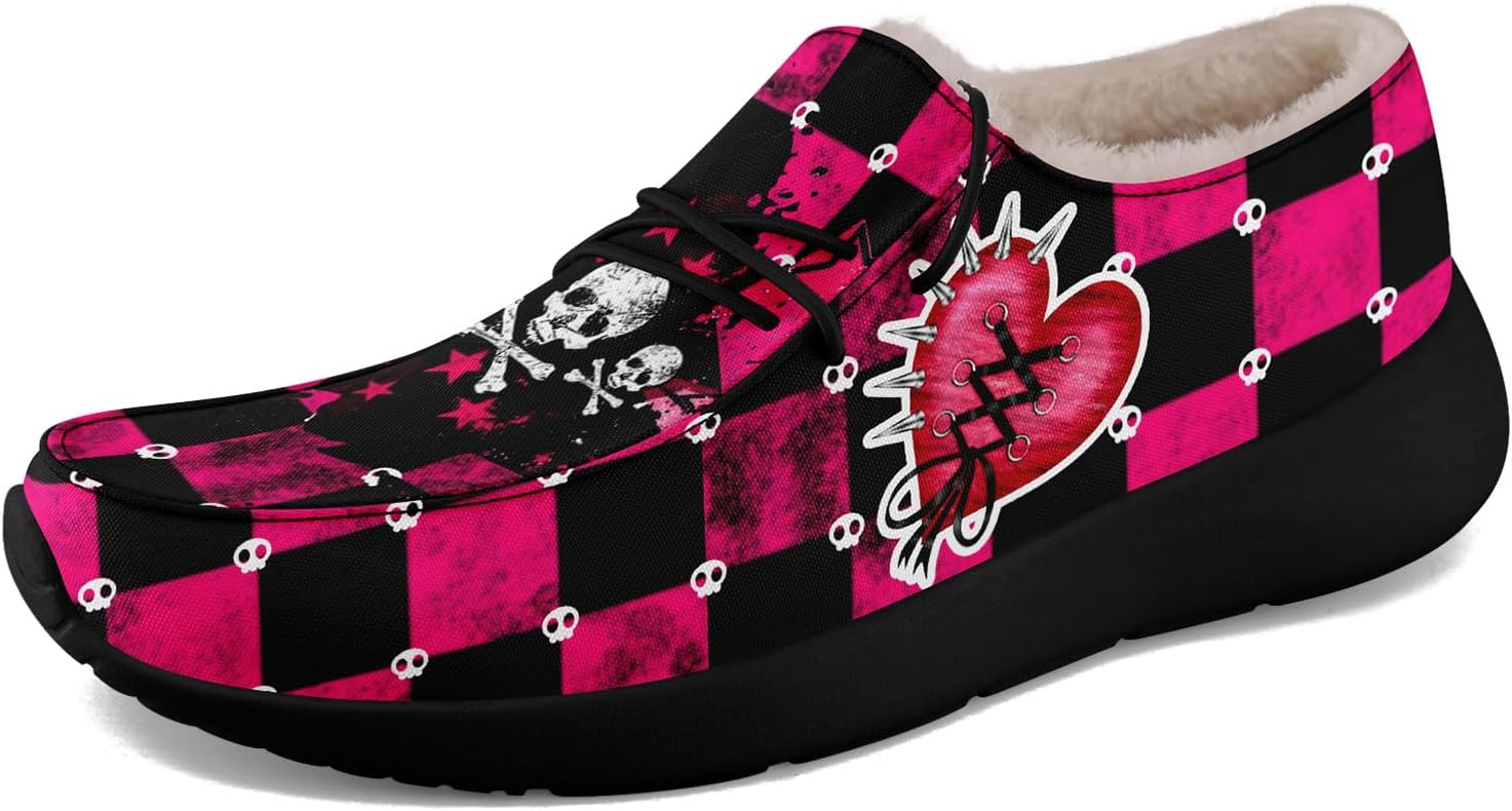 Men's Gothic Casual Loafers, Skull Canvas Fur Lined Slip On Shoes Moccasins Confortable Lace Up Warm Winter Shoes for Women
