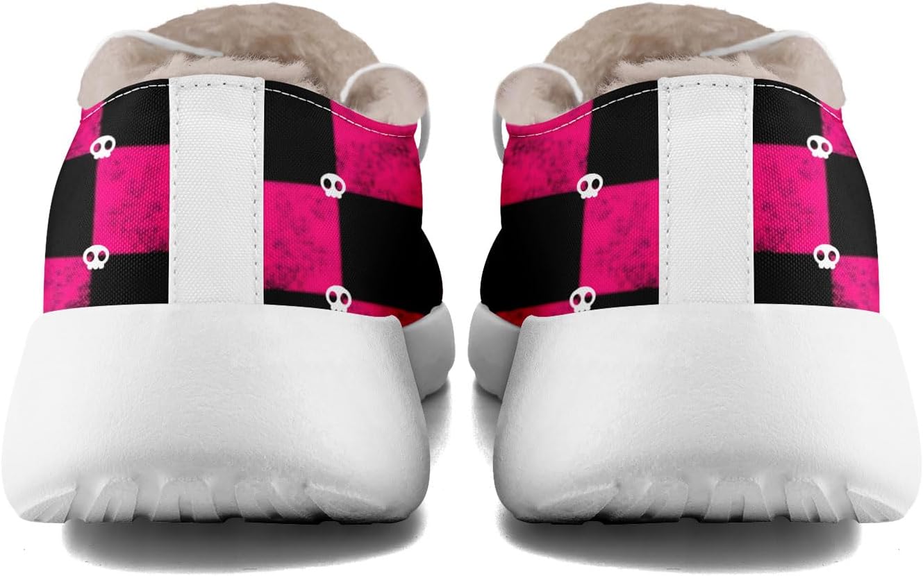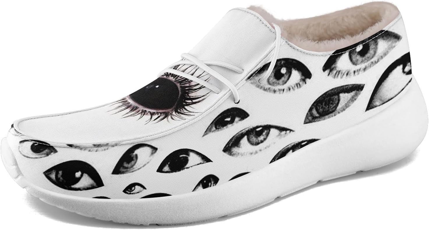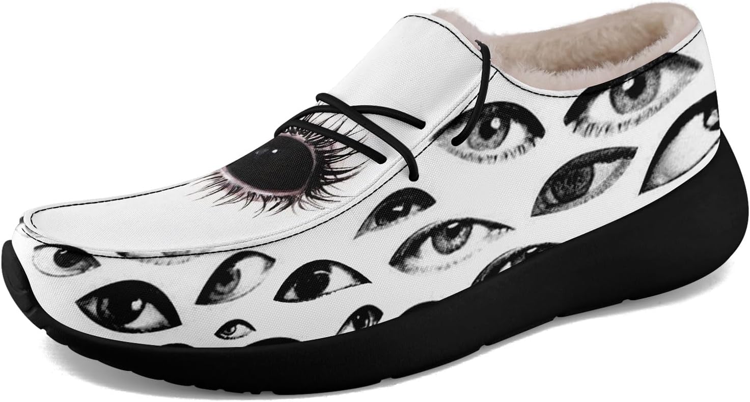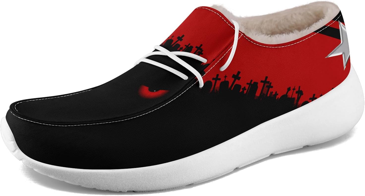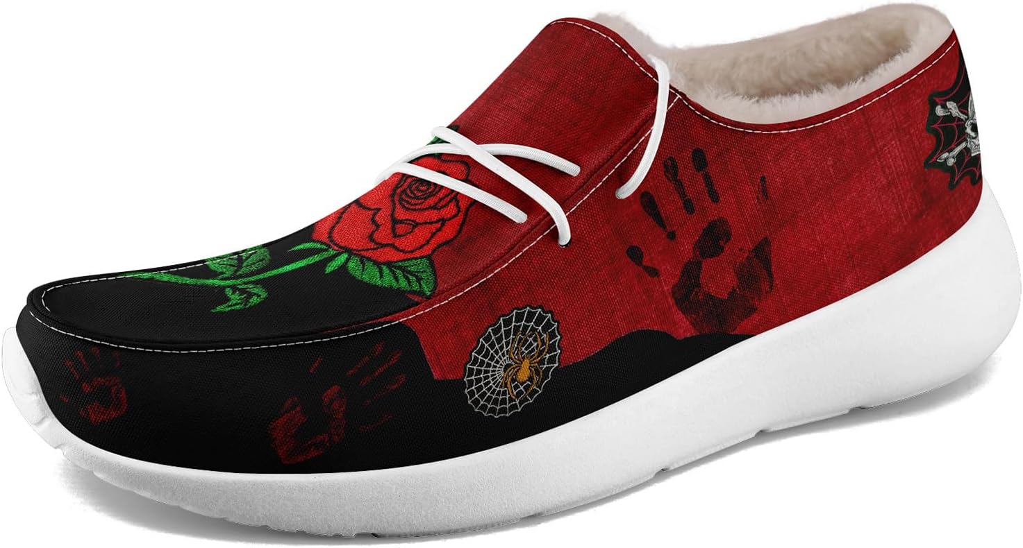 Men's Gothic Casual Loafers, Skull Canvas Fur Lined Slip On Shoes Moccasins Confortable Lace Up Warm Winter Shoes for Women