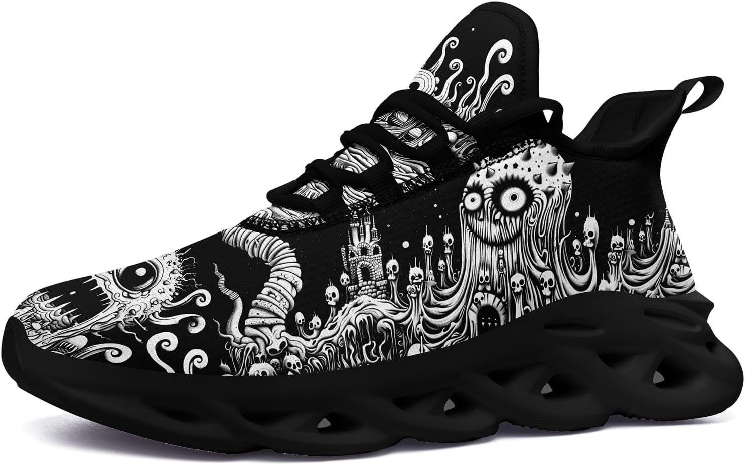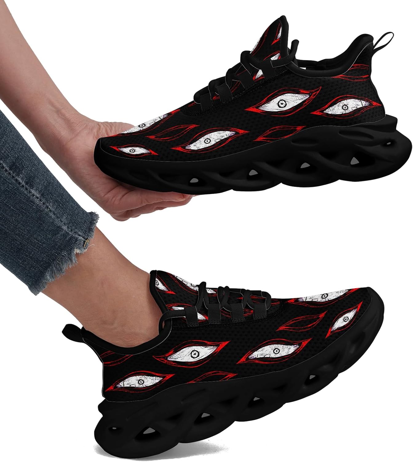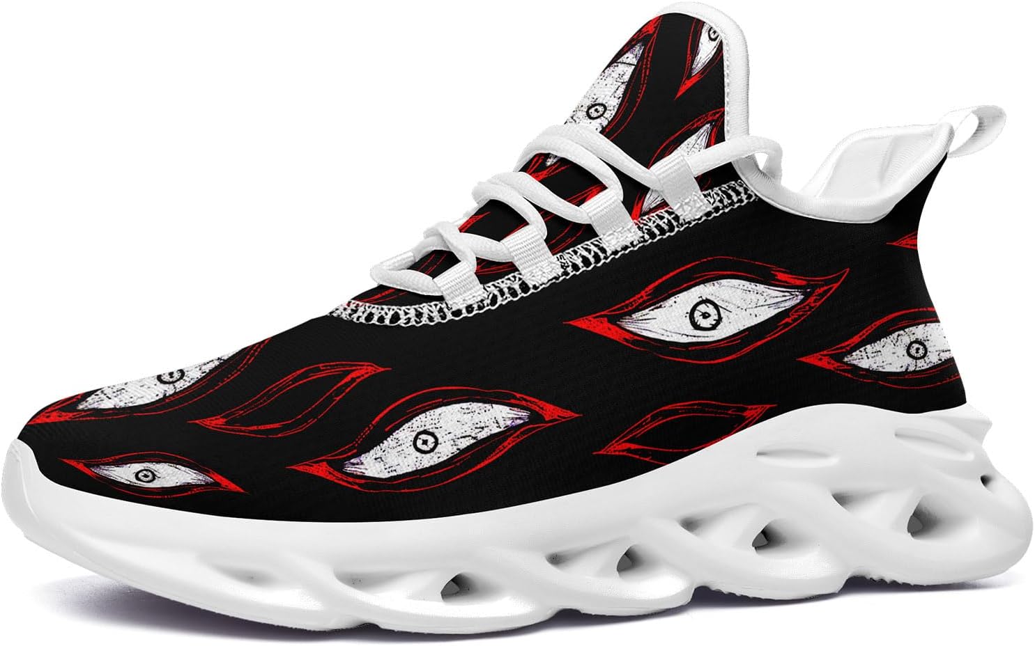 Men's Skull Gothic Eye Running Shoes Lightweight Breathable Sport Shoes for Women Cushion Slip On Walking Sneaker