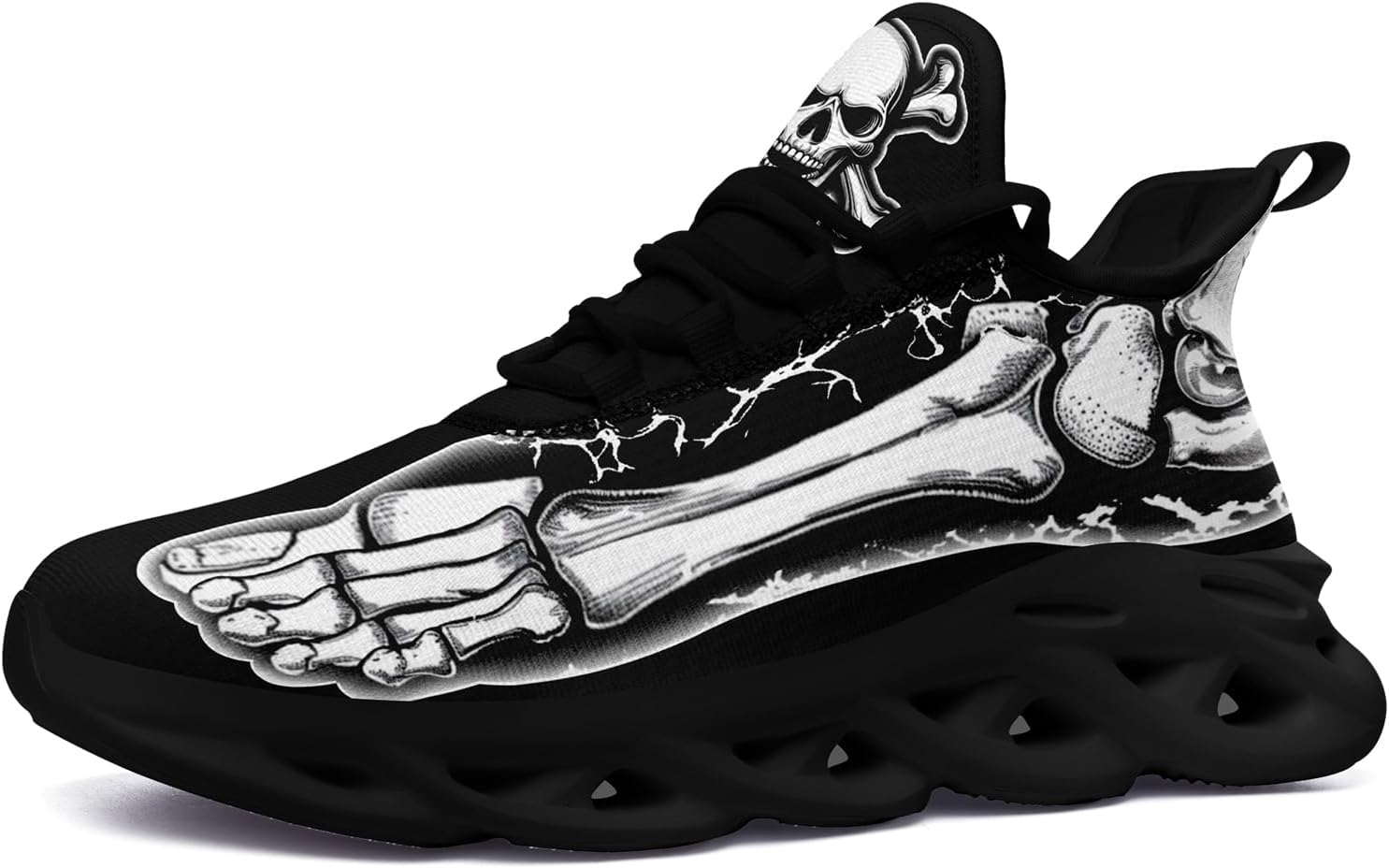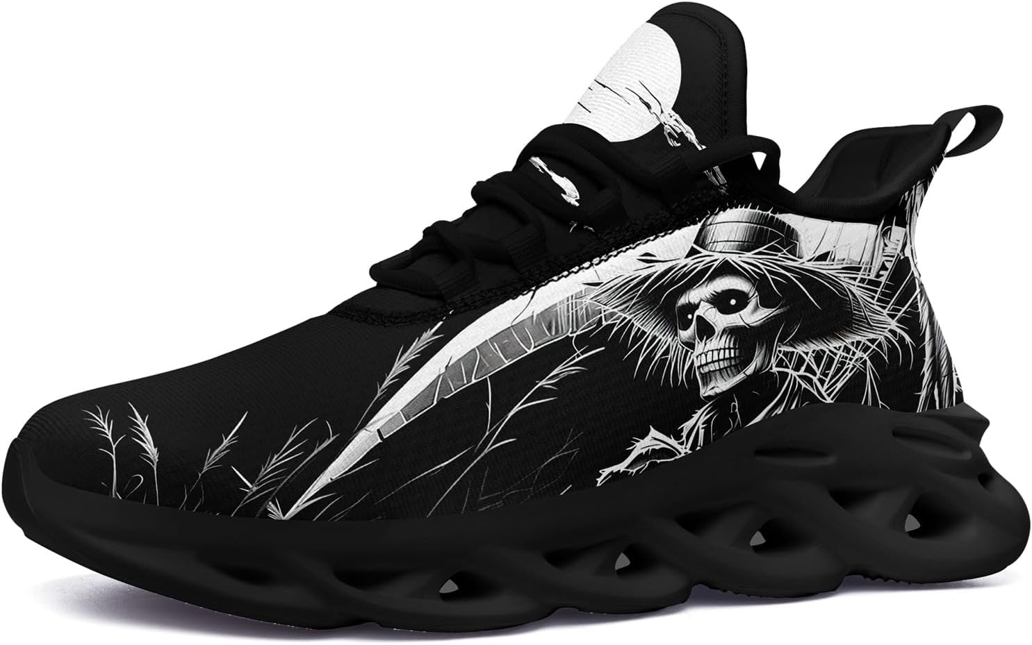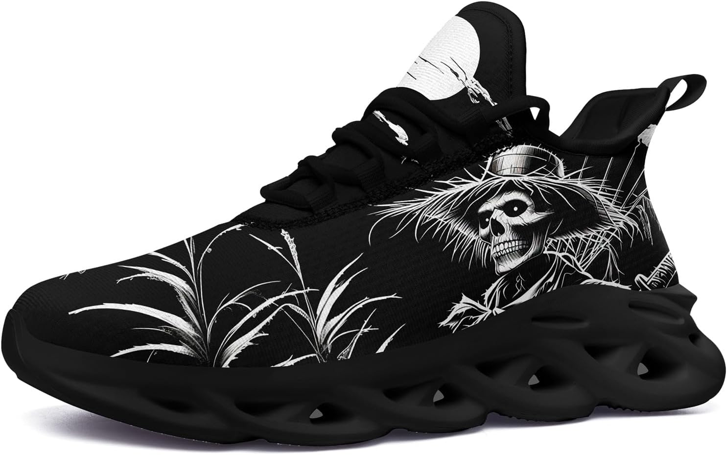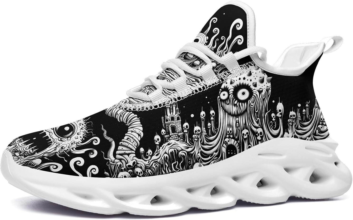 Men's Skull Gothic Eye Running Shoes Lightweight Breathable Sport Shoes for Women Cushion Slip On Walking Sneaker