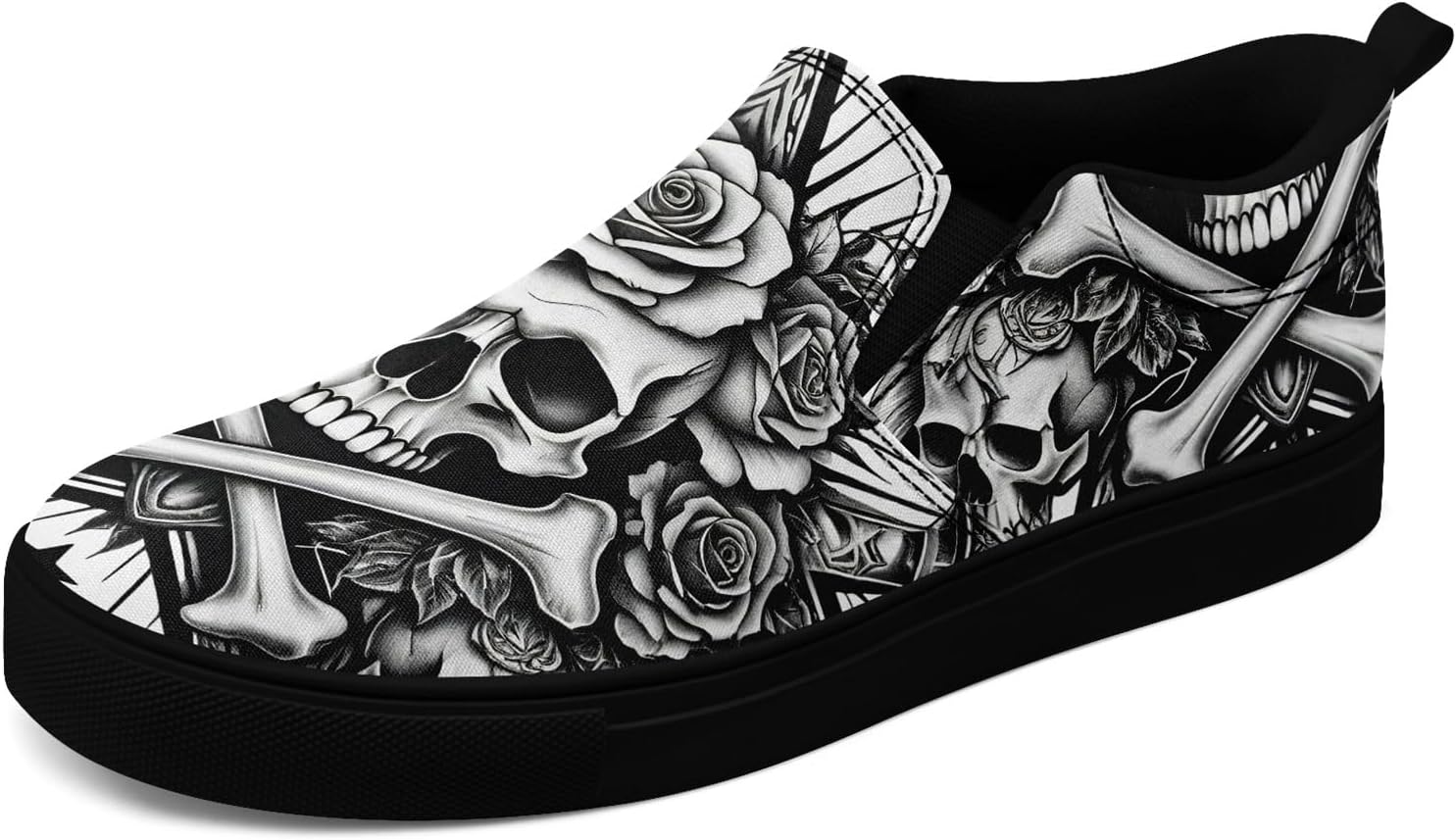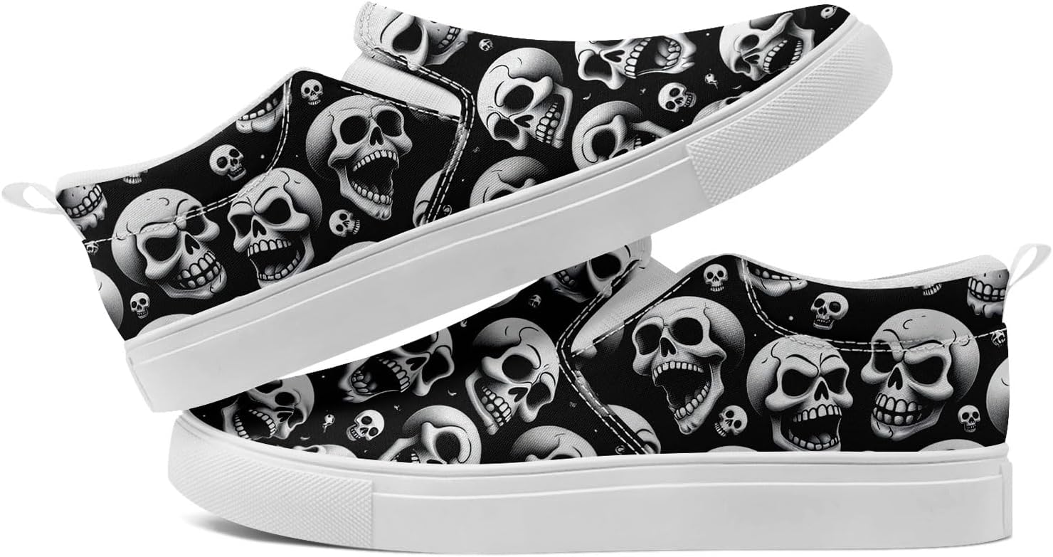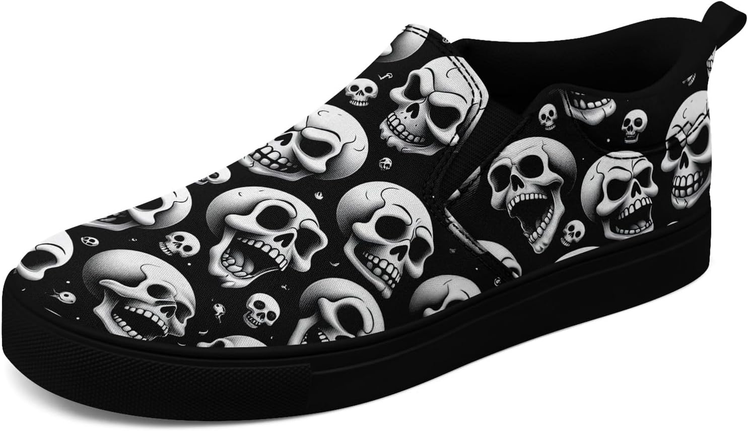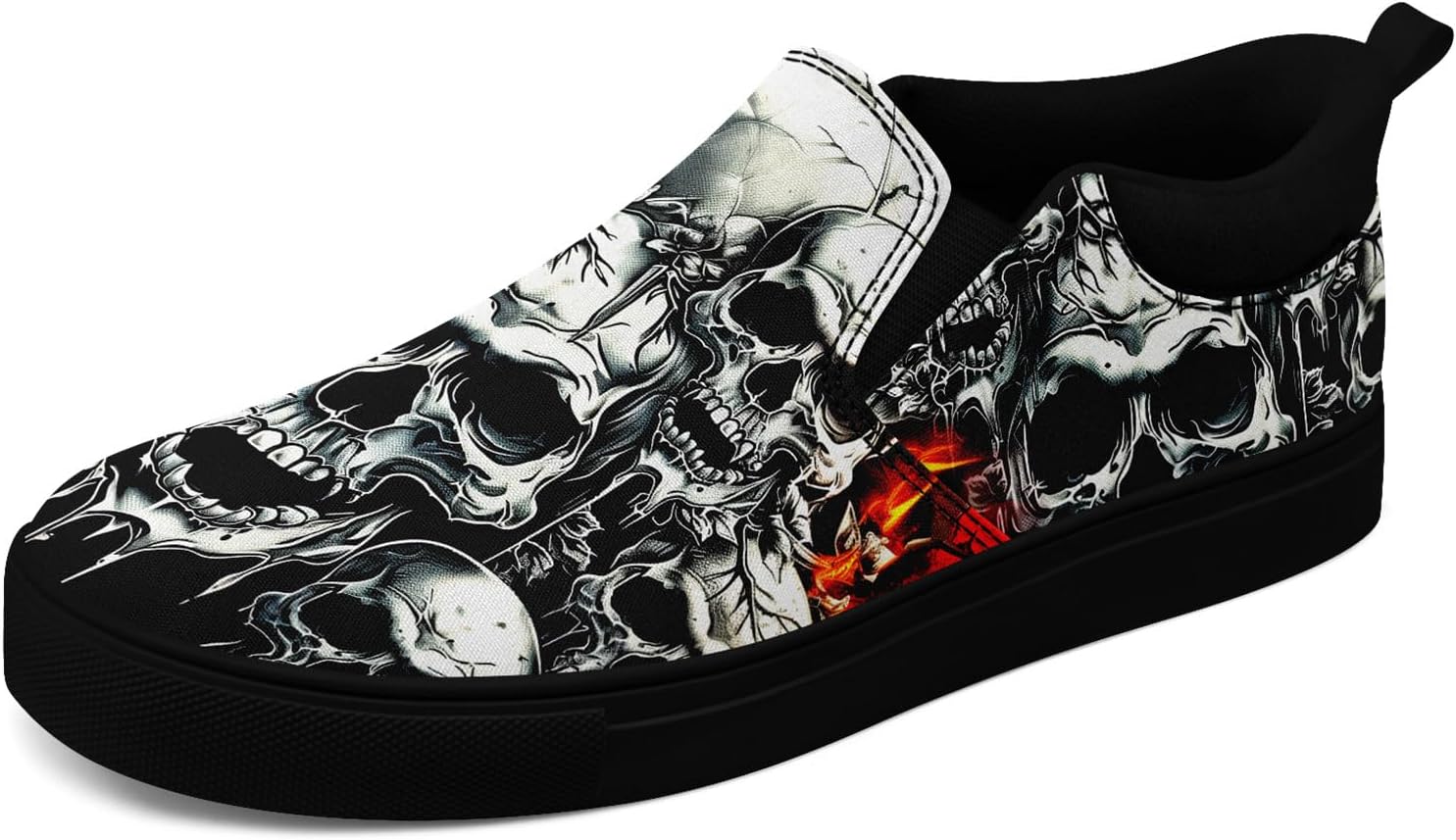 Men's Slip-On Canvas Shoes Gothic Skull Print Casual Lightweight Loafers Comfortable Walking Sneaker for Women